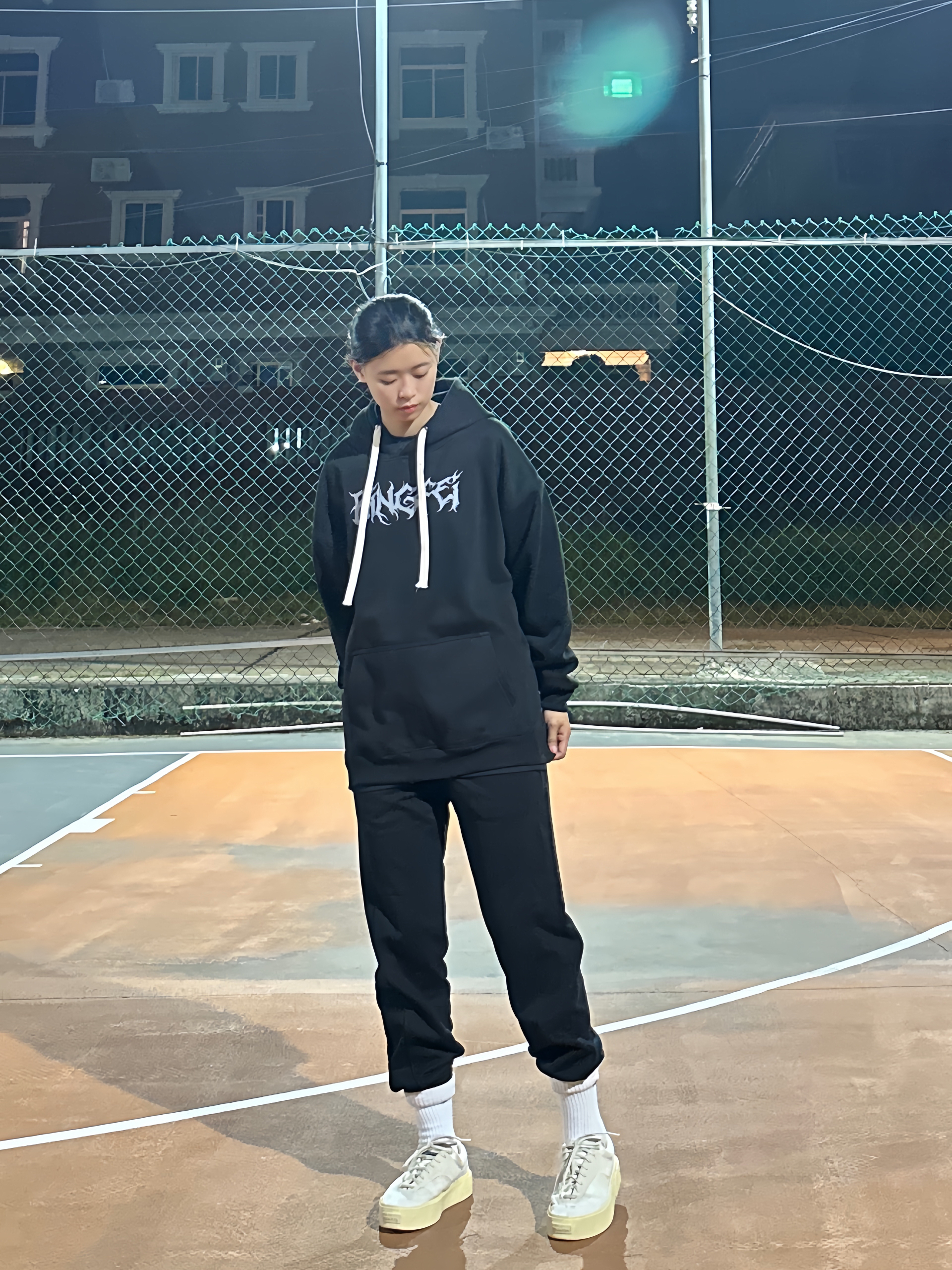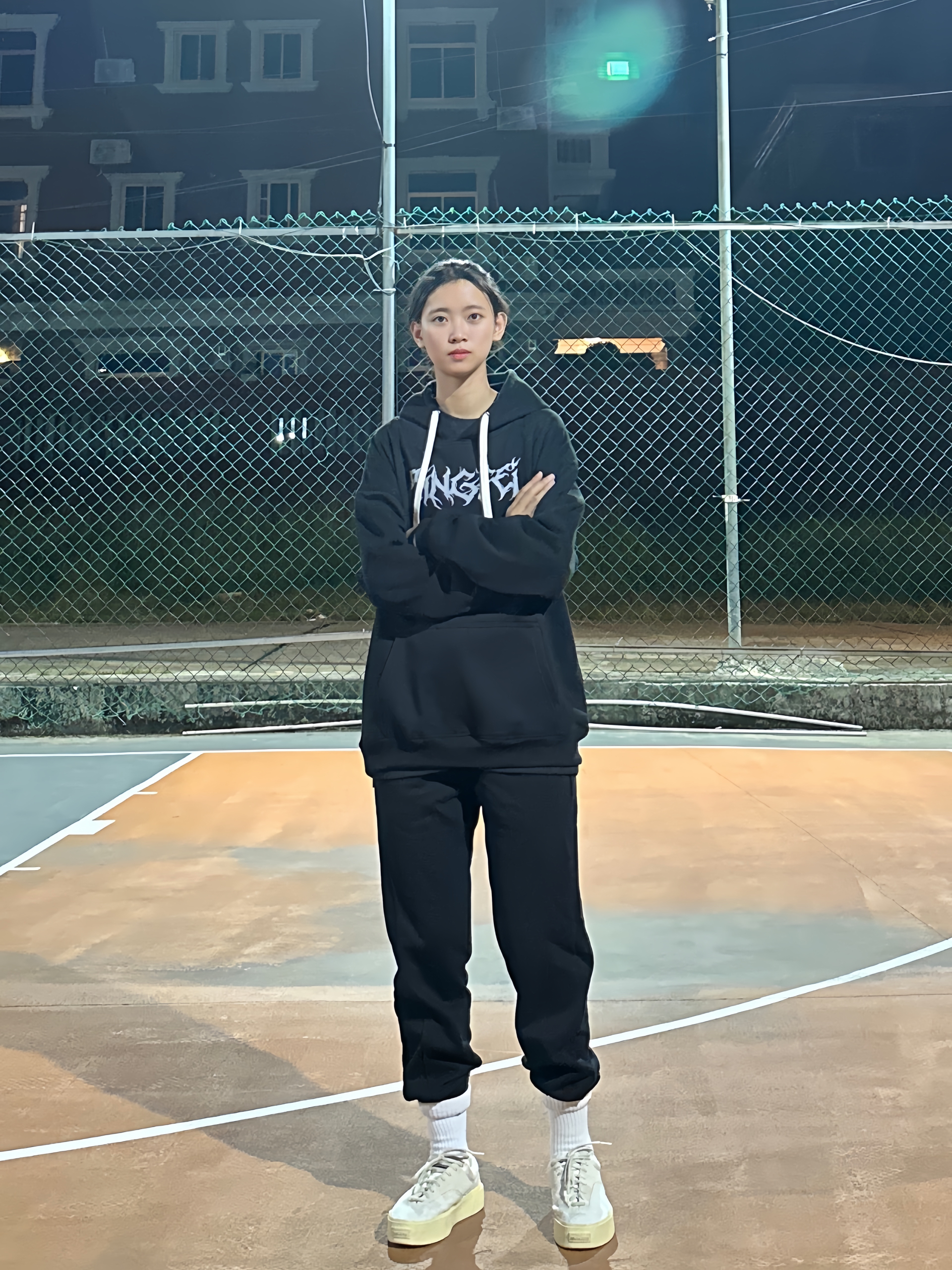Hi,这里是运动女孩的日常穿搭❗ - ▪️上身选择一件黑色卫衣 面料舒服 版型好看 加绒保暖好 图案印花很好看 真的太酷了✅ ▪️下身搭配一条黑色卫裤 黑色百搭好看 随便一搭都好看! 搭配一双板鞋 球场外穿搭也很帅😎 -