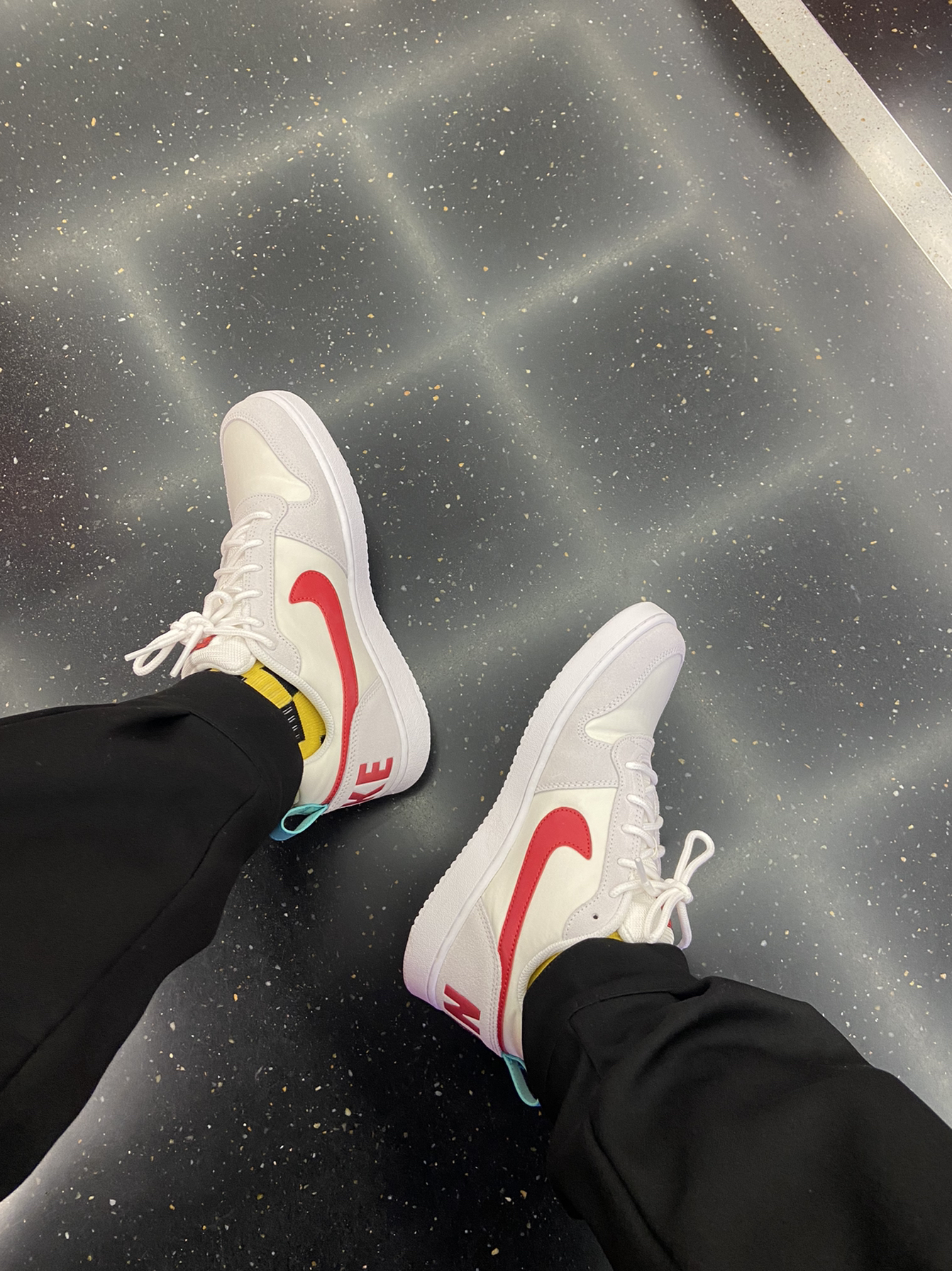 这双court板鞋,帆布加海绵的,鞋面和皮面的空军和dunk相比,软一点,鞋底有一点点硬,还能接受,红勾和后尾的红色logo,很有新年气息,鞋子尺码标准,不用买大,鞋子缺点的话有一点,就是帆布的面,走路,容易有折痕,或者剐蹭也容易留下痕迹,但是远看确实好看,近看有点拉胯!
