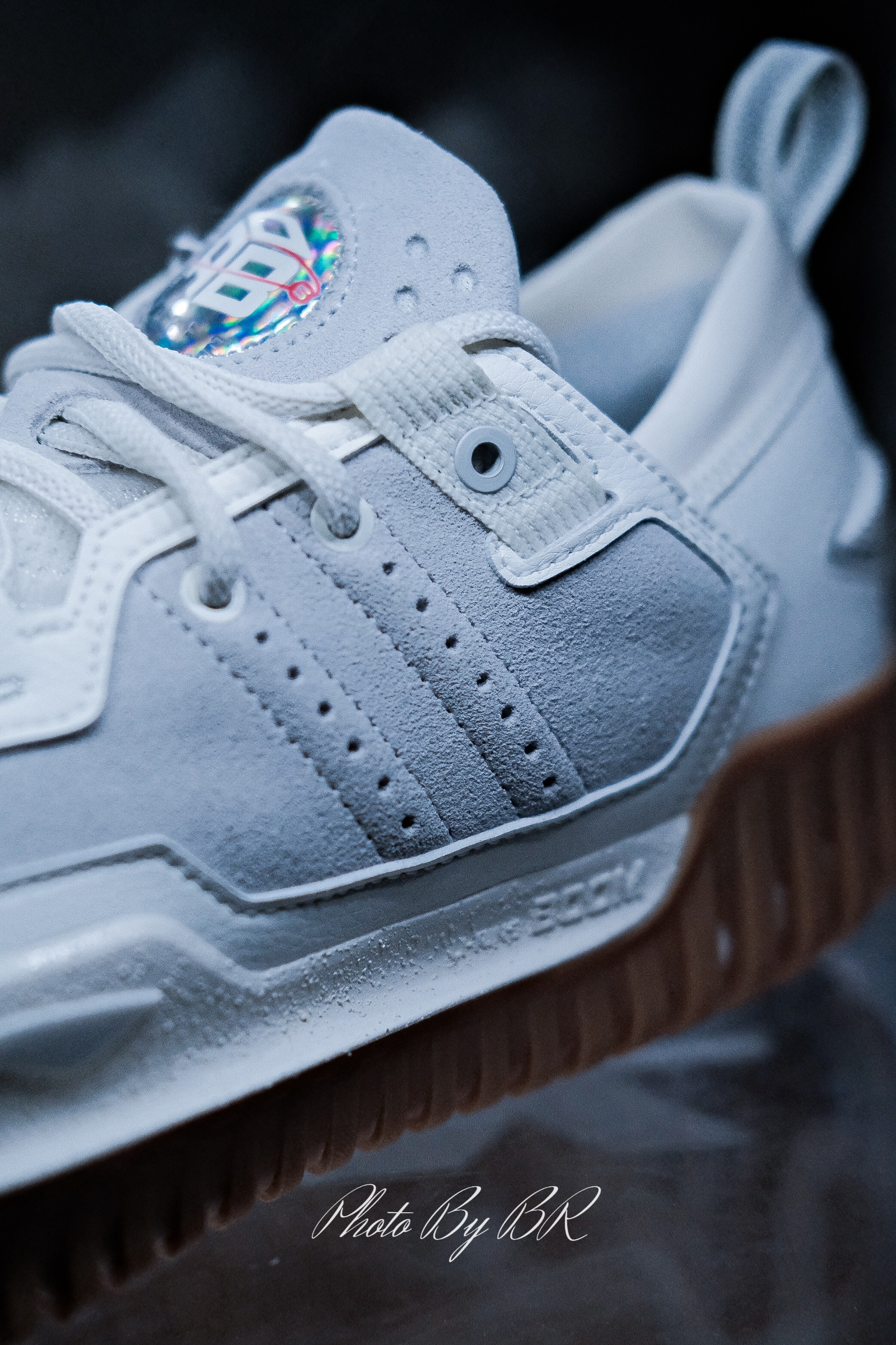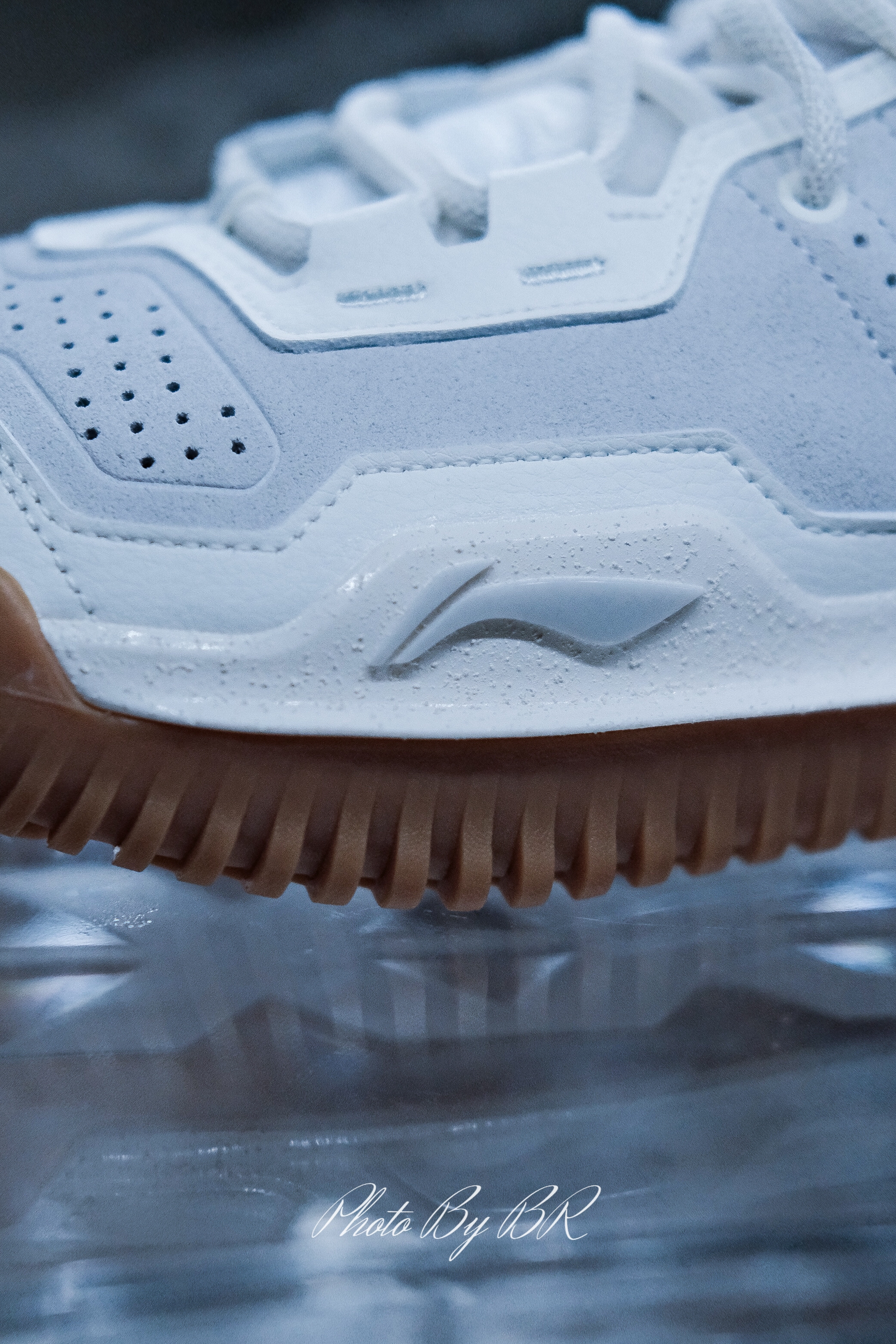 白色的鞋身搭配生胶大底,这种简约的色调本身就足够出彩。皮革+麂皮的鞋面,更是让实物质感更上层楼! 后跟区域李宁 Logo 采用对称式设计,并分别设有“L”、“N”的字样。此外,有没有人知道鞋舌闪卡图样是有什么含义呢?🤔