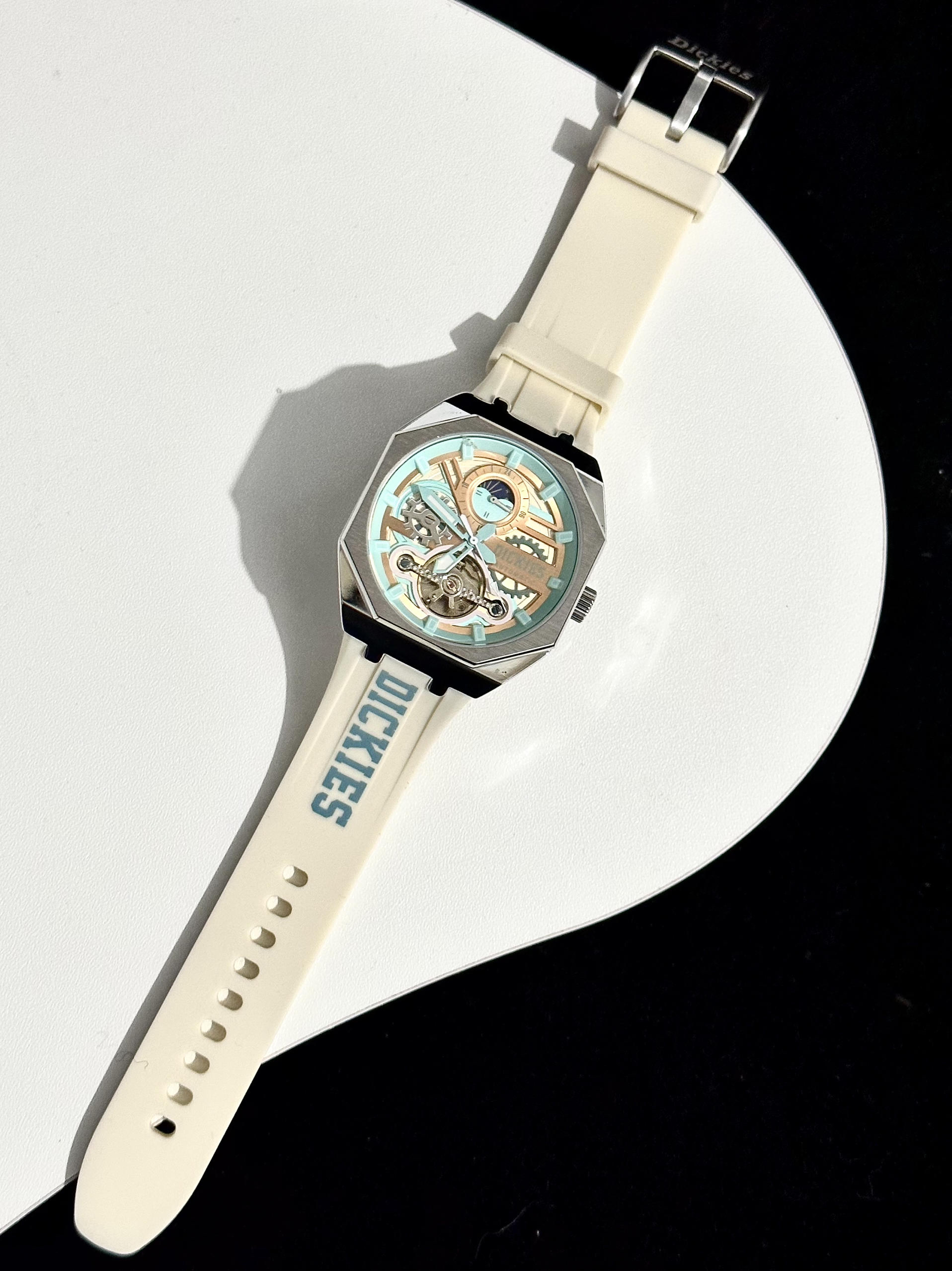 本篇笔记关联了Dickies/帝客 日月星象 大表盘背透镂空学生多功能防水酒桶形氚气自动机械男士手表 白色 220M60LYXCL-485P9-93JX等商品,为用户提供真实的使用体验和购买参考。