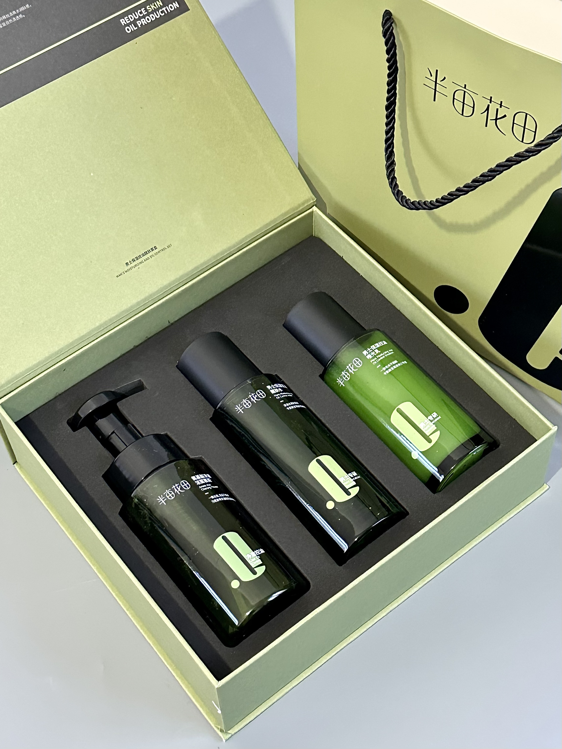 男朋友不仅出油还长痘 我这个做女朋友的都看不下去了 给他准备了个洁面礼盒 一个绿色一个红色的 早晨男朋友用绿色的,晚上用红色的 一个控油一个袪痘 还是礼盒包装送男友真的不错