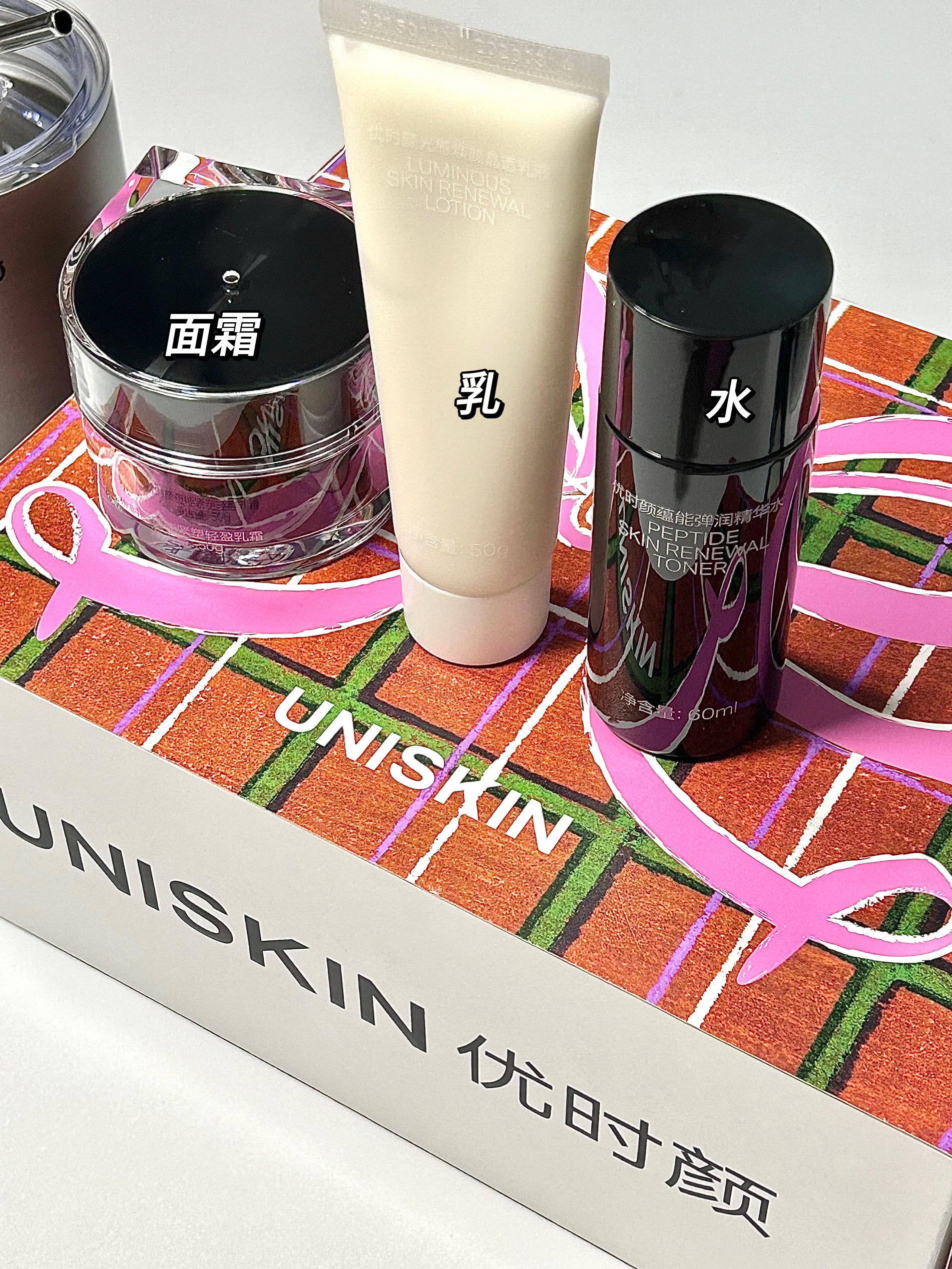 之前买过一次优时颜家的黑引力面霜就成为他们家的粉丝了 因为真的蛮好用的 用完皮肤真的紧致了不少 这次就一次入了一套更加省心不要自己搭配了 礼盒里面有一套水乳和面霜 试用装精华和面膜 竟然还有一个咖啡杯,好有质感 黑引力水是淡淡的乳白色 半透微乳质地很清爽滋润 光源乳是丝滑的乳液质地 涂完脸上会很透亮 面霜当然是一如既往的好用 晚上涂完早上皮肤会很紧致透亮有光泽,保湿效果很好👍 没有试过优时颜的姐妹...
