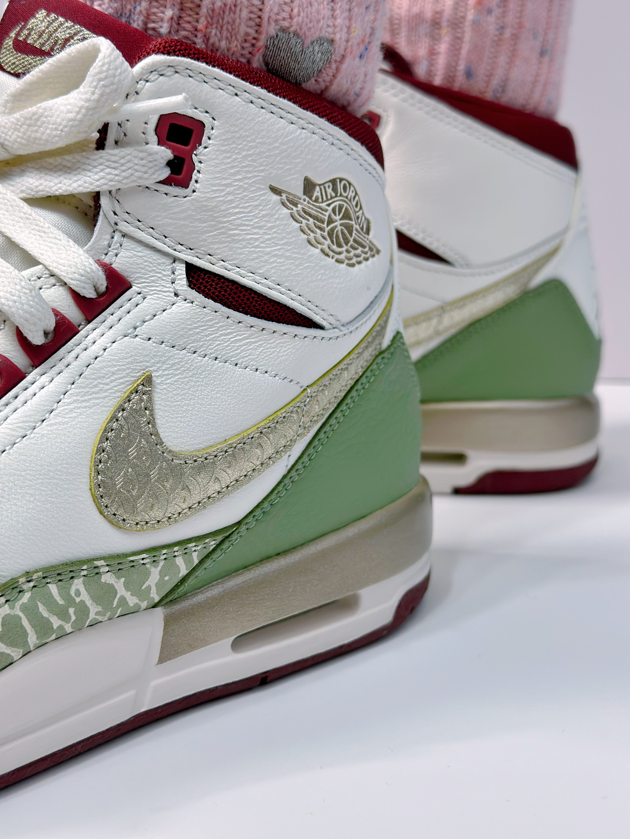 本命年的女生宝子福音来啦,这双AJ312龙年女鞋真好看🥰鞋面光滑皮易打理✅白绿配色也是极清爽的❇️ 搭配的金色龙鳞纹耐克勾,点睛之笔‼️很有高级感哇🎊红色鞋帮内衬寓意红红火火🔥鸿运当头👍 新年穿新鞋,龙行龘龘,前程朤朤🔆