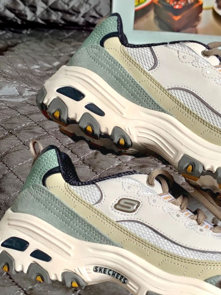 本篇笔记关联了Skechers/斯凯奇 D'Lites 1.0 奶茶熊 熊猫鞋 老爹鞋 闪穿鞋 厚底增高复古缓震百搭 女款/米白/橄榄绿等商品,为用户提供真实的使用体验和购买参考。