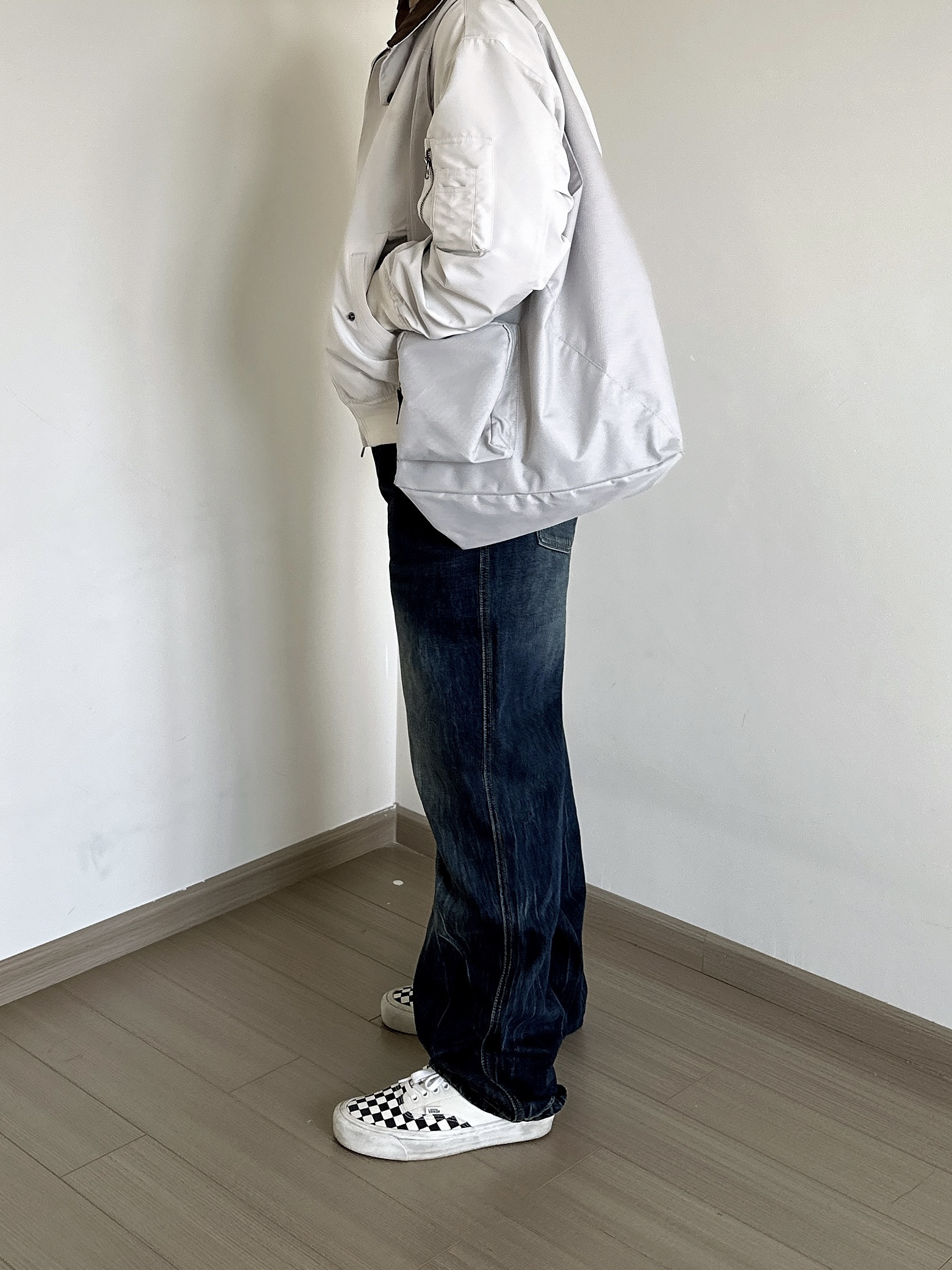 🔸复古风的乳白色飞行夹克,上身有风度又不失舒适。与之搭配的,是原色水洗牛仔裤,简单而百搭,又能刚好中和飞行夹克的复古感。 🔸黑白棋盘格,是这个搭配中不可或缺的重点。经典的黑白格子配色,复古时髦。 那么,周五的你,准备怎么出门呢?下班约会去吧bro~