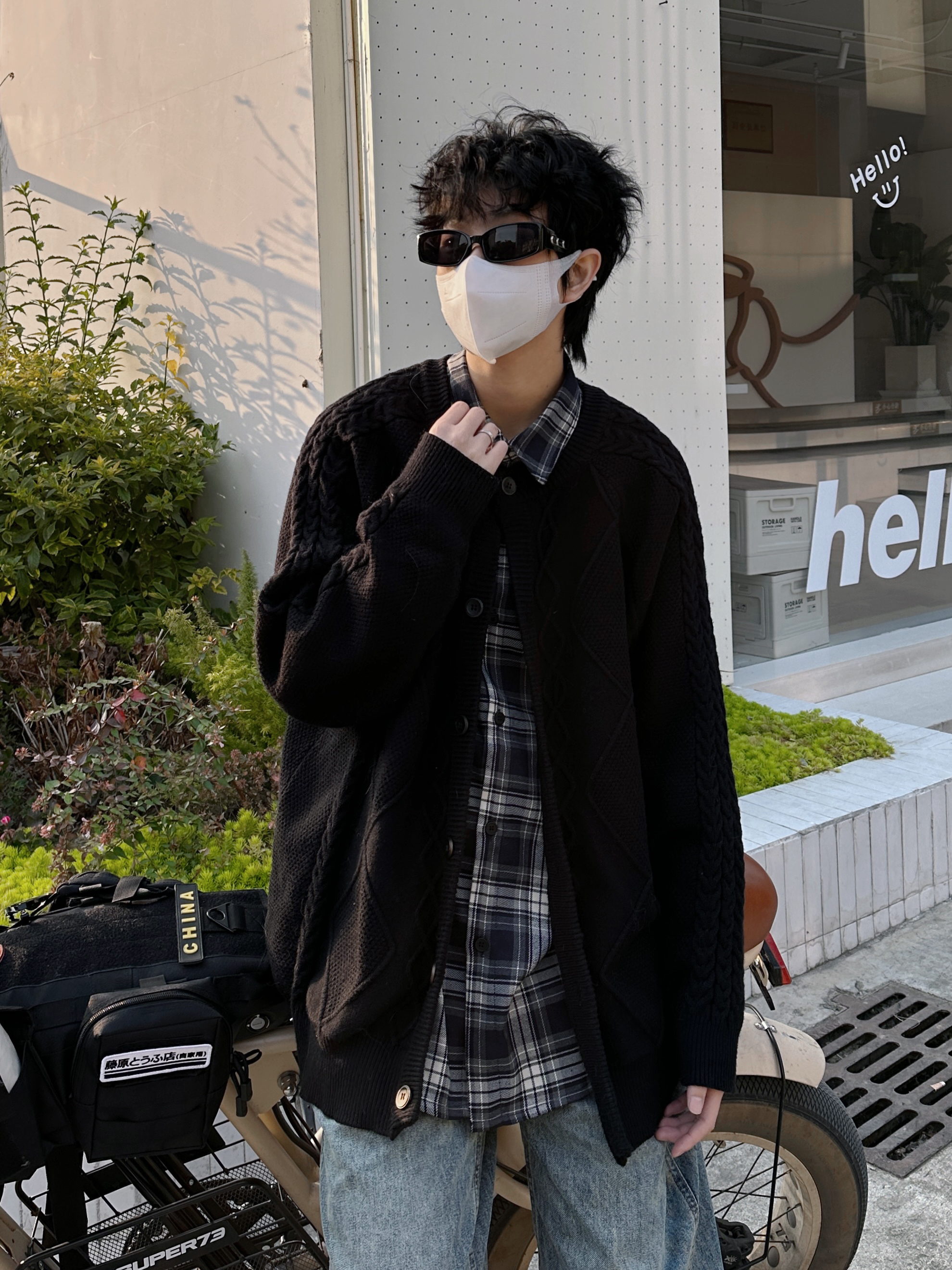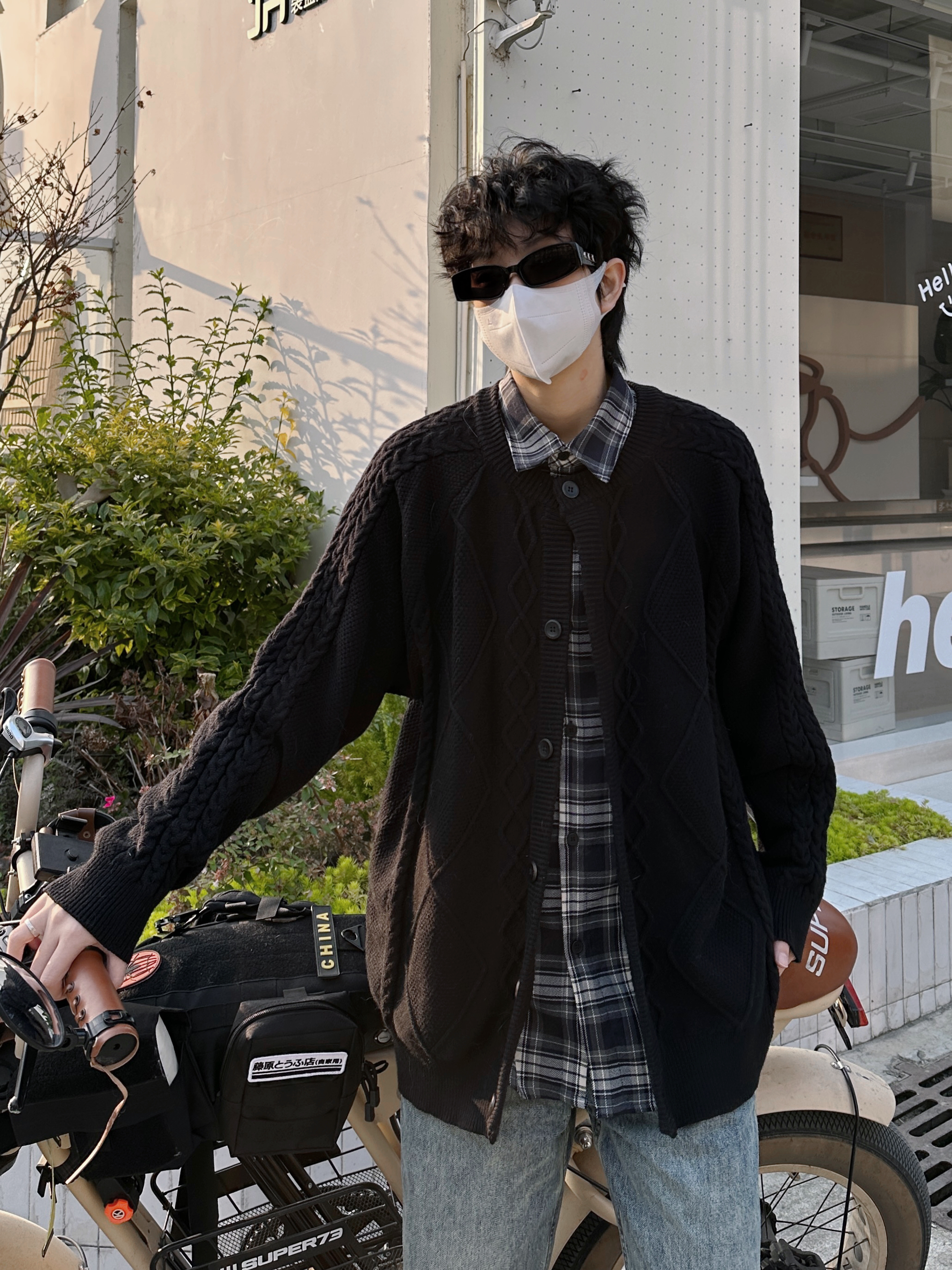 针织衫在秋冬不仅单穿有氛围感 作为内搭叠穿也很合适 百搭又保暖 配棉服 配大衣 都会很好看~ 今天这件来自 MindBridge 黑色百搭加上经典麻花条纹 里面叠穿一件格子灰色衬衫 裤子选择直筒牛仔裤 鞋子选择灰色老爹鞋和内搭相呼应 小小拿捏一波格雷系 不得不说氛围感十足~
