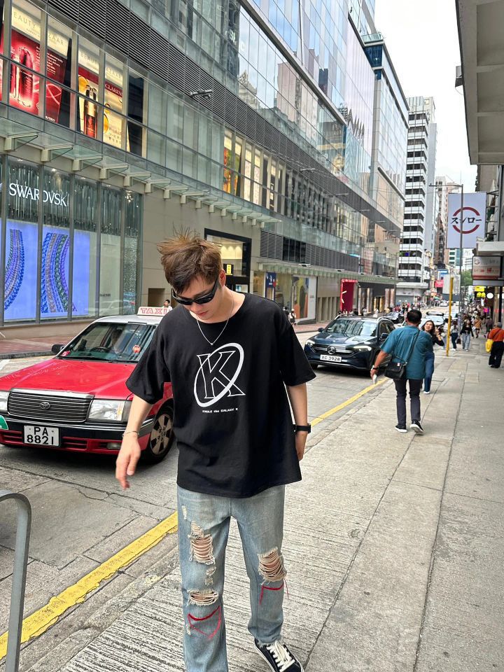 随随便便找一处路牌 车来车往的街口 随手抓拍 就是时尚感十足的街拍大片 衣服:KGK