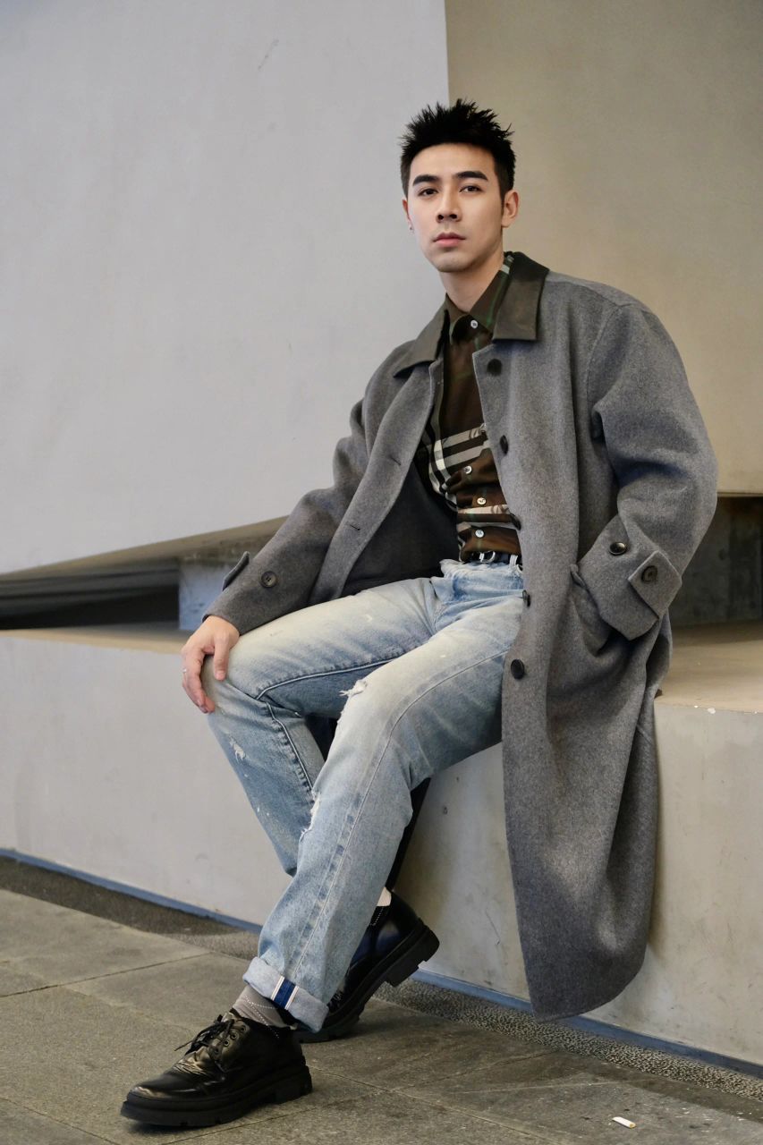 秋冬季节的citywalk 一件羊毛大衣就能搞定 矮个子男生如何选择穿大衣呢 选择中长款的,尾摆刚好到膝盖处就行 面料尽量选择羊毛,保暖的同时还能不失风度 建议内里还可以搭配一件高领的毛衣,更显成熟魅力 @A BIG THANKS
