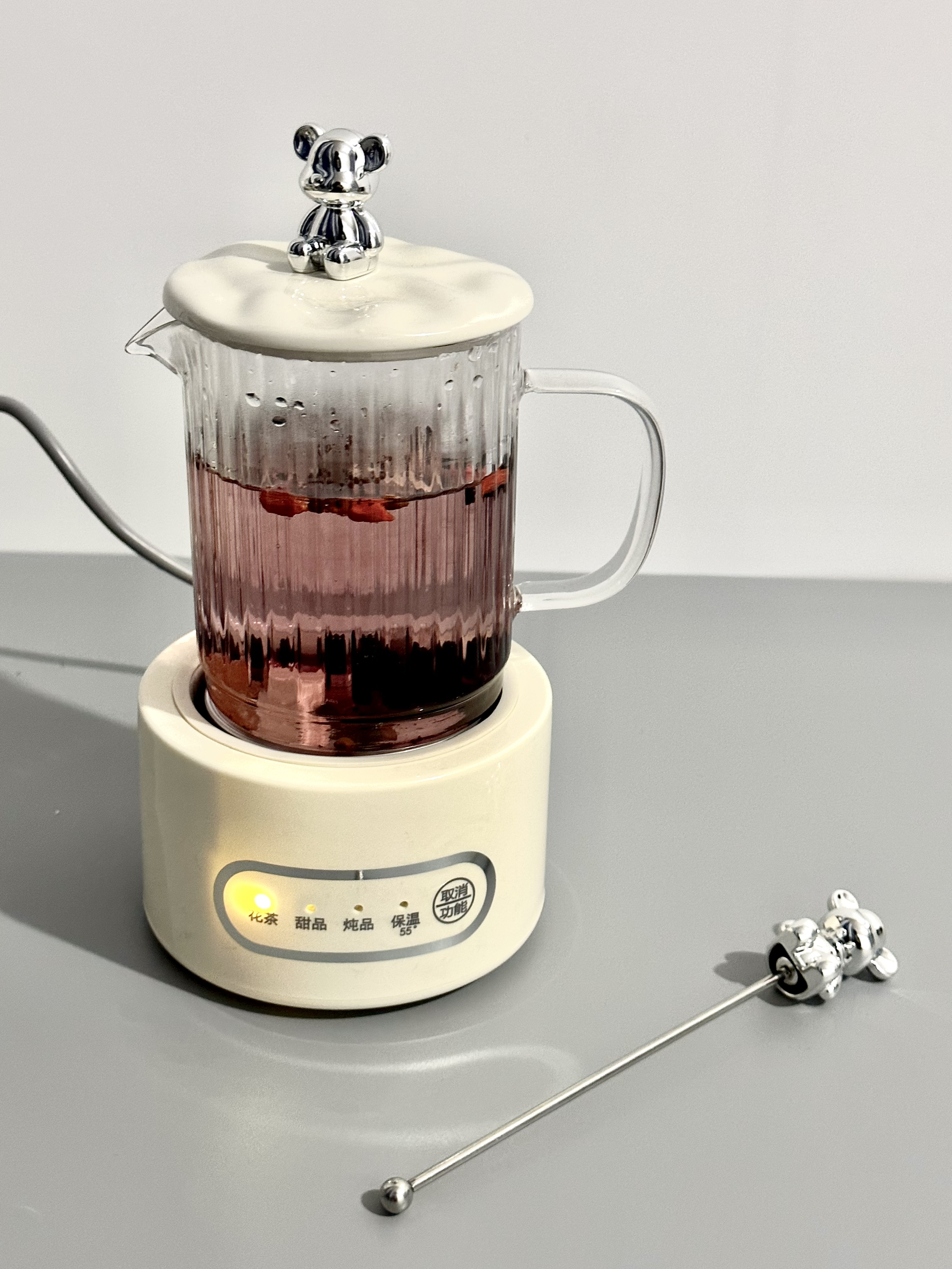 这个养生壶有四个档位可以调节 用来热牛奶或者煮养生茶都蛮适合的 而且礼盒包装还是彩虹的颜色