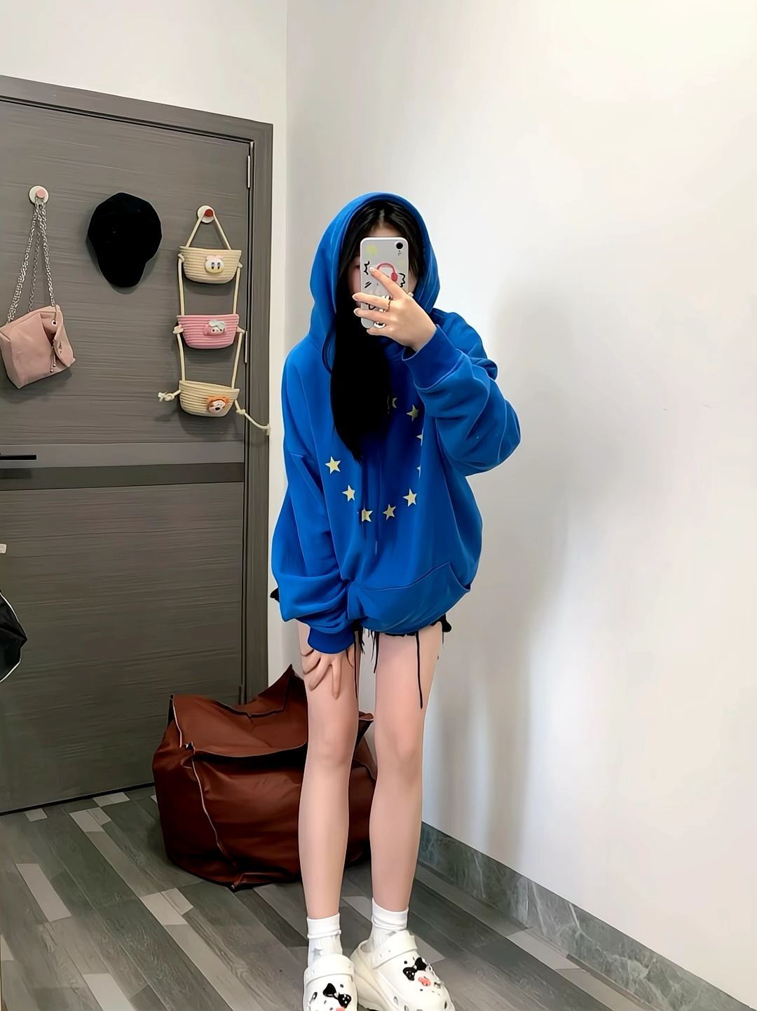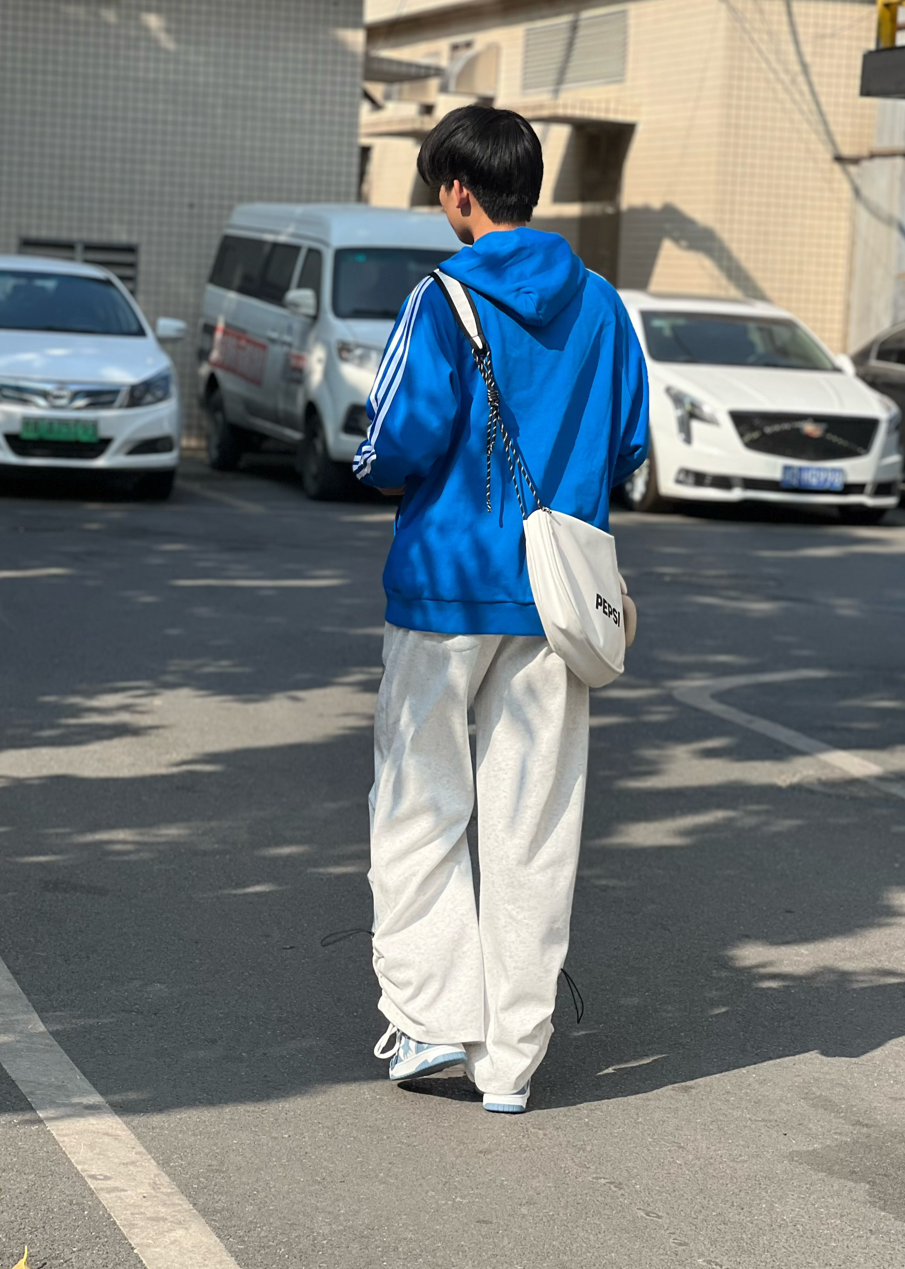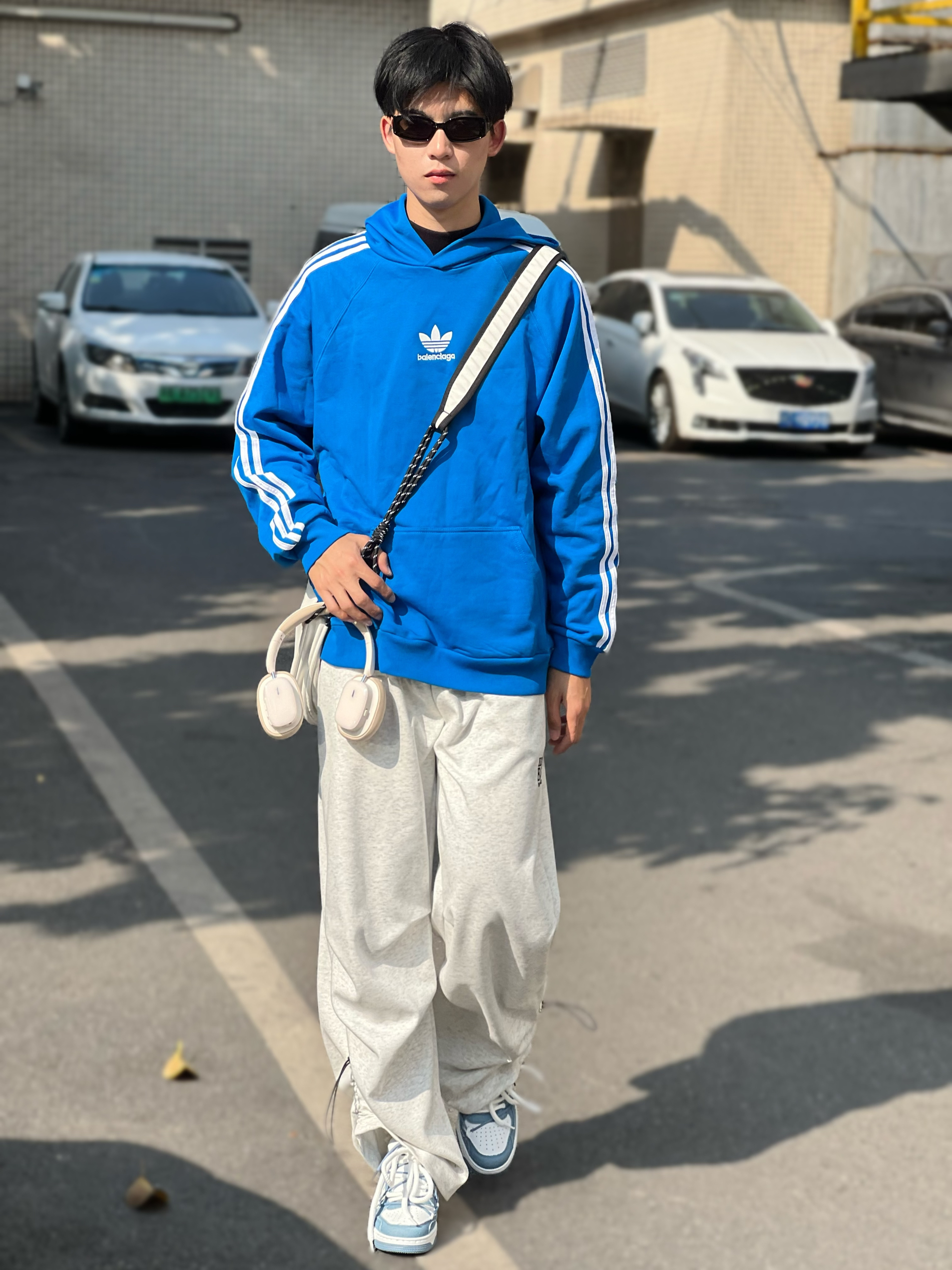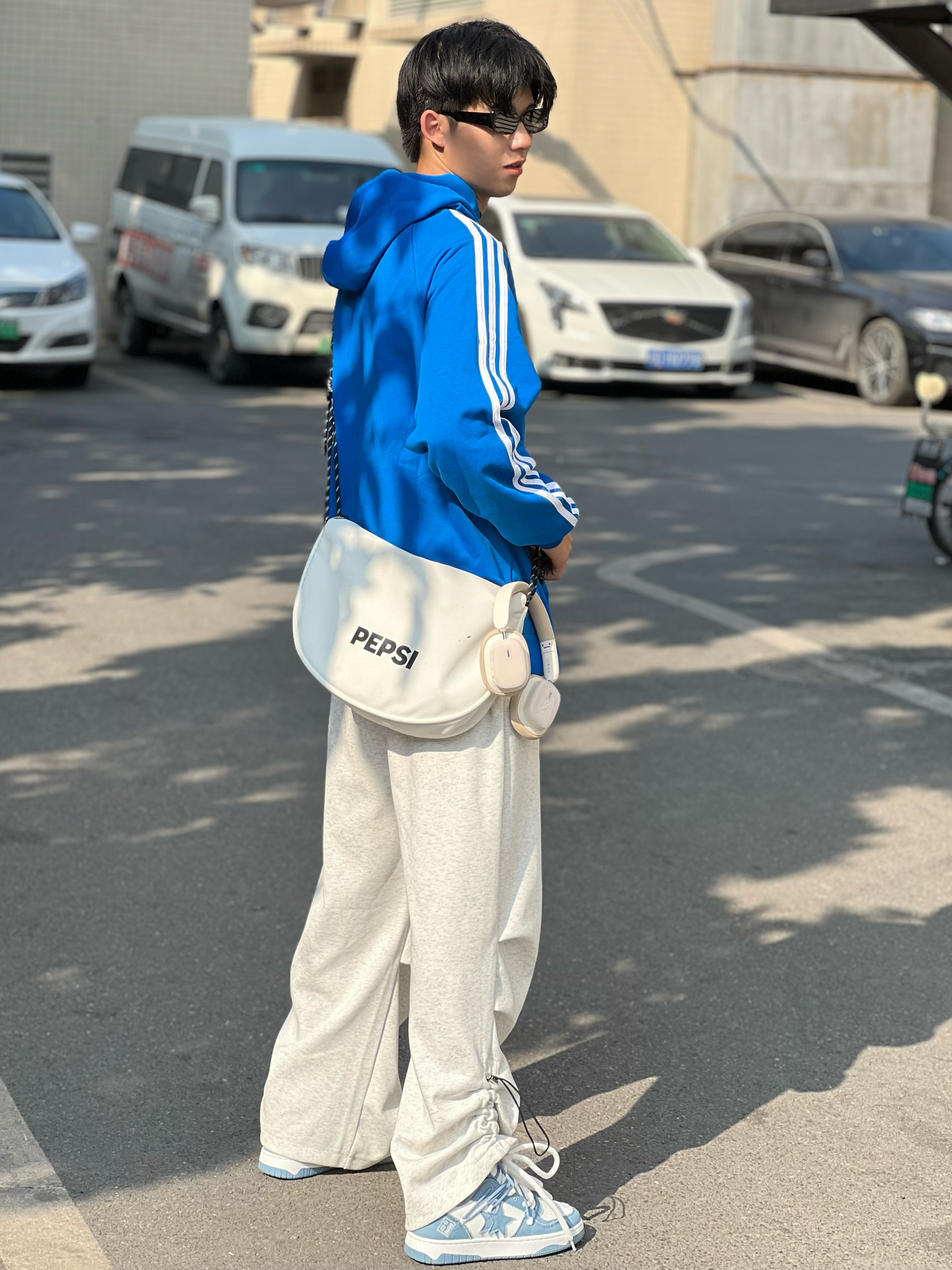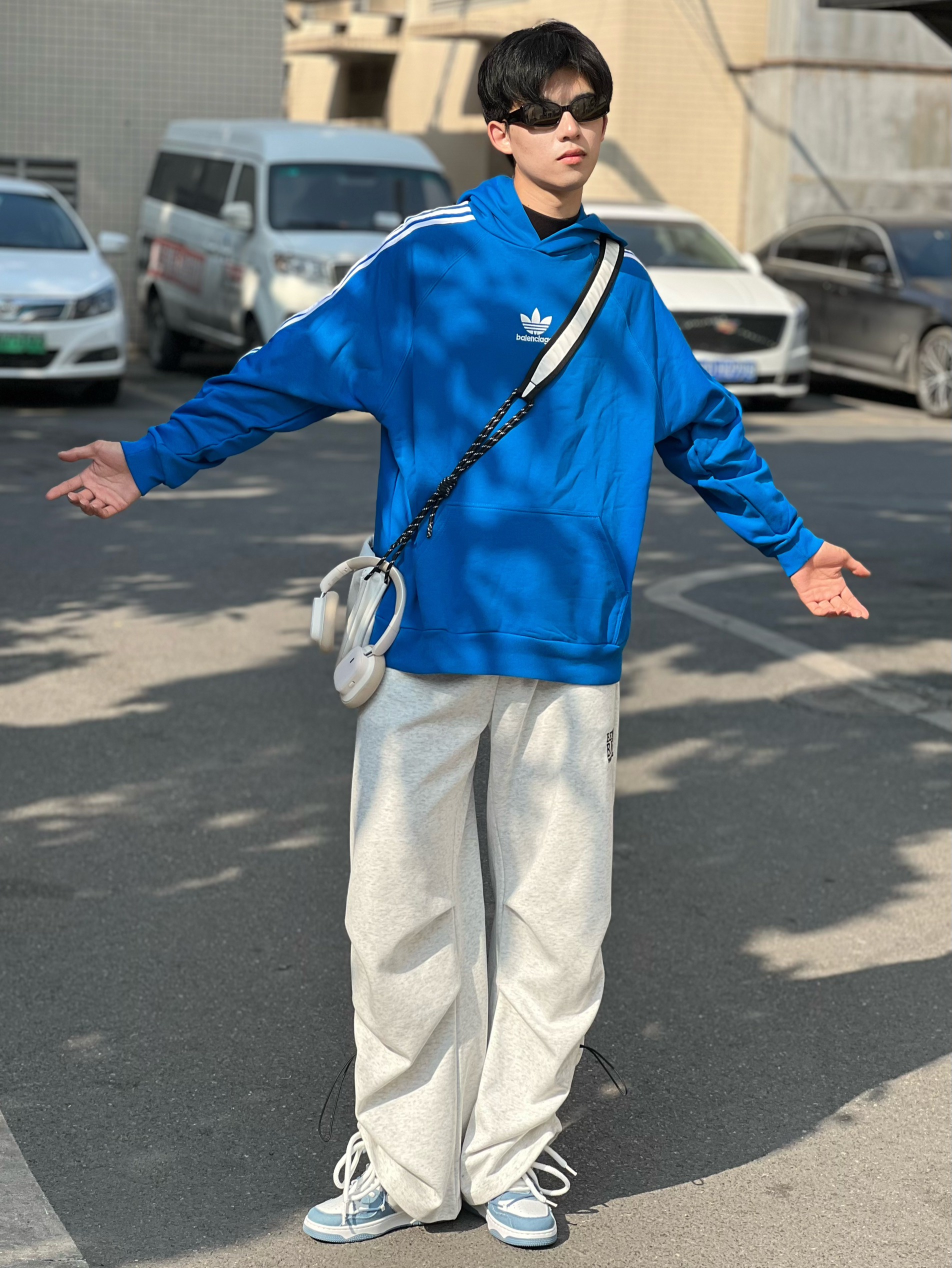 小希同学,穿的都是最大码 今天是少年感的一套,真好喜欢蓝色~ 卫衣搭配运动裤,穿上休闲鞋,松弛感满满 蓝白色休闲鞋,性价比爱住了,很舒服,清新又好搭~