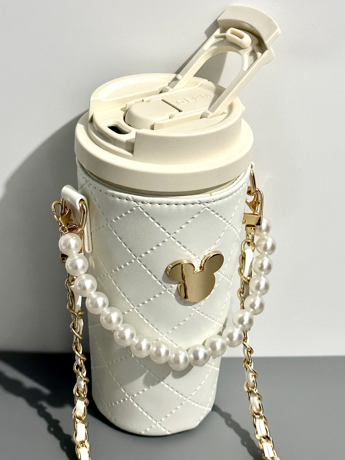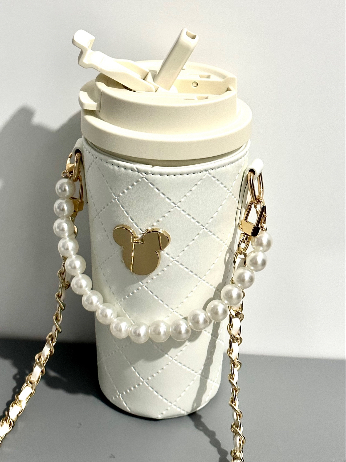 迪士尼联名款水杯真的好喜欢 小香风.设计可以背也可以手提 杯套还可以拆卸 可以直饮,可以用吸管