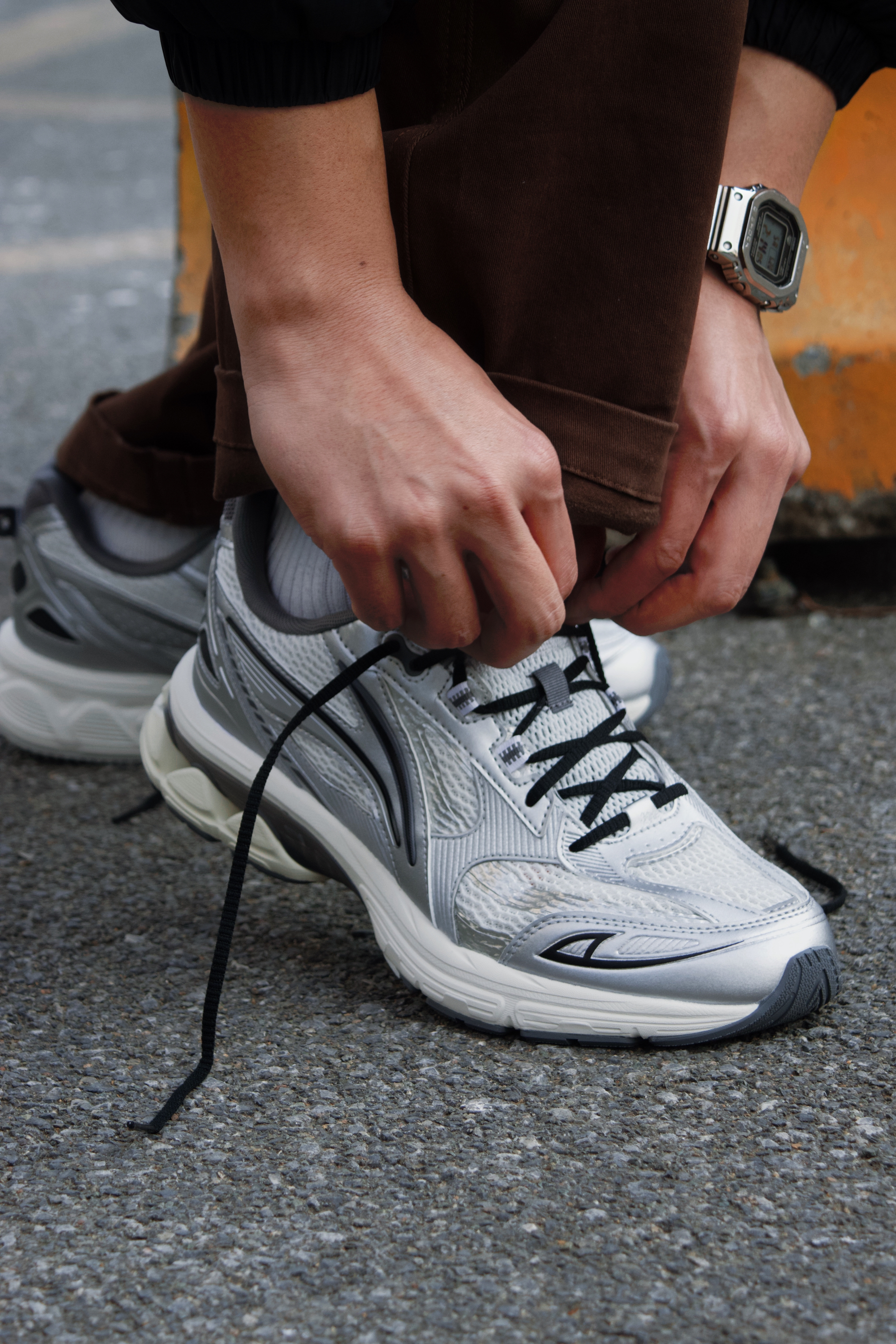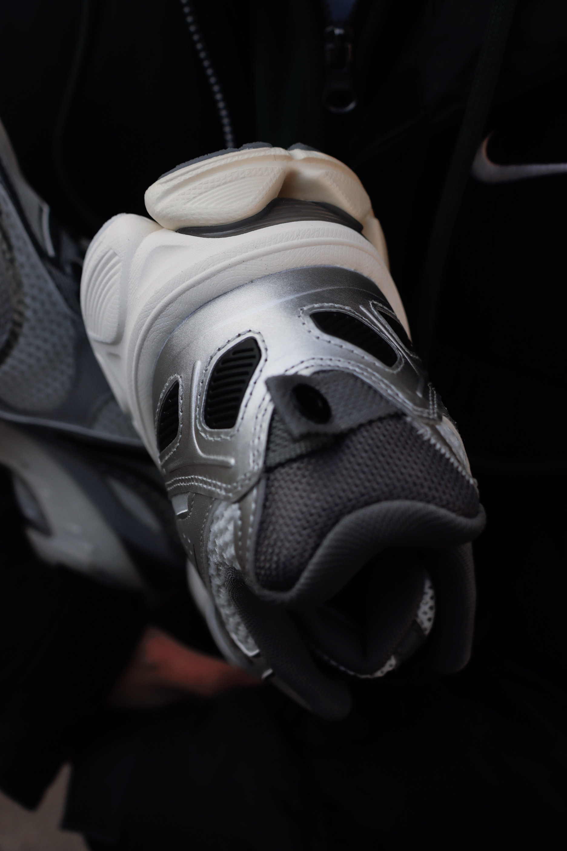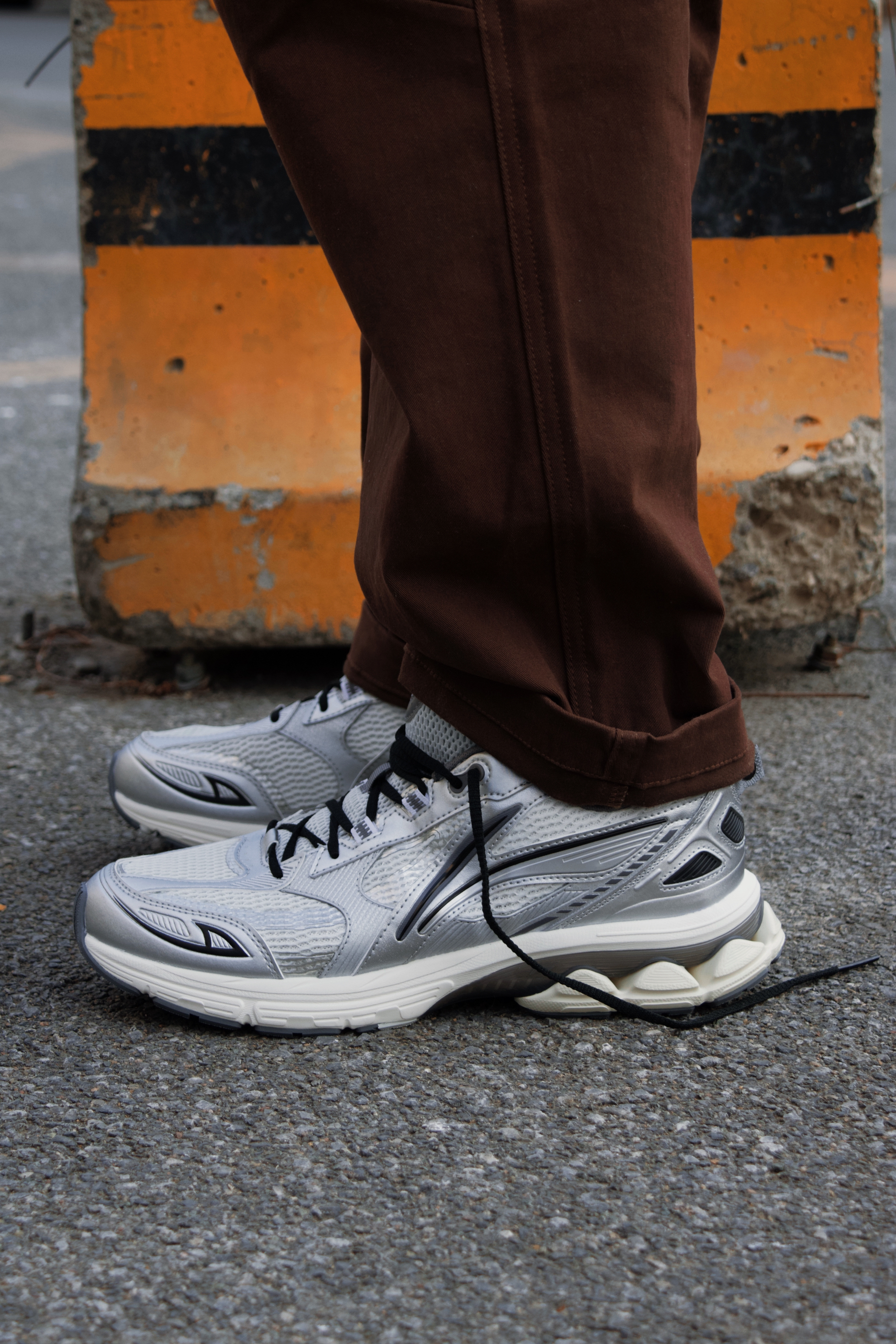 扶摇2.0 这个银色我真的爱死了,百搭的配色,以及舒适的脚感都没得说! 上脚以后不偏码,尺码正常选择就行,鞋楦的正常偏宽,脚型适配度很广泛!而且前低后高的重心穿的很舒服,软弹明显没有不适感,走起路也很轻盈跟脚! 搭配方面几乎完美,不挑衣服,让我再一次变帅!