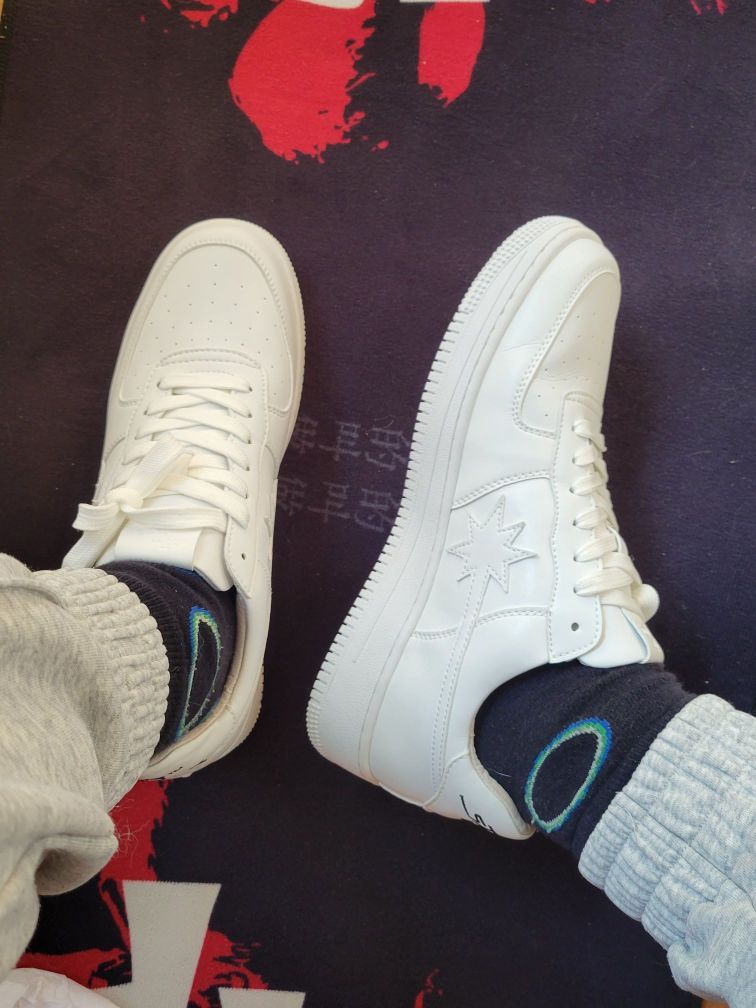一双百搭小白鞋,能解锁日常大部分穿搭look,简洁的设计很好看!✨ 皮质鞋面柔软有质感,两侧的流星标志很有型,橡胶鞋底防滑耐磨,鞋底纹路也设计的很好看,尺码正常不偏码!鞋子内里也是皮质的✔️,穿起来挺舒服的。