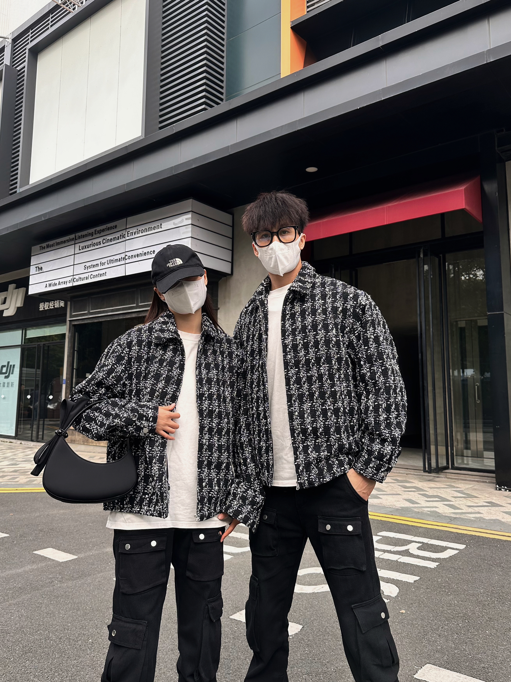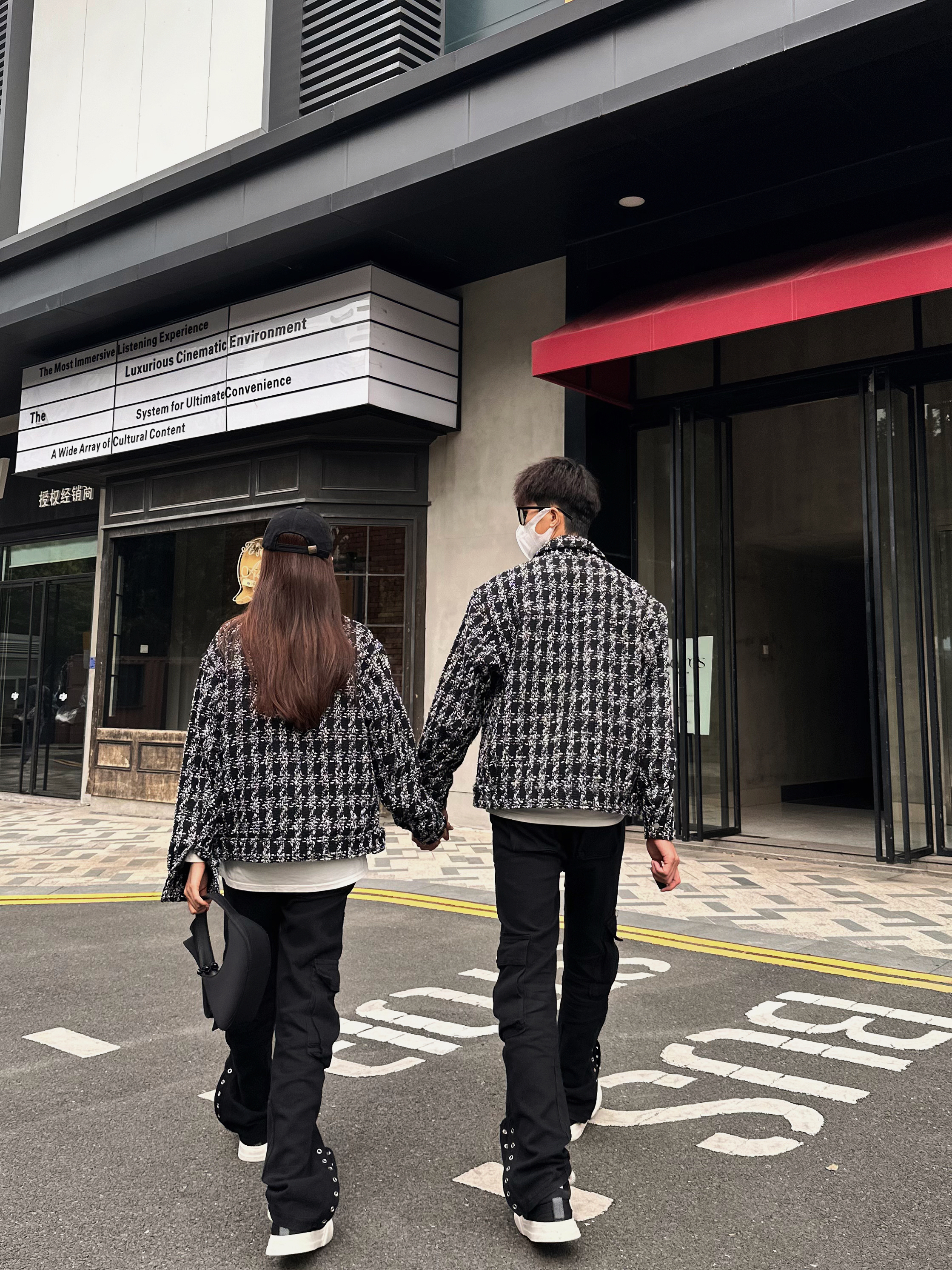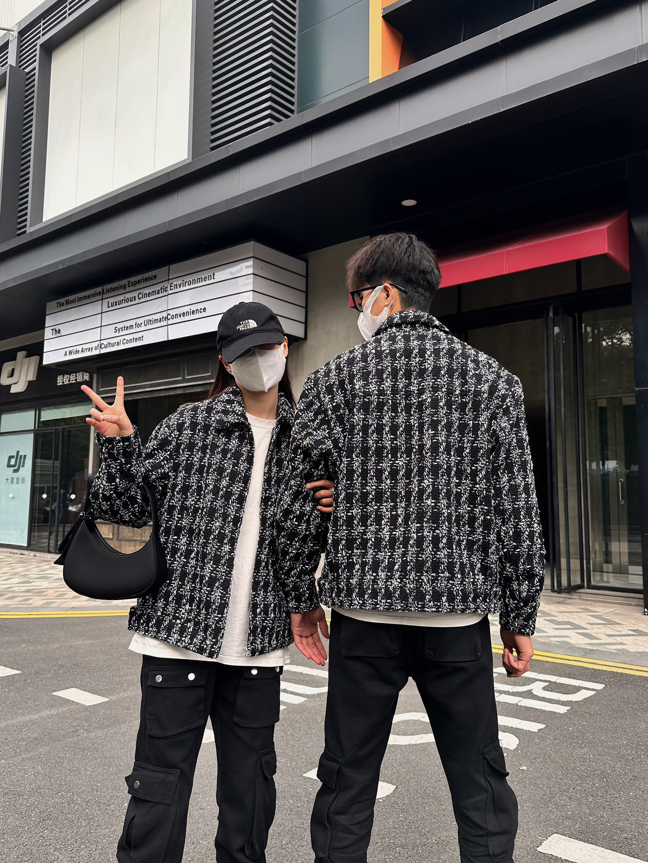这件小香风外套真的太香啦 男女同款 都可轻松驾驭 内搭一件白t就可以 随意搭配牛仔裤都行 有种酷酷的松弛感 和对象穿这件真的赢麻了