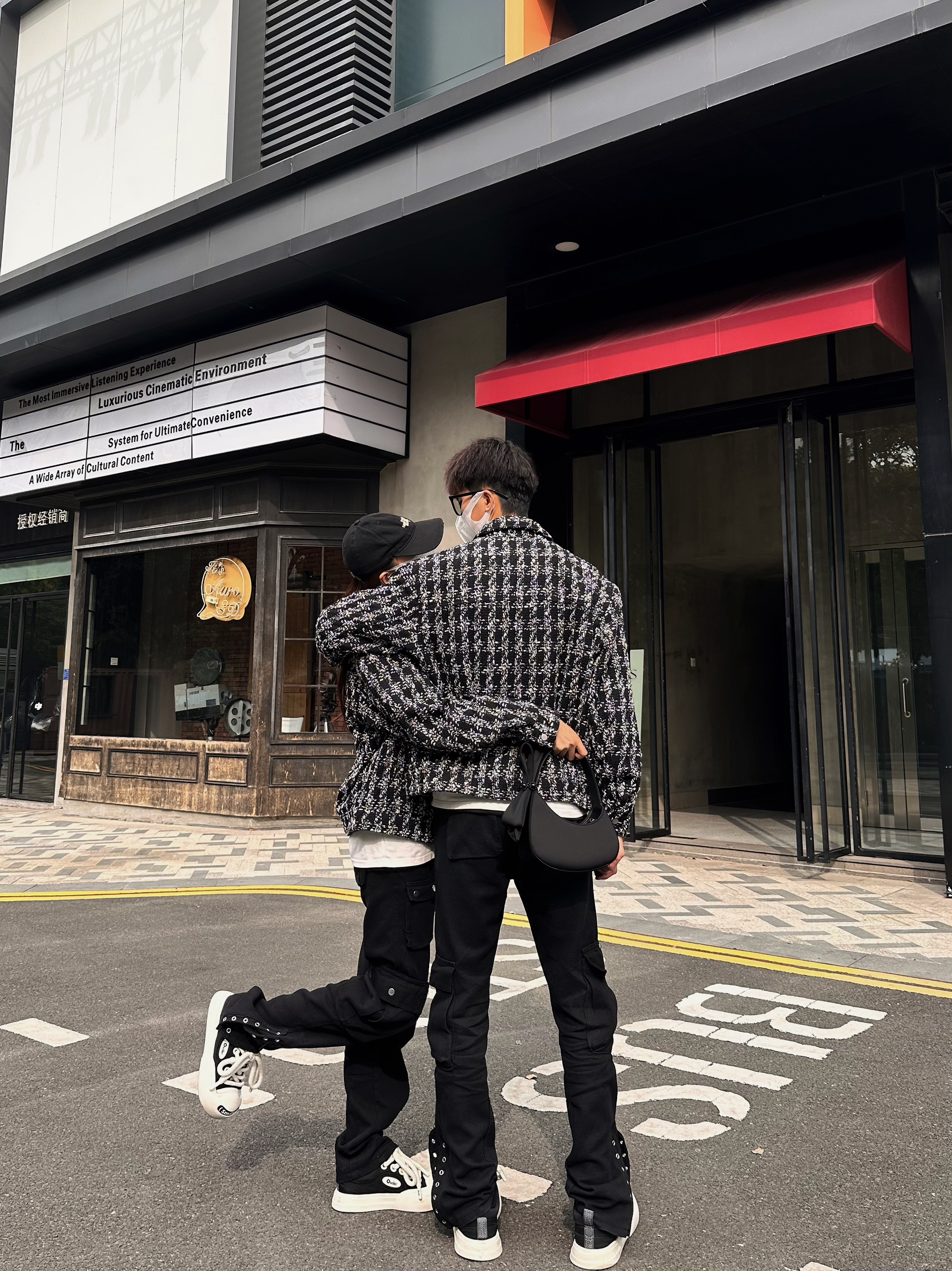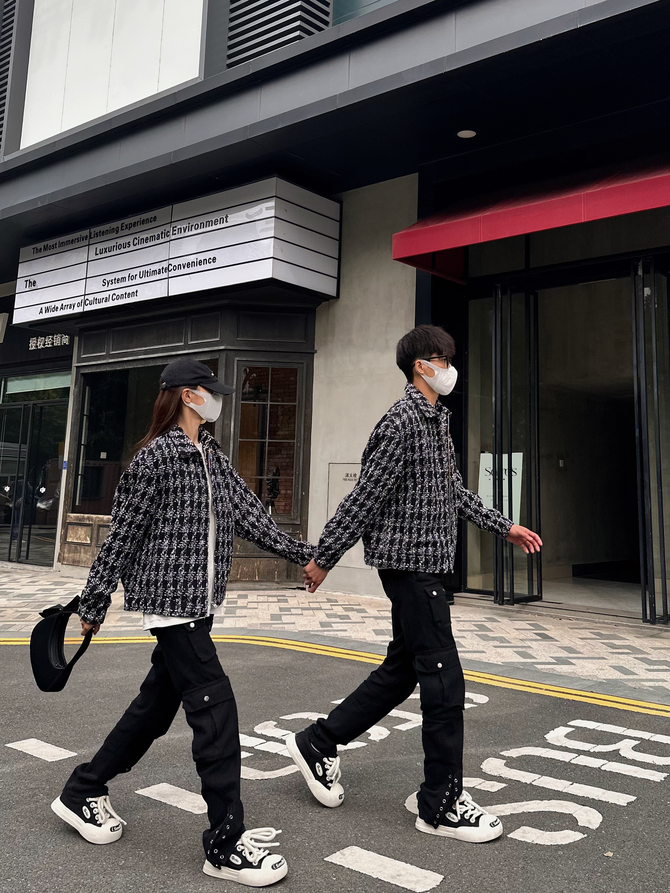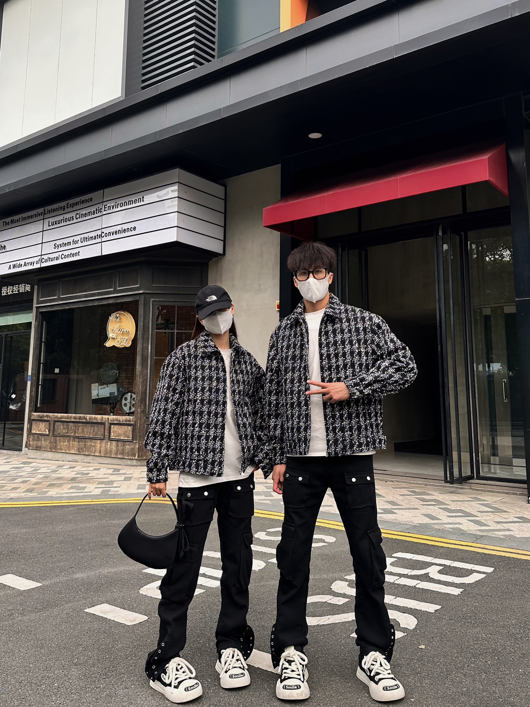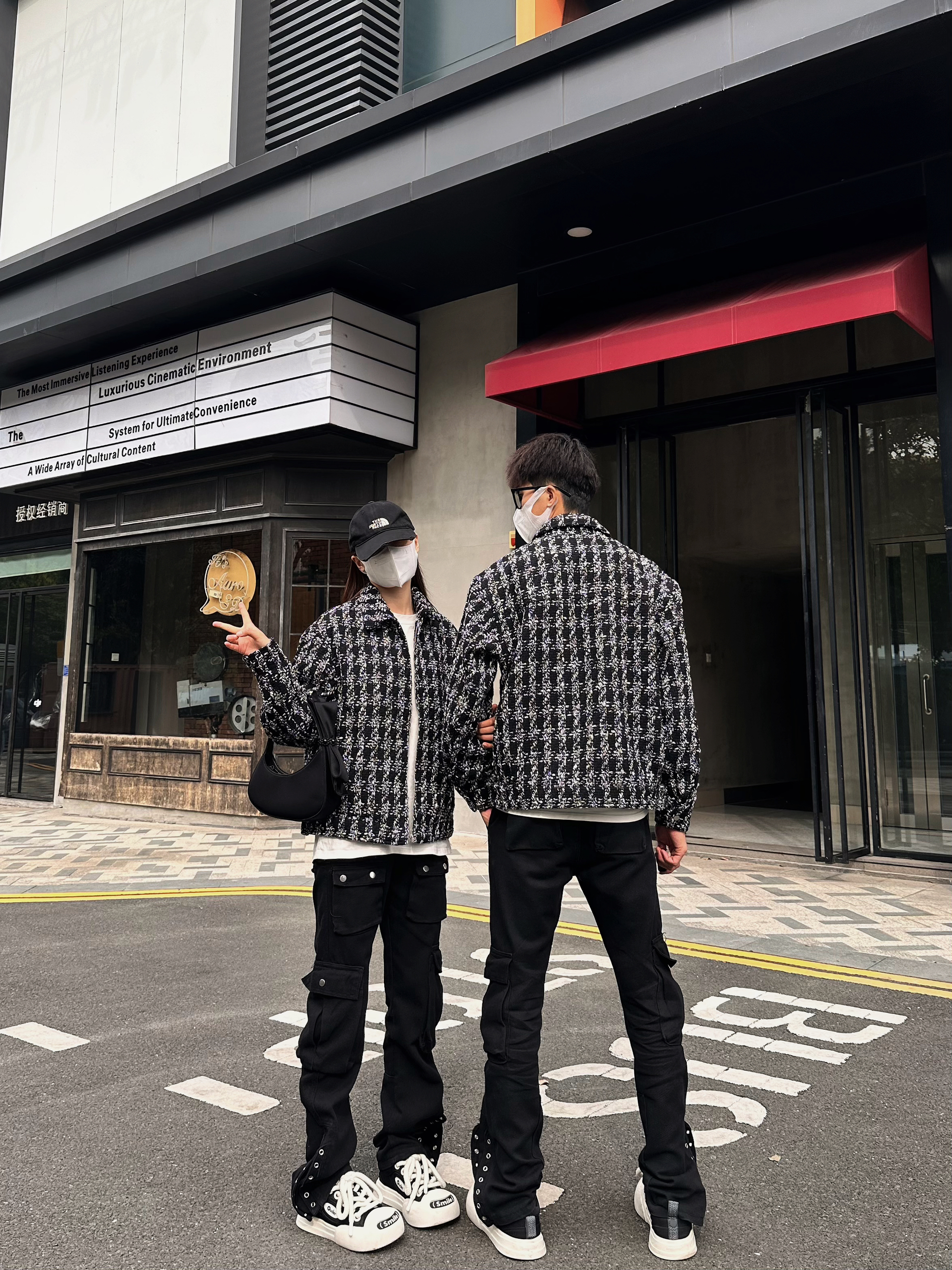 这件小香风外套真的太香啦 男女同款 都可轻松驾驭 内搭一件白t就可以 随意搭配牛仔裤都行 有种酷酷的松弛感 和对象穿这件真的赢麻了