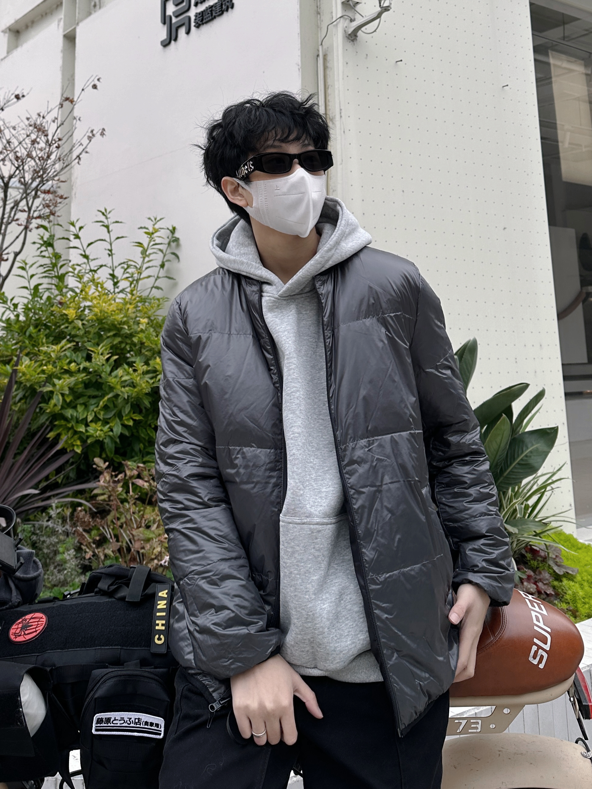 HALO家人们 这里是拐子 大部分人冬天都是棉服 但谁说冬天只能穿的臃肿? 今天拐子分享一套轻便保暖的搭配 参考身高176-54 - 内搭一件 SESAME STREET 的灰色卫衣 基础款的卫衣作为搭配的话 衣柜一定少不了的 外套是来自 几朴 的双面穿羽绒服夹克 一面是黑色 一面是深灰色 一件衣服两种穿法 穿上很轻便的同时也很保暖 根本不冷 不喜欢冬天臃肿的朋友们 可以参考这套格雷系穿...