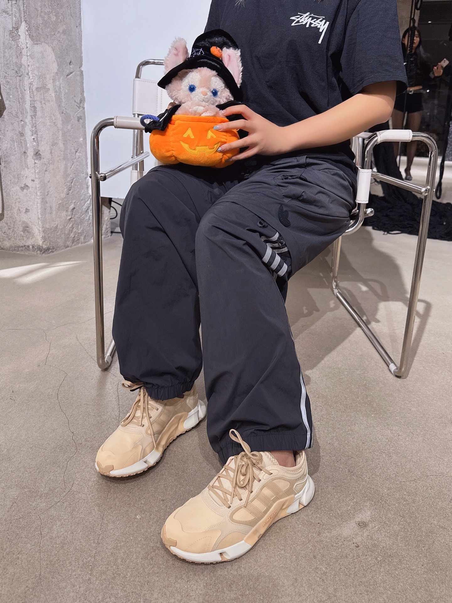 --广州的冬天着实不太冷啊 尤其最近还回温了 穿短袖应该全国独一份了吧 终于又能穿的黑色街头风一些了🎃 --这双鞋感觉有点小众啊 买回来穿那么久还没在街上撞过鞋 配色挺特别 比较柔和 脚感也还不错 很运动很复古✨ 👔:Stussy 👟:Adidas 👖:Hamcus 🎃:玲娜贝尔 #我的保暖搭子 #靠这双凹出时尚感 #运动穿搭ootd #冬日穿搭配色提案 #这样买好省钱 @得鞋狗 ...