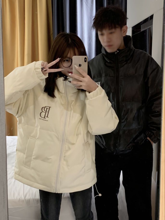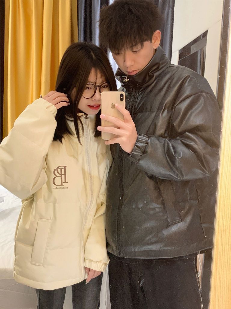 冬天的第一件PU羽绒服 不得不说pu羽绒服真是防风又保暖~ 立领设计,男女同款不挑人 和男朋友黑白配也太甜咯!