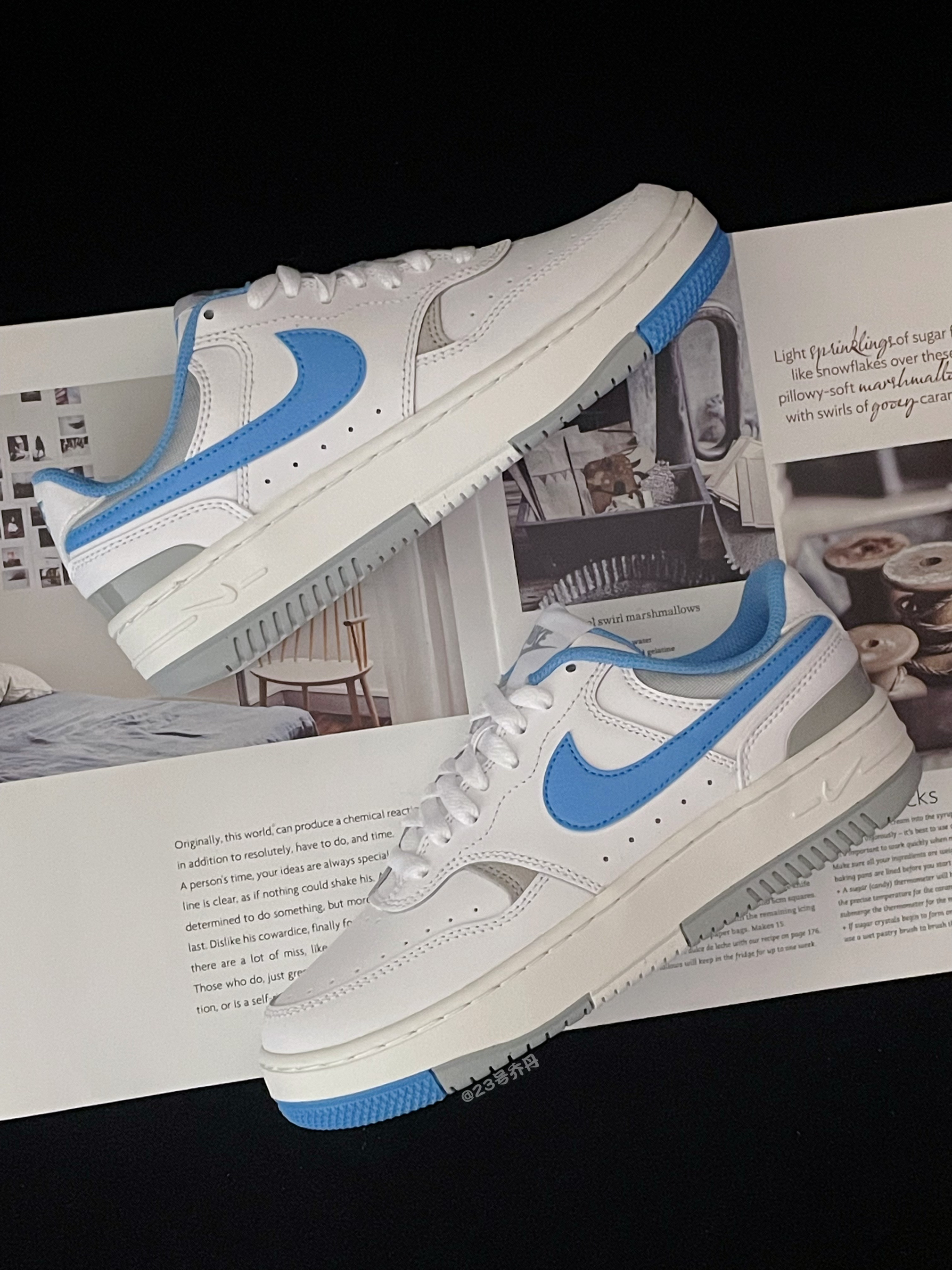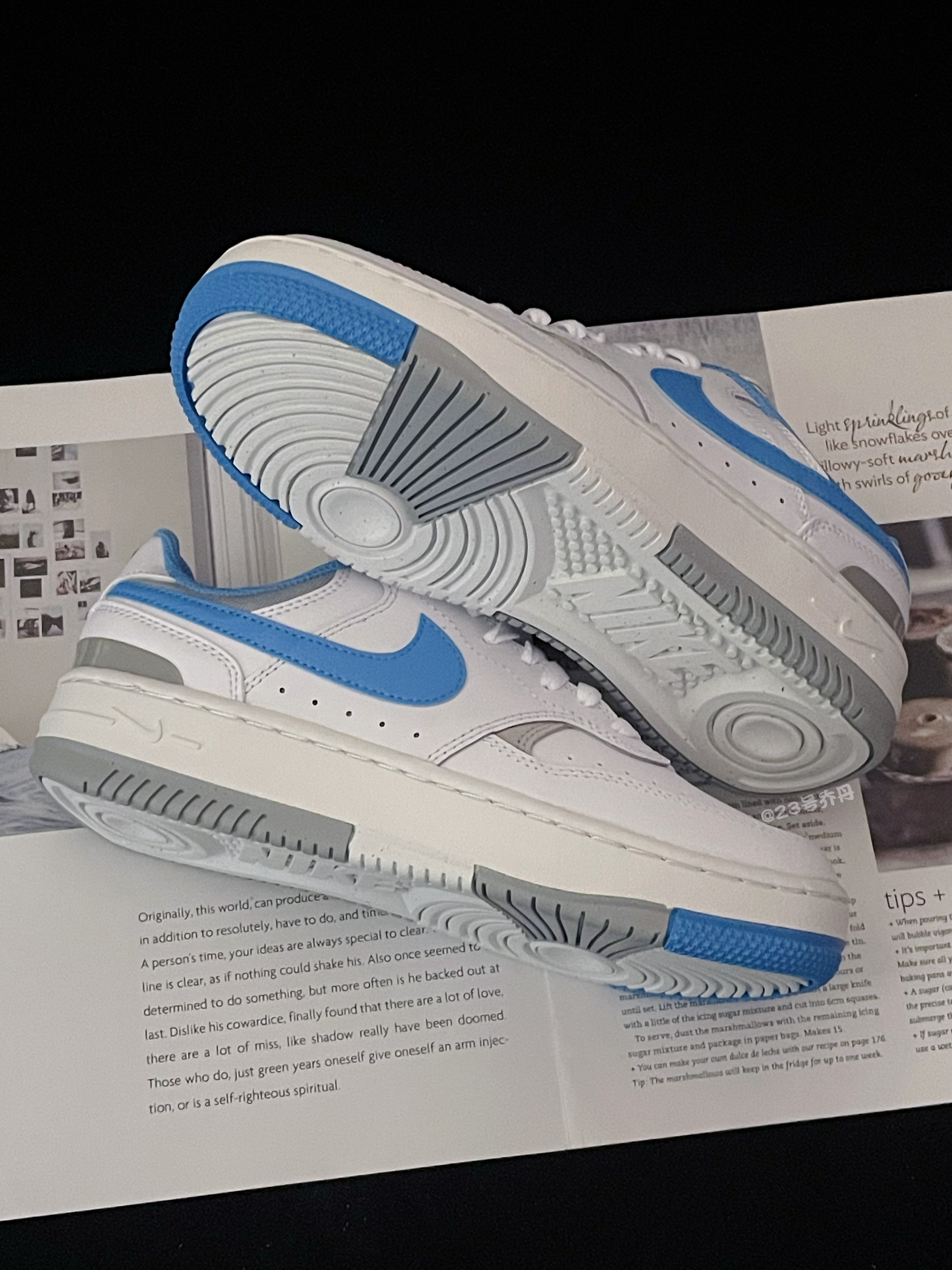 今天给大家分享的是近期发售的 Nike Gamma Force『北卡蓝』白蓝 整双鞋采用了白色/北卡蓝/灰色等搭配 鞋面大面积选用了易于打理的光面皮革 鞋头特殊排列的透气孔保证了一定的透气性 鞋舌/鞋尾均设计有品牌Logi刺绣图案 中底部分比较厚实 有大概3️⃣公分的增高效果 最后由白色/北卡蓝/灰色拼接的橡胶大底收尾 整体来说这是一双颜值挺不错的小板鞋👟 配色清爽 百搭耐看 适合日常休闲或通勤 ...