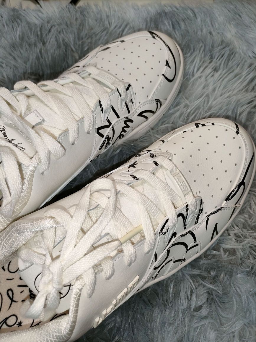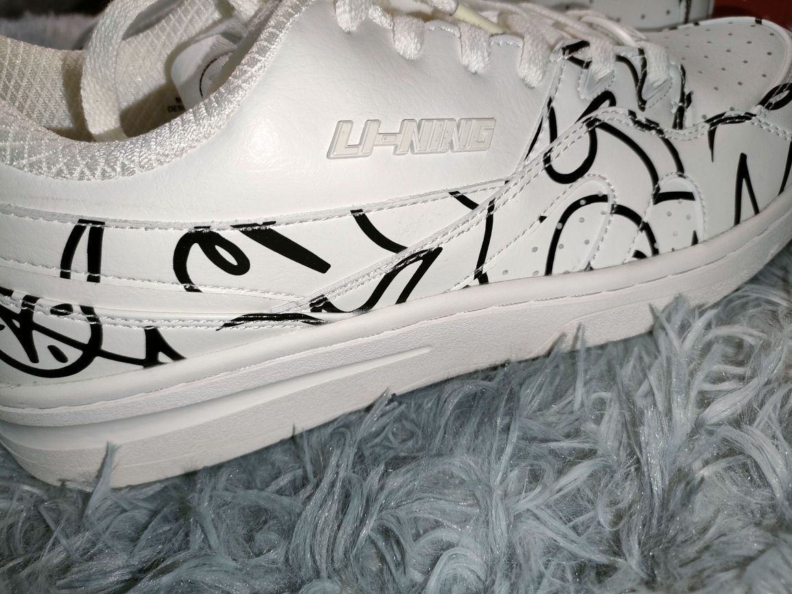 大家好这里是贫穷且富有☺️ 今天给大家带来的是一双李宁的联名板鞋👟这双板鞋是李宁937系列, 937系列版型挺好看的, 这双又是联名款, 让我们一起来看看 吧 这双鞋子, 整体是以白色为底色,白色的鞋身,鞋舌,鞋带,让人一眼看去就有种干净大方的感觉,鞋身周围由黑色的线条勾勒出不同的形态这也是联名艺术家的风格😎 鞋舌上面也印有973模样,鞋带中间也连接有一个937的标志, 鞋面是真皮材质,比较有...