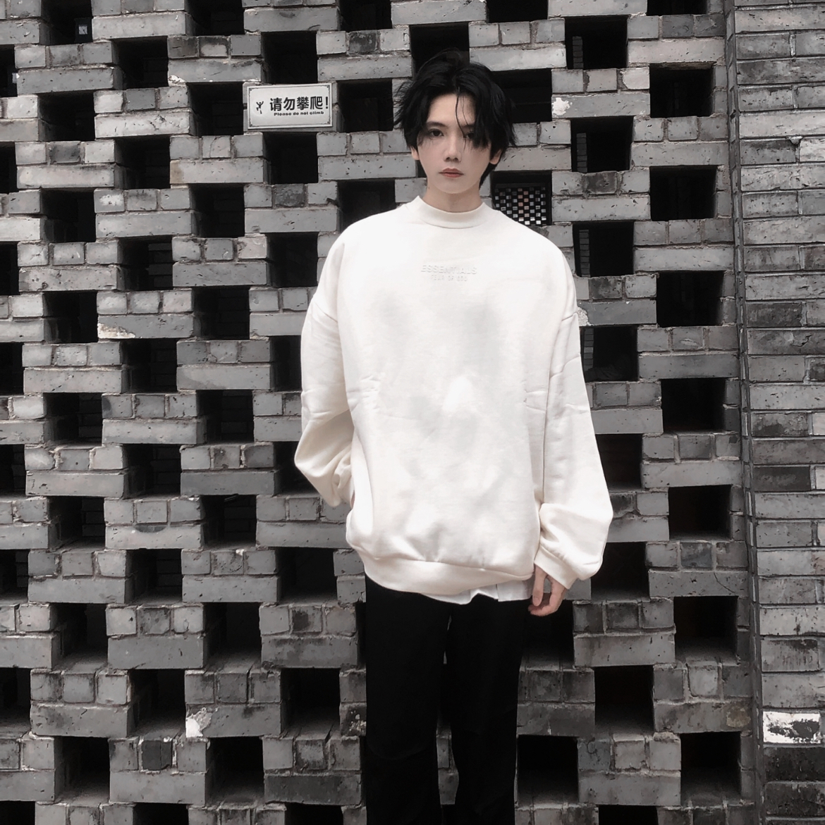 😉😉不知道穿什么的时候 白色总是没问题的基础的圆领卫衣 有一万种穿搭方式吧 今天展示潮流酷盖的穿搭 ⭐️⭐️上半身是加绒的基础款圆领卫衣 但是在胸前有一个复古字体刺绣小细节增强质感 简约又百搭可以选择设计感的饰品搭配一下 高级质感up起来!
