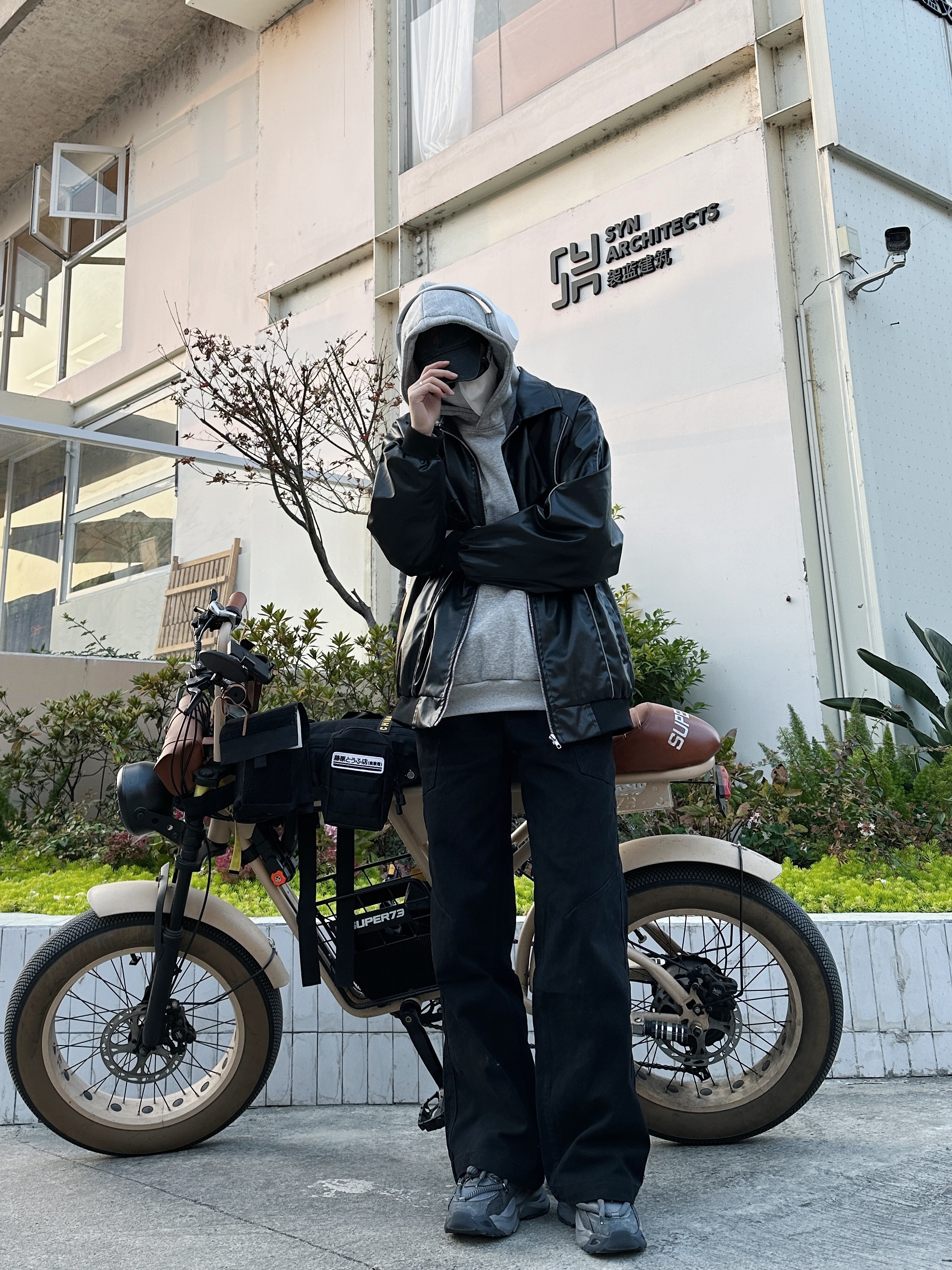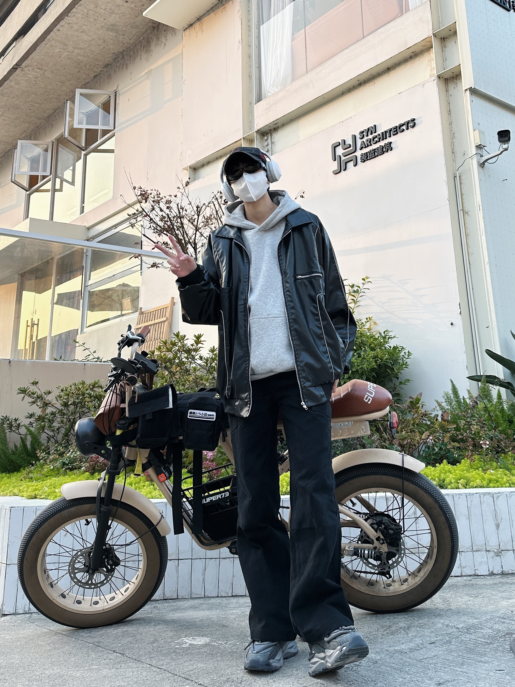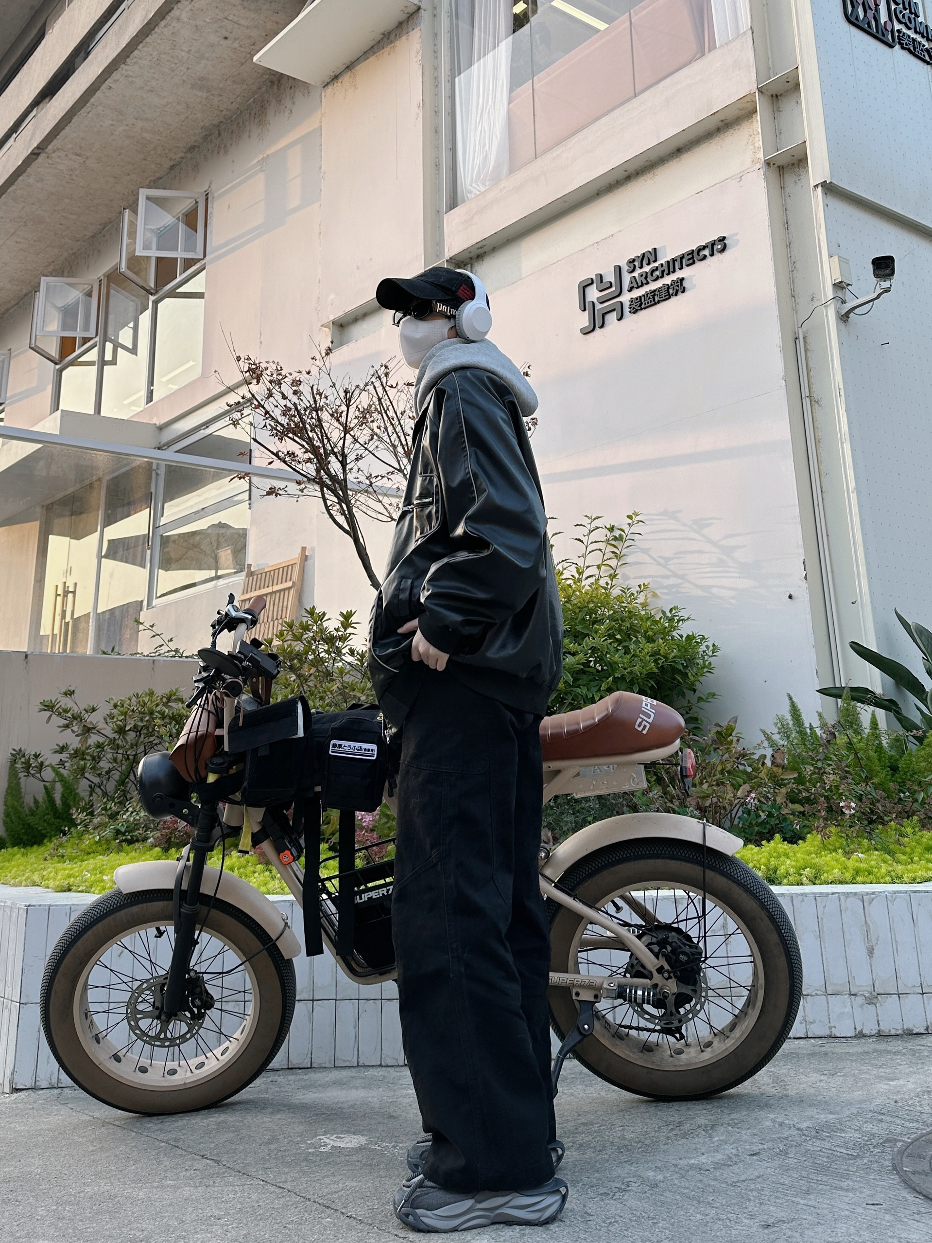 hello家人们 这里是阿拐 今天拐子的骑行LOOK🚴🏻 皮夹克叠穿连帽卫衣➕牛仔裤➕老爹鞋 参考身高176-54 - 皮衣真太酷了 短款长款都得囤两件 叠穿卫衣增加层次感 自带复古的感觉 拐子穿的是L码 都很合适 裤子搭配了一条宽松的直筒牛仔裤 牛仔裤版型很好看 高裆做的很有美式街头感 显高显腿长 我穿L码 老爹鞋真就挺万能的 轻松驾驭任何穿搭 所以拐子的老爹鞋真的很多 今天这双也是贼...