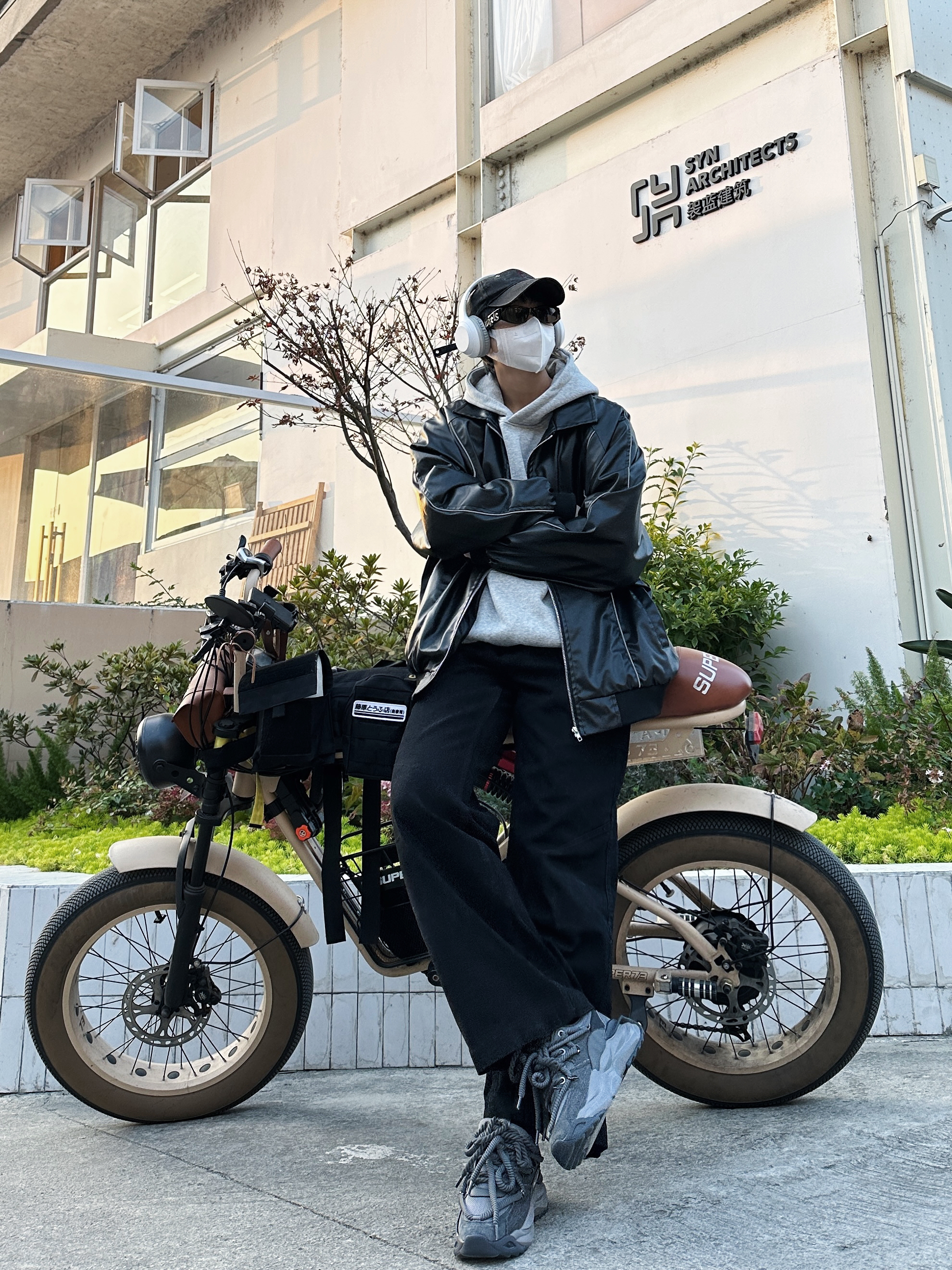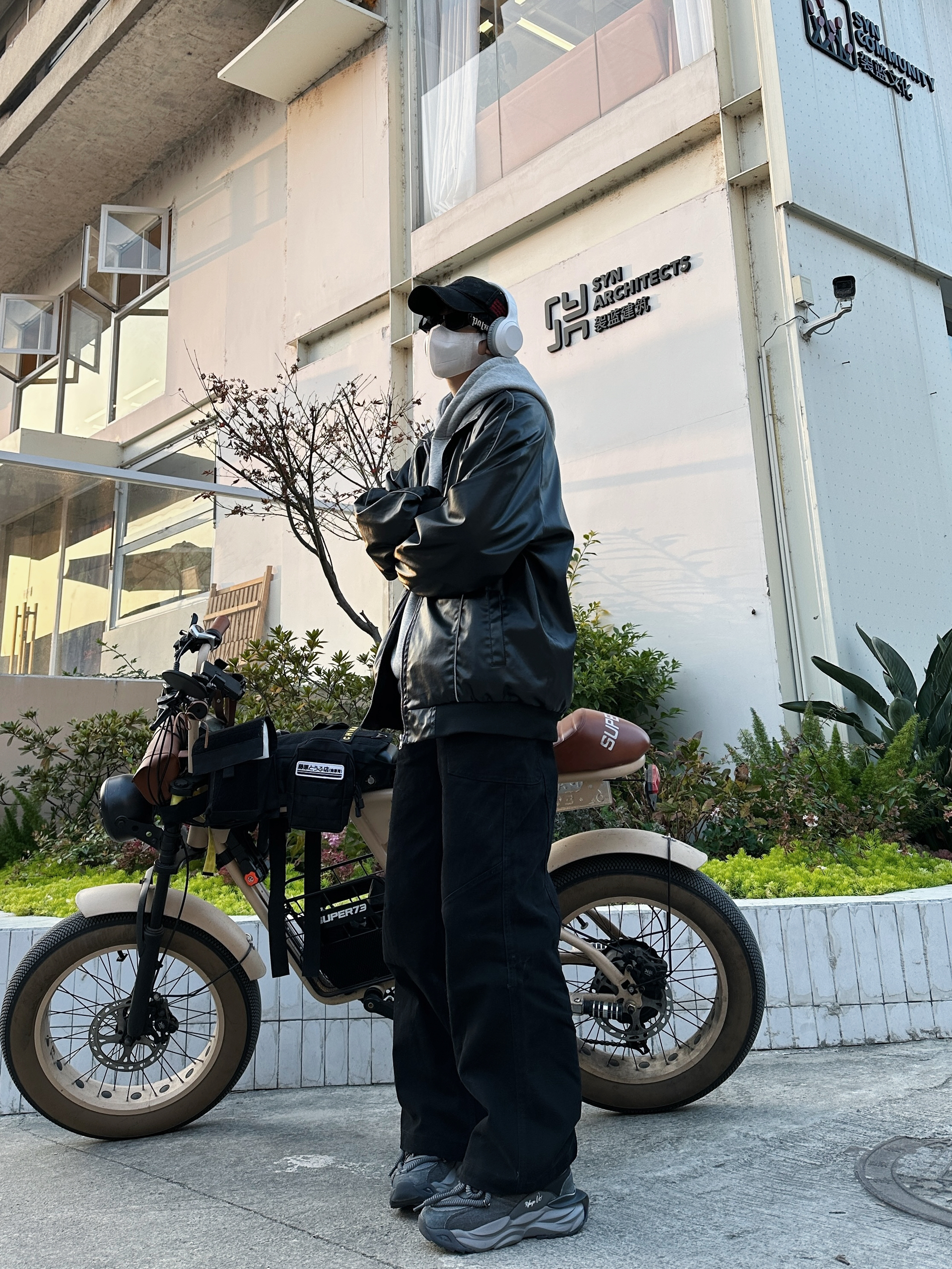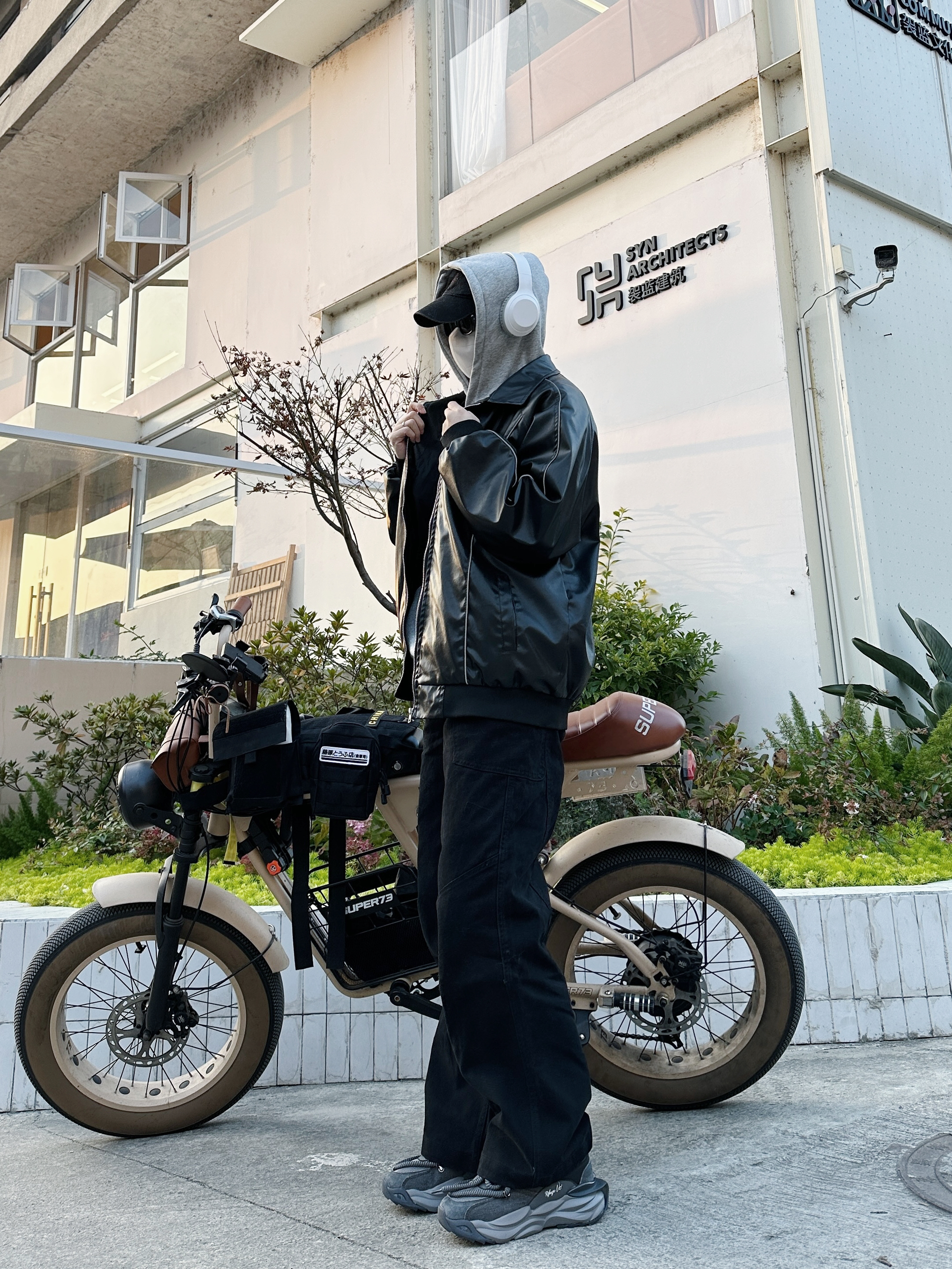 hello家人们 这里是阿拐 今天拐子的骑行LOOK🚴🏻 皮夹克叠穿连帽卫衣➕牛仔裤➕老爹鞋 参考身高176-54 - 皮衣真太酷了 短款长款都得囤两件 叠穿卫衣增加层次感 自带复古的感觉 拐子穿的是L码 都很合适 裤子搭配了一条宽松的直筒牛仔裤 牛仔裤版型很好看 高裆做的很有美式街头感 显高显腿长 我穿L码 老爹鞋真就挺万能的 轻松驾驭任何穿搭 所以拐子的老爹鞋真的很多 今天这双也是贼...
