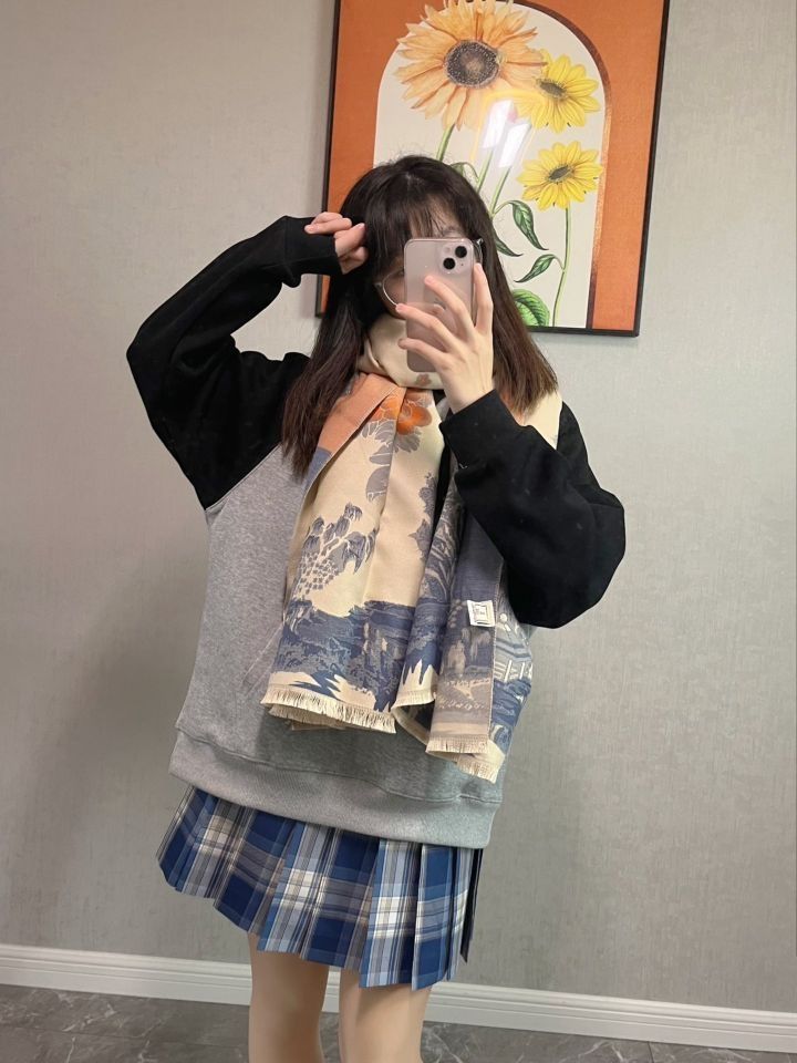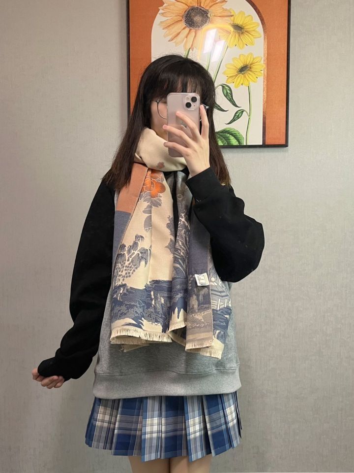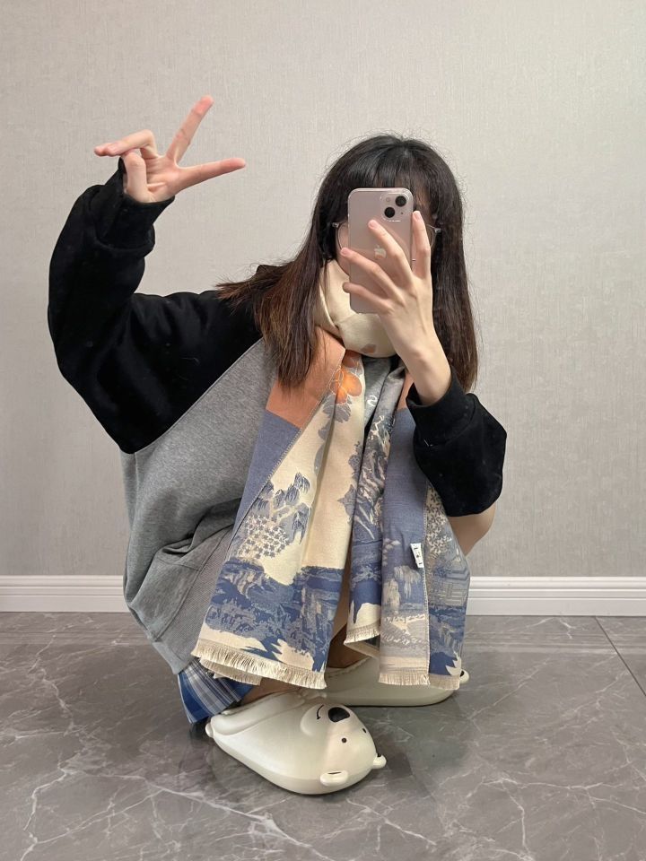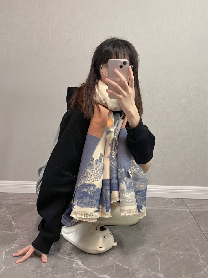 ❤️江南国风图案别致优雅好搭配 正反两面是不一样的图案 淡雅温柔拼色增加了古典时尚气息 适合搭配衣柜里所有秋冬衣服 ❤️大大的围巾好有安全感 软软糯糯的 而且好保暖 虽然是仿羊绒的材质 但是手感很好很柔软 花色不单调 还可以单独当披肩 保暖又好看~ ❤️新中式的双面提花图案,送给妈妈也是不错滴! (图片来自博主:叫姐姐星吗)