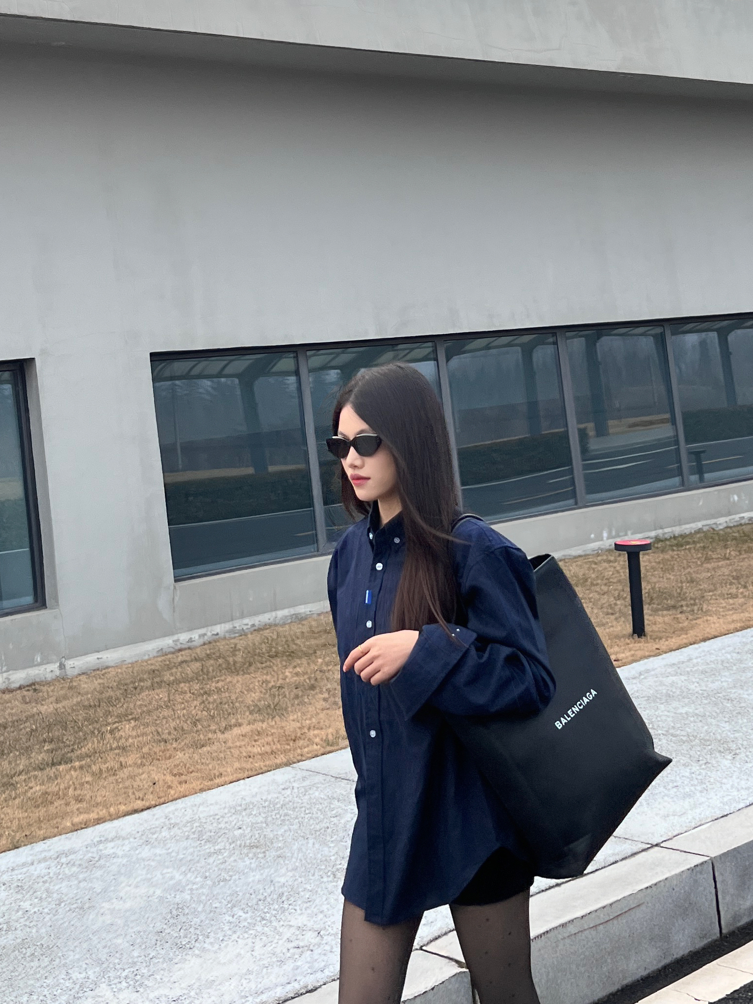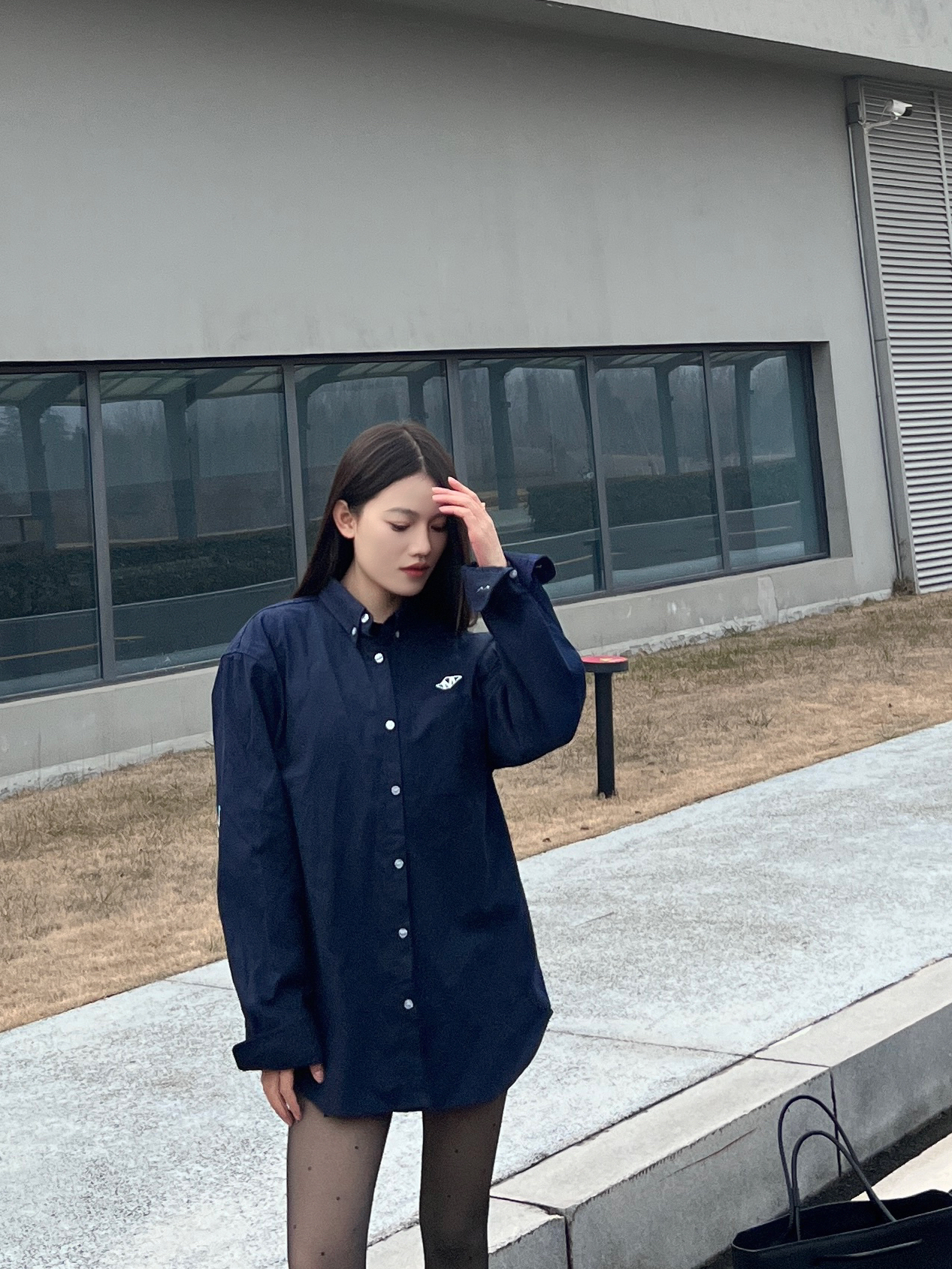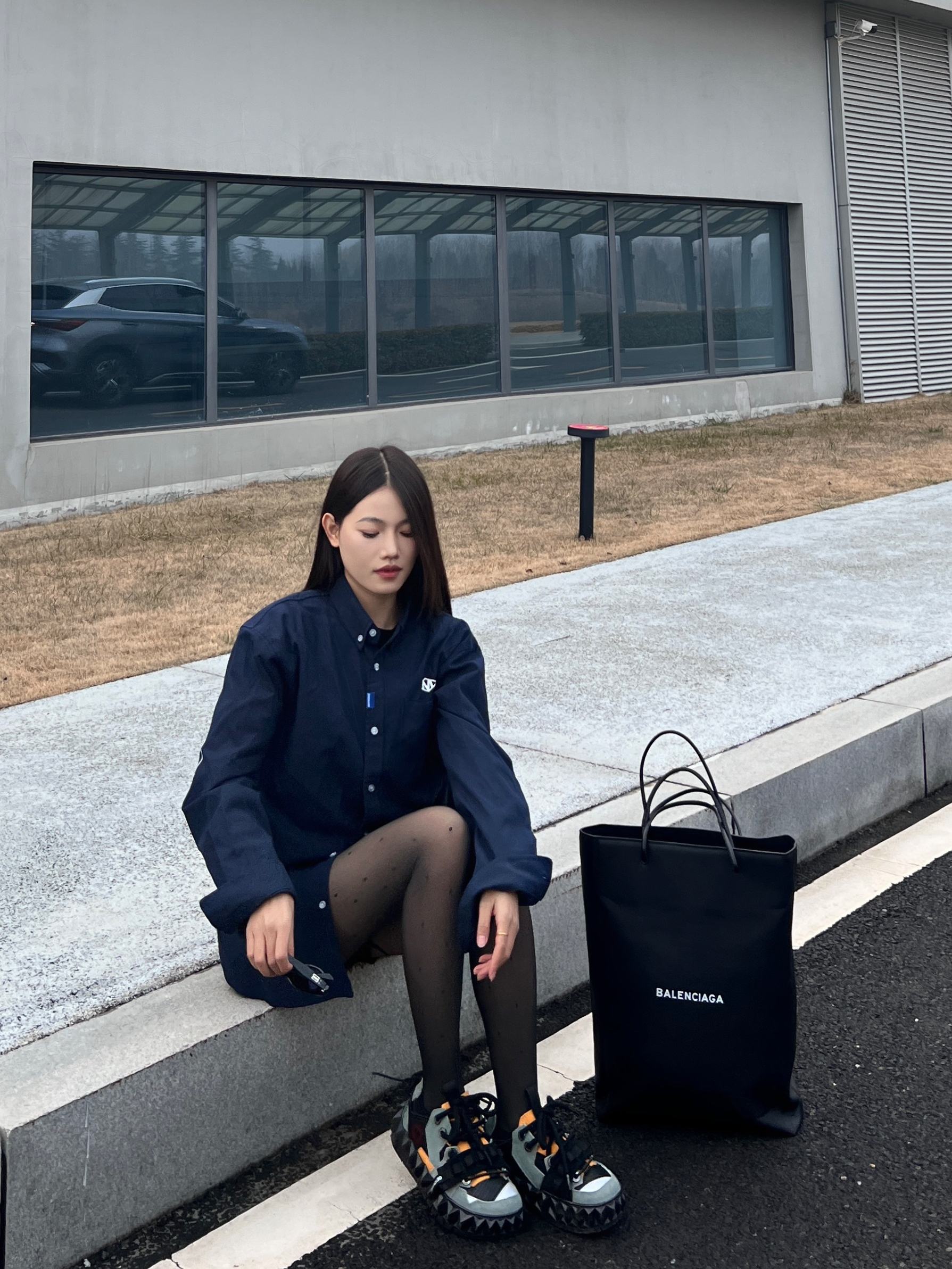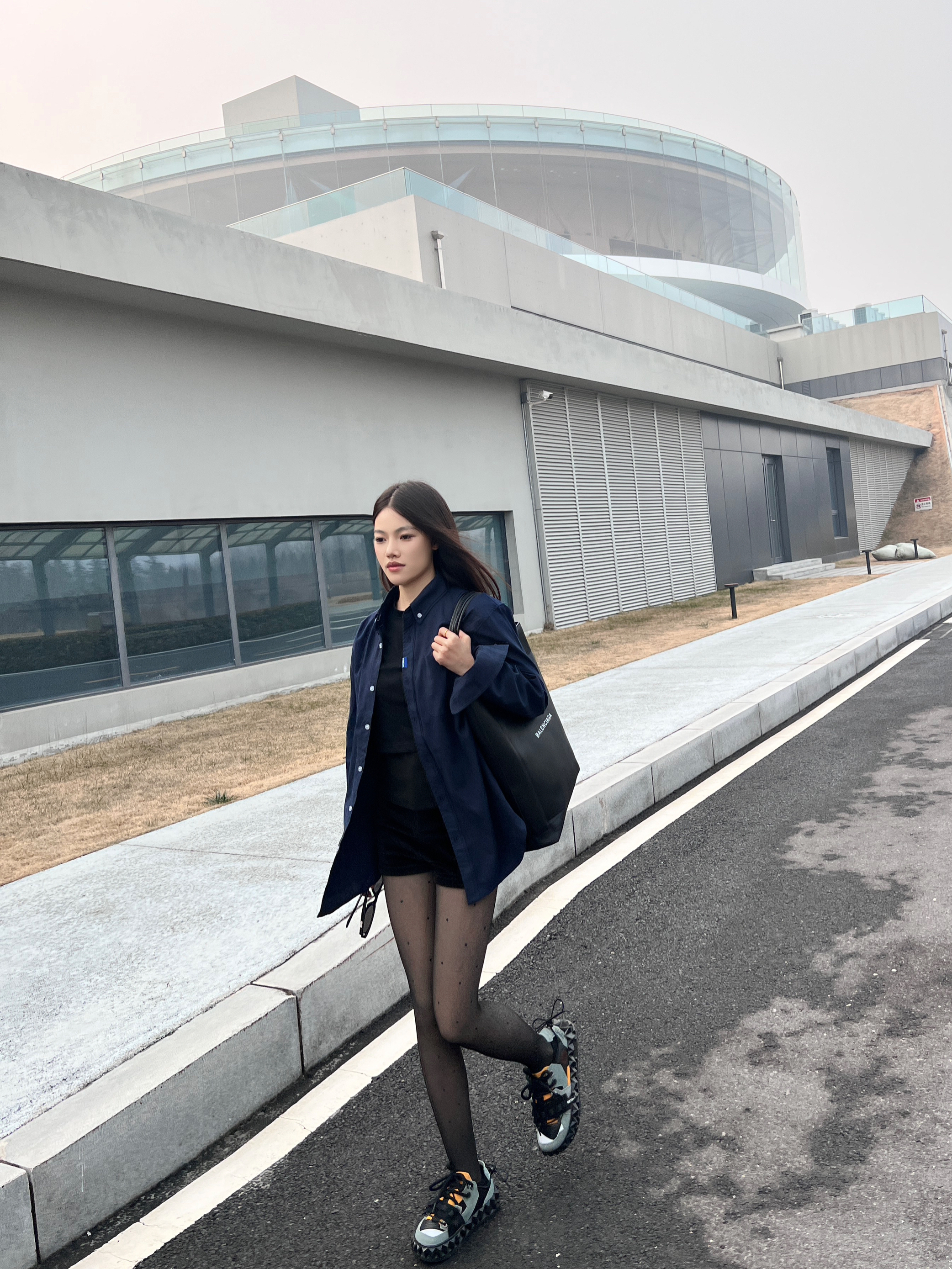 今日份穿搭来喽~ 想要潮酷感十足不仅需要黑丝 还需要在鞋子上下功夫❗️ - 以今天的穿搭为例 藏蓝色休闲衬衫叠穿一件黑色内搭 同时在利用深色系营造碰撞感✔️ 选择一条波点黑丝 - 性感中还带有一丝俏皮 当然鞋子也狠重要❗️ 我选择的是 OETZI 家的丑萌鞋 黑色为基础色再加上军绿色和橙色的拼接设计 时尚的同时又增添了潮酷感❗️