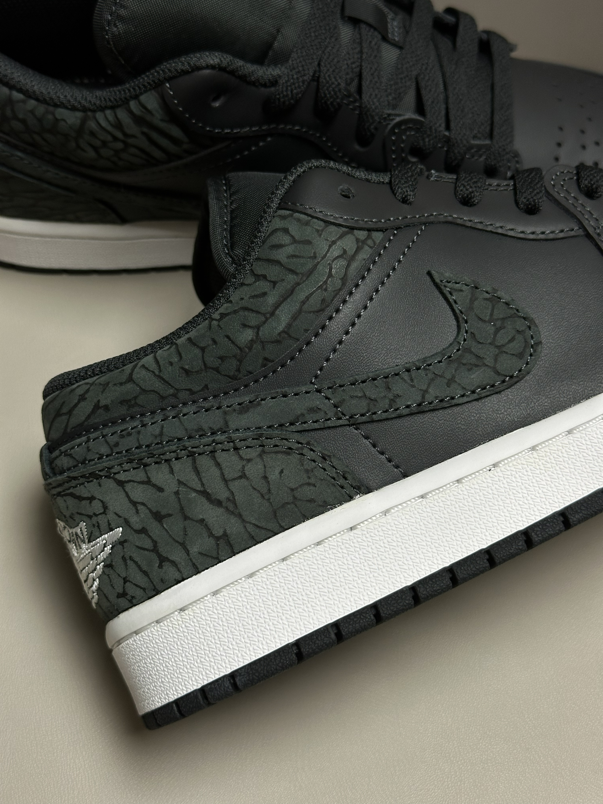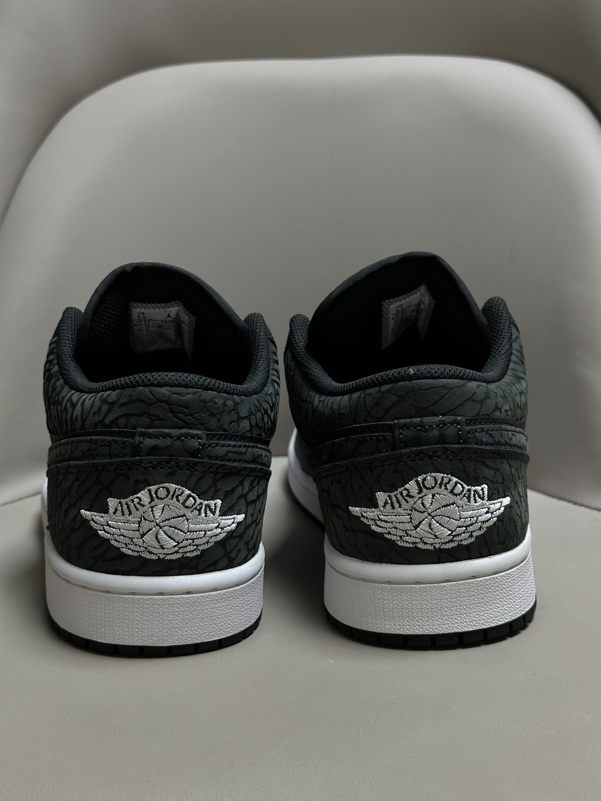 黑色系AJ1搭配爆裂纹设计真的帅,上脚搭配效果主打一个低调又有个性,除了入眼可见的黑色鞋面和爆裂纹鞋帮以外,其实后跟的白色刺绣大飞翼也特别吸睛,做工质感也很好