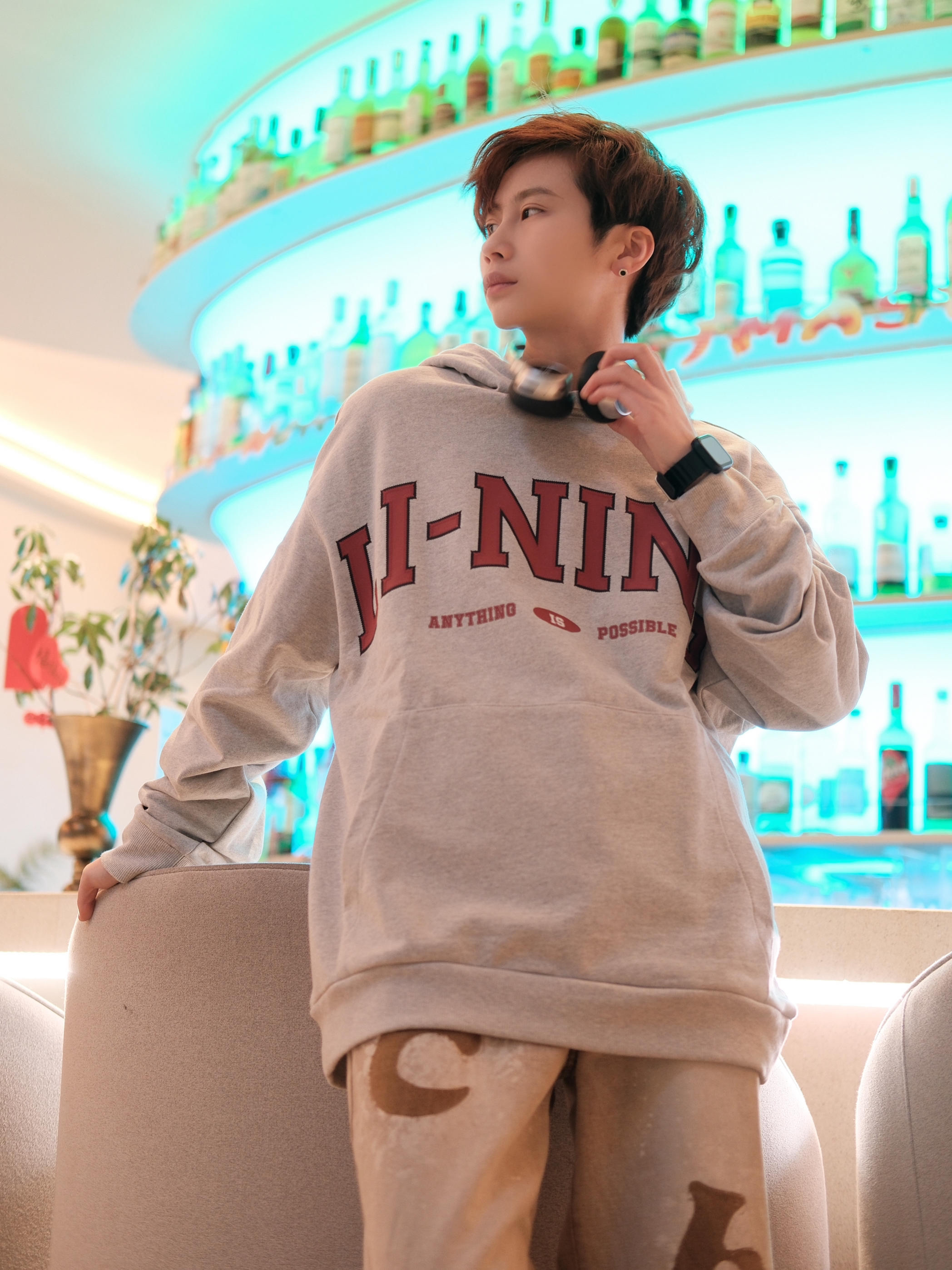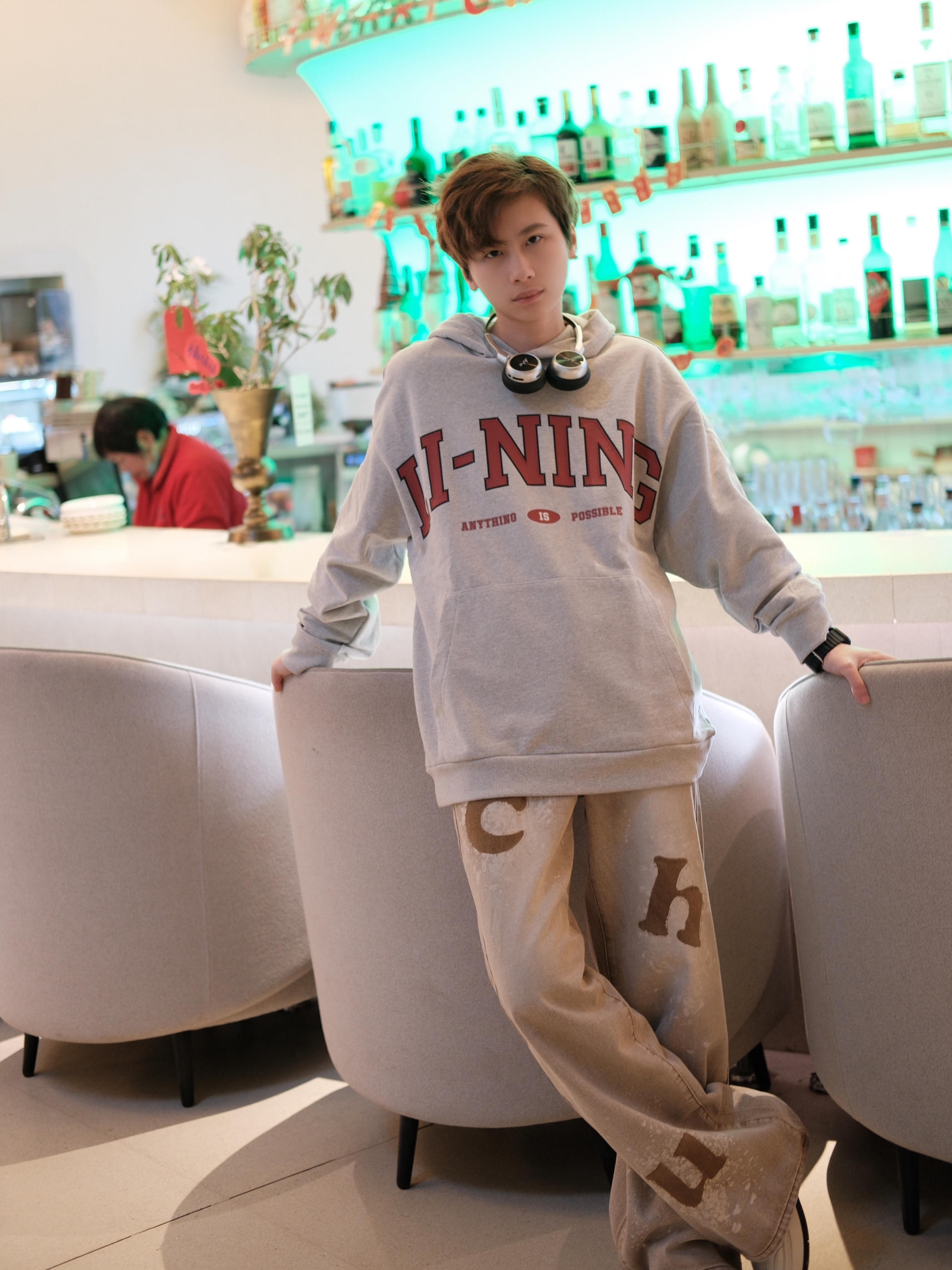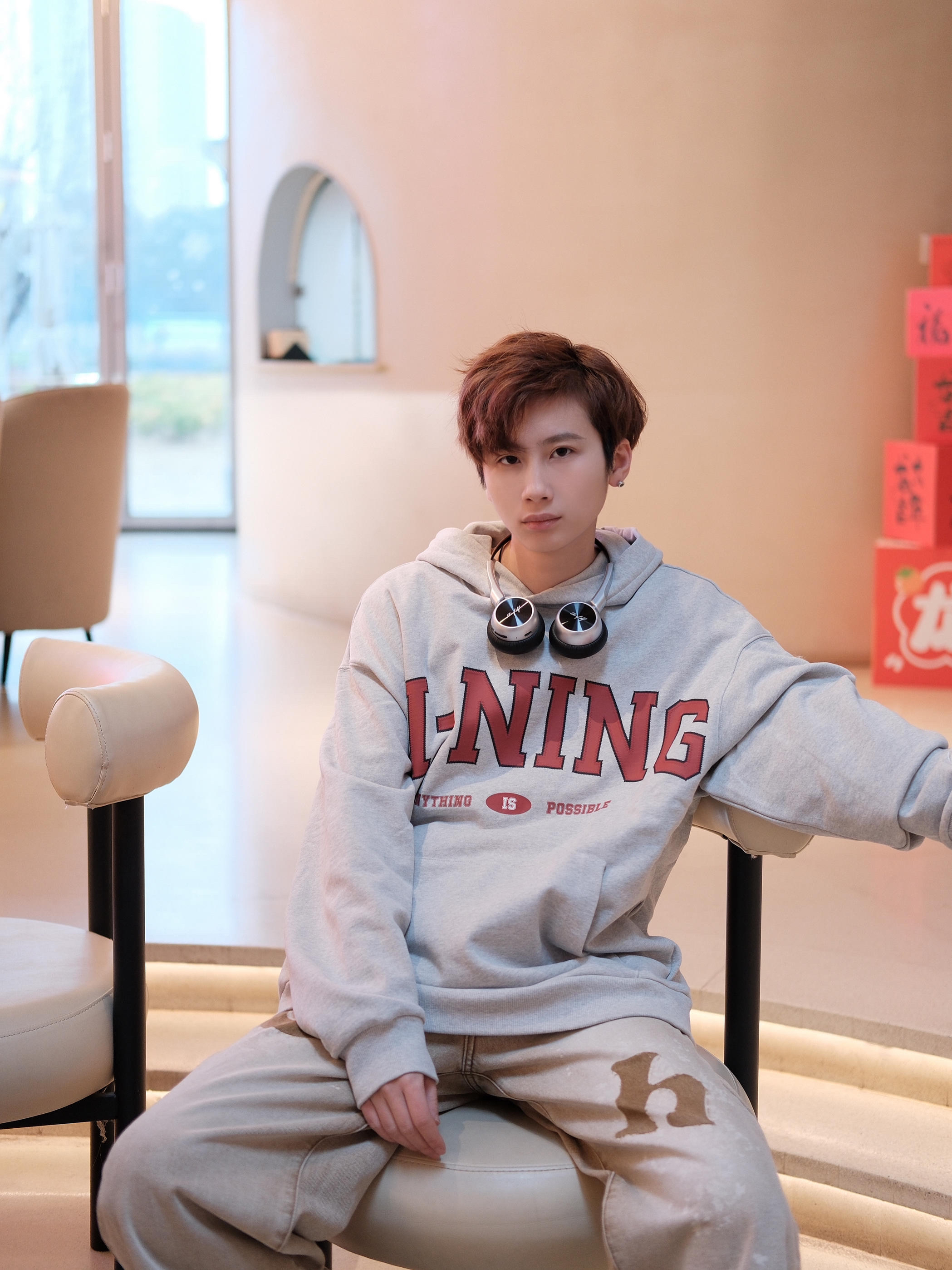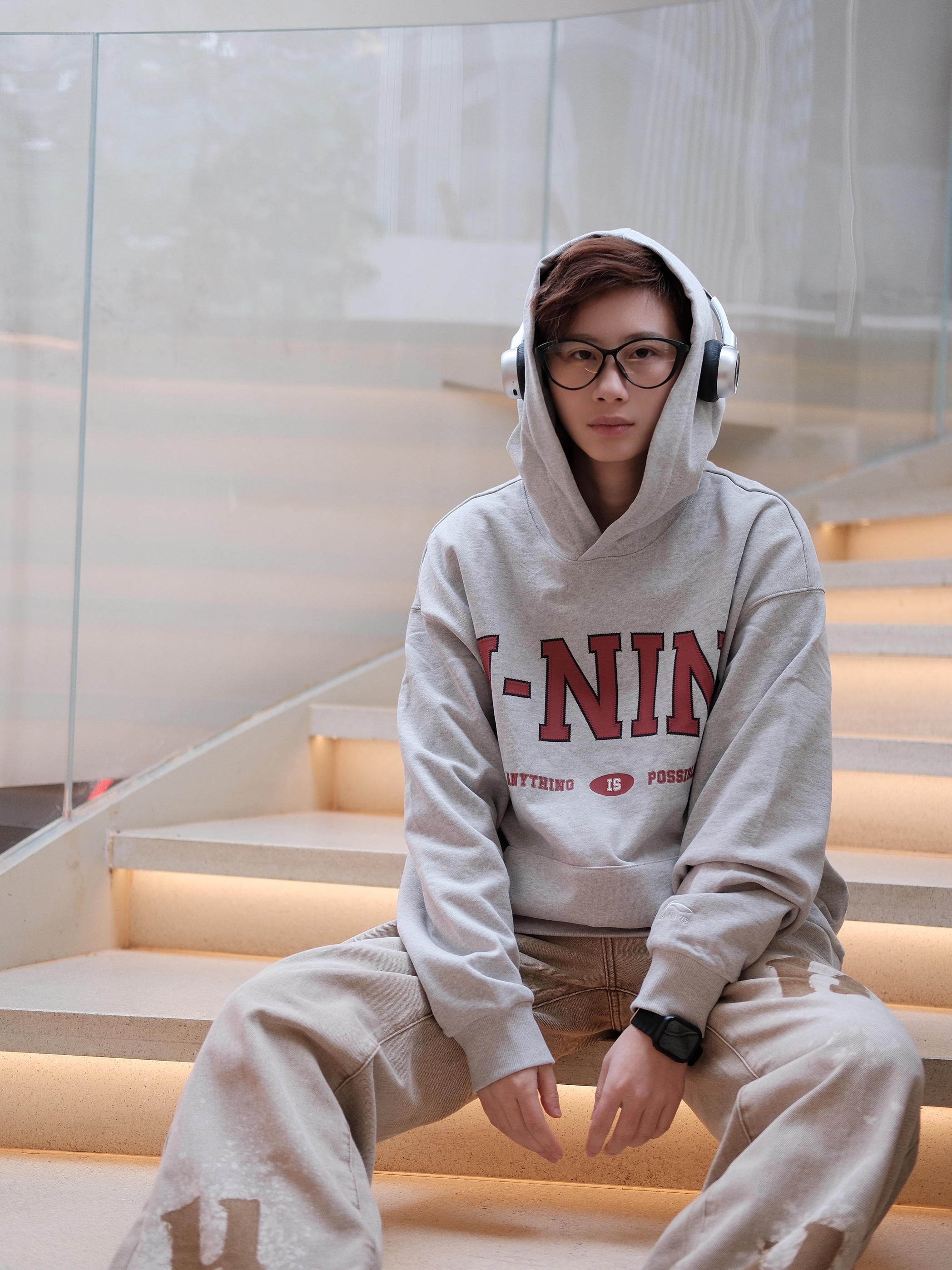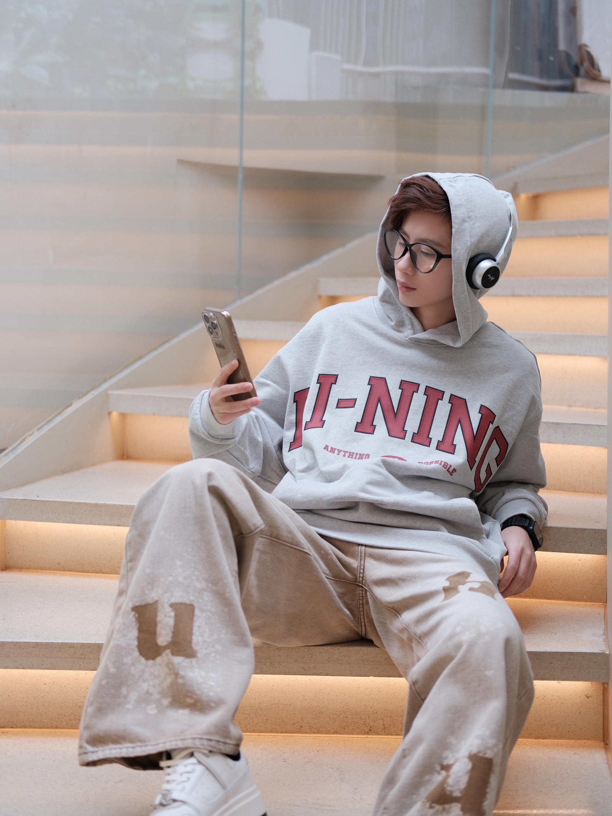 赶一下格雷系穿搭的末班车🚞 以灰色为主色调⚪️,搭配咖色碰撞不一样的火花 上衣一件浅灰色的李宁连帽卫衣,简单百搭 oversize宽松版型,轻松拿捏慵懒随性少年感 胸口的红色字母logo,有点美式街头风的感觉 下半身一条咖色牛仔裤,刚好盖过鞋面的长度,能适当的拉长腿部比例 最后搭配一双小白鞋,百搭不出错 避免过多颜色破坏整体氛围✅ 尺码参考:163cm/44kg 上身m码