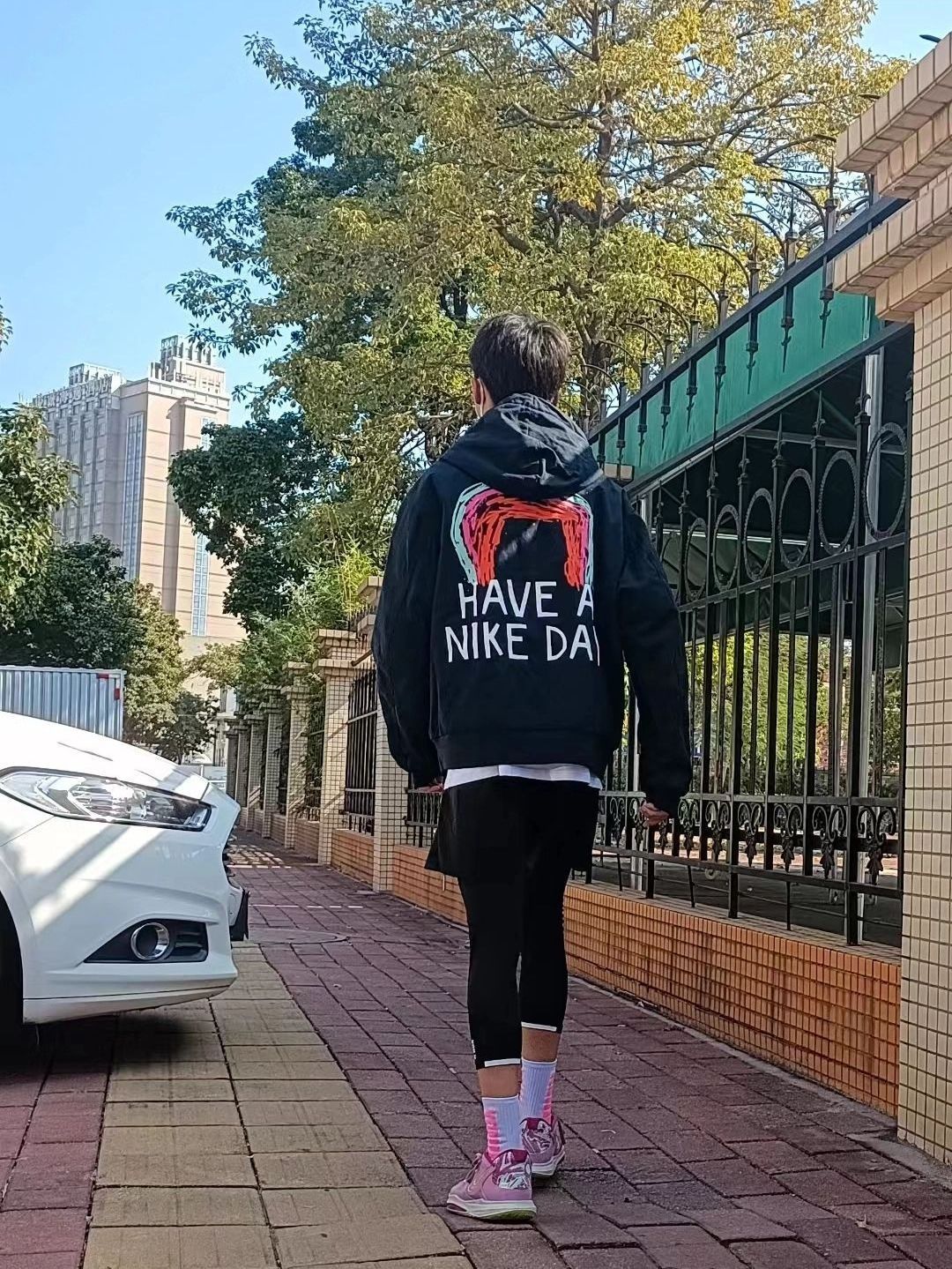🍨🍨Nike 百搭舒适运动连帽外套保暖夹克 🥃🥃🥃黑色的飞行员夹克是真的超级帅 上身很利落 满满🍪 略宽松版型不会过于臃肿 整体设计都很好随便搭个 T 都好看 🍪🍪裤子选择一条设计感牛仔裤 宽松直筒很显瘦🍪🍪 微拖地效果真的很显腿长谁懂 很百搭又不容易撞款!爱了🍪🍪图片来自于博主散金