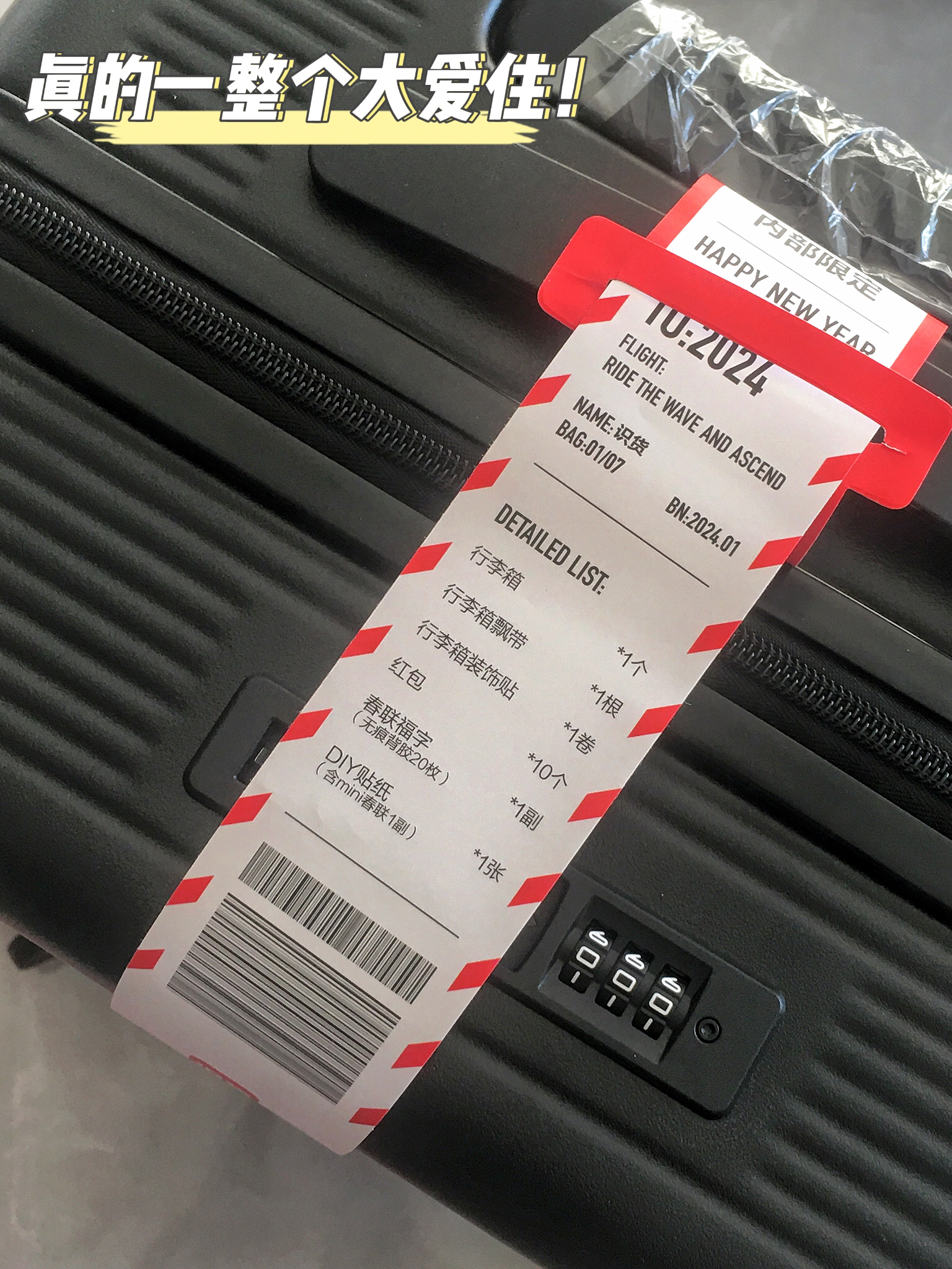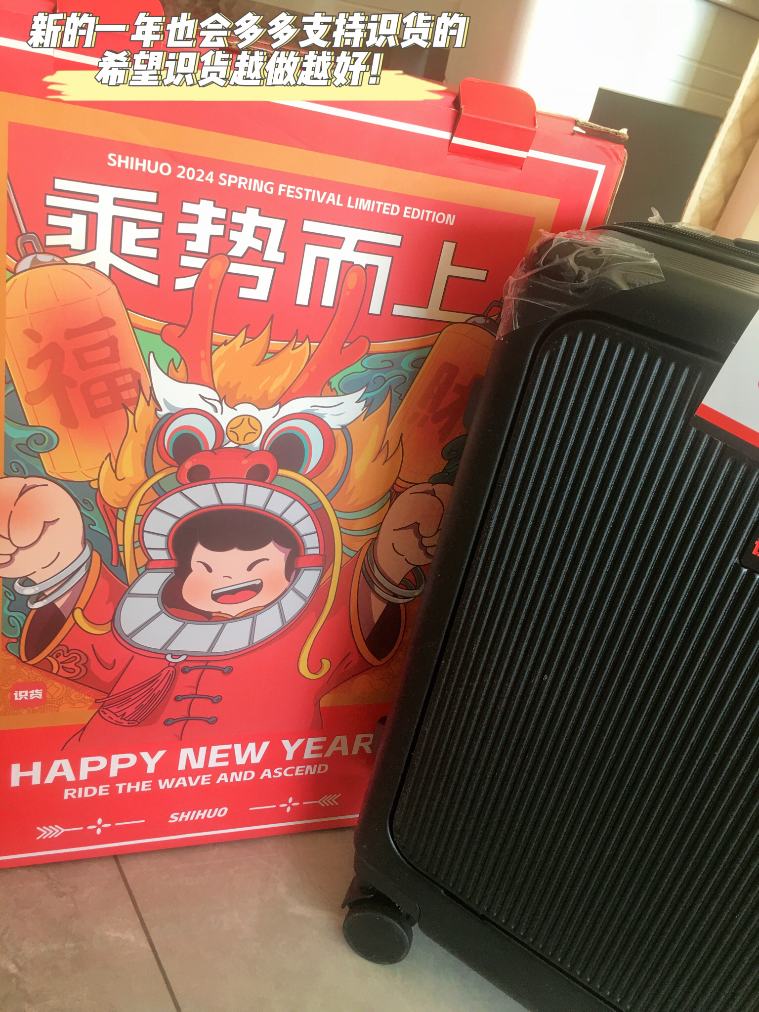 Hello大家好,今天好开心收到了识货的新年礼盒,居然是行李箱哎,识货你真的很用心哎! 20寸的行李箱,真的很实用,而且箱子里有福字,春联和贴纸,新年的气息一下子就来了! 谢谢识货!新的一年祝识货社区越来越好,我也会努力多多发笔记!!!