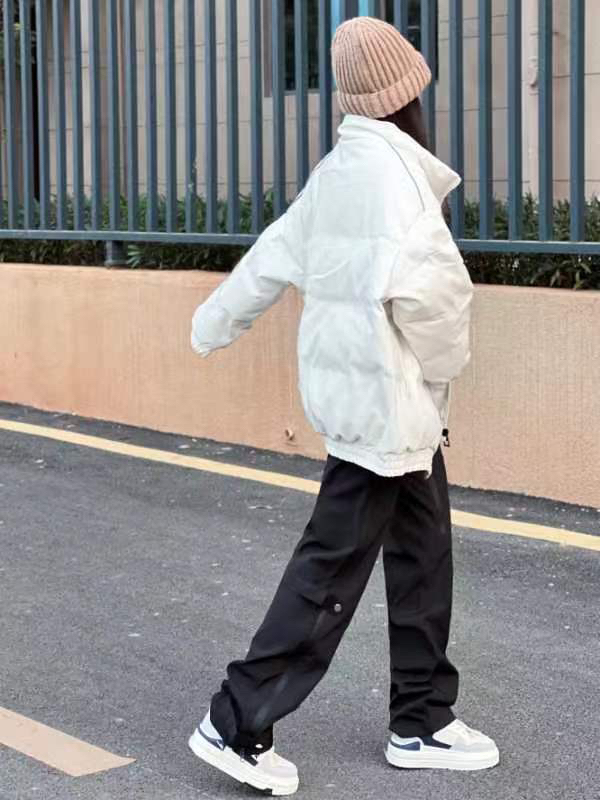 实不相瞒!!这条裤子好懂女生,腰臀贴合➕裤腿宽松!!显腰细的同时还把腿上肉肉都遮住,裤脚还可收口两穿!!面料属于厚实硬挺的(冬天很抗风)