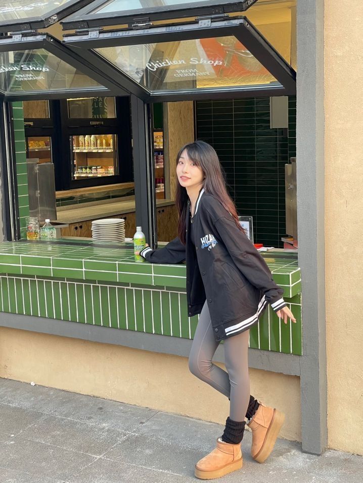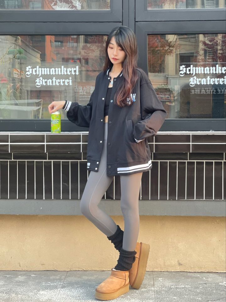 棒球外套永不过时 搭配了鲨鱼裤 实在是显瘦 今天分享的棒球外套是薄款 不是轮廓很硬的种 就很方便又松弛的感觉 最近get了鲨鱼裤配上堆堆袜的好看 搭配雪地棉有那味了 #棒球服高级穿搭来了 #宝藏卫衣推荐 #鲨鱼裤这样搭 #保暖雪地靴