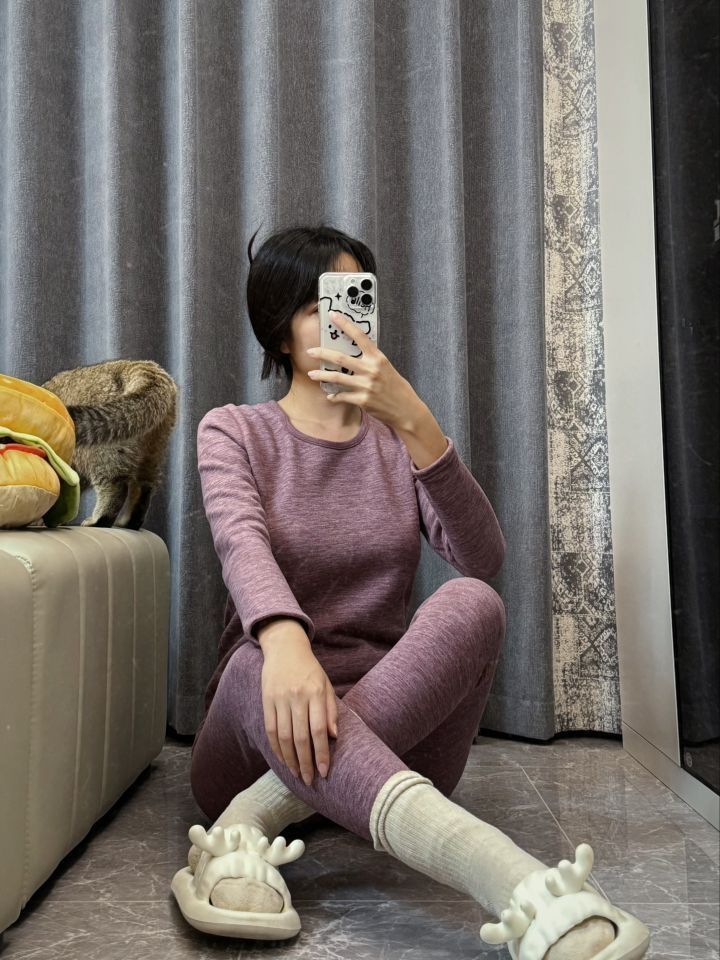 现在不用妈妈说 天一冷 自己主动就把保暖内衣穿上了 这加绒秋衣秋裤真的是很伟大的发明 穿上之后立马感觉好暖和啊👻 有一种发热的感觉 而且一点都没有束缚感🤪 安全感满满 里面的绒绒又密又厚 #秋冬睡衣分享 #双十一换新衣 #美雅挺保暖套装 #圆领加厚保暖内衣套装