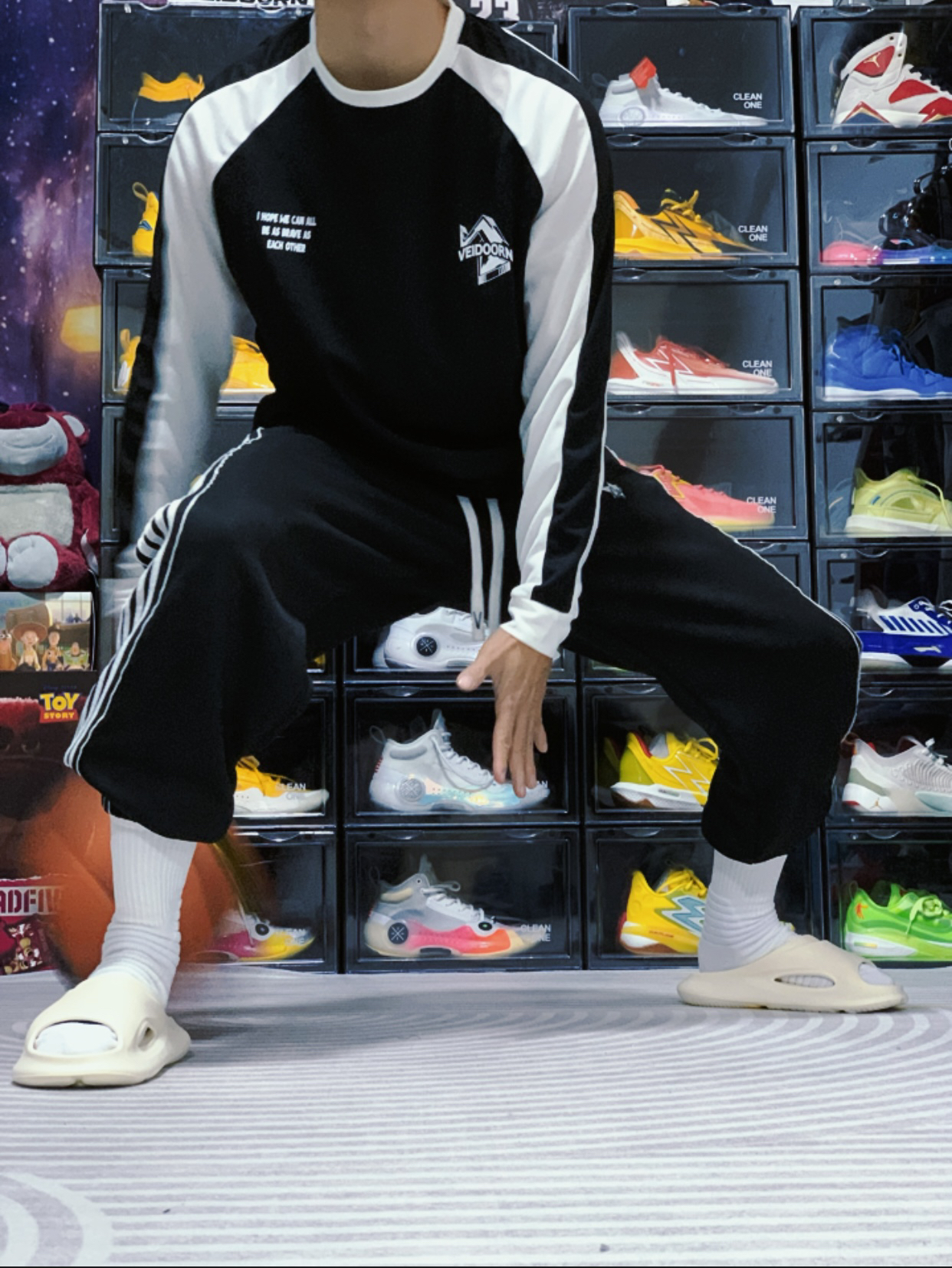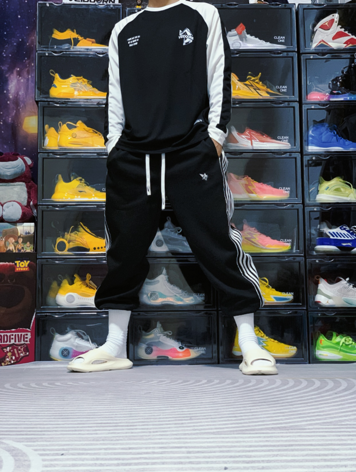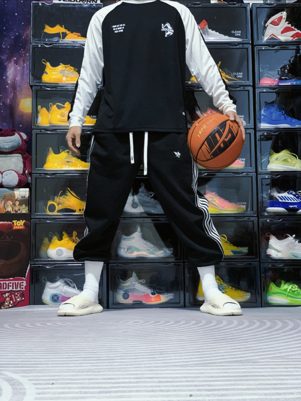 今天上身来自 维动 VEIDOORN 家的引向系列投篮服,这件投篮服采用黑白撞色插肩的设计,胸前的字母LOGO和背面的印花设计十分帅气。搭配同样是维动家的复古卫裤,妥妥的美式球员风!#美式篮球运动风穿搭指南 #维动投篮服 #投篮服推荐 #维动篮球投篮训练服 #打篮球穿搭