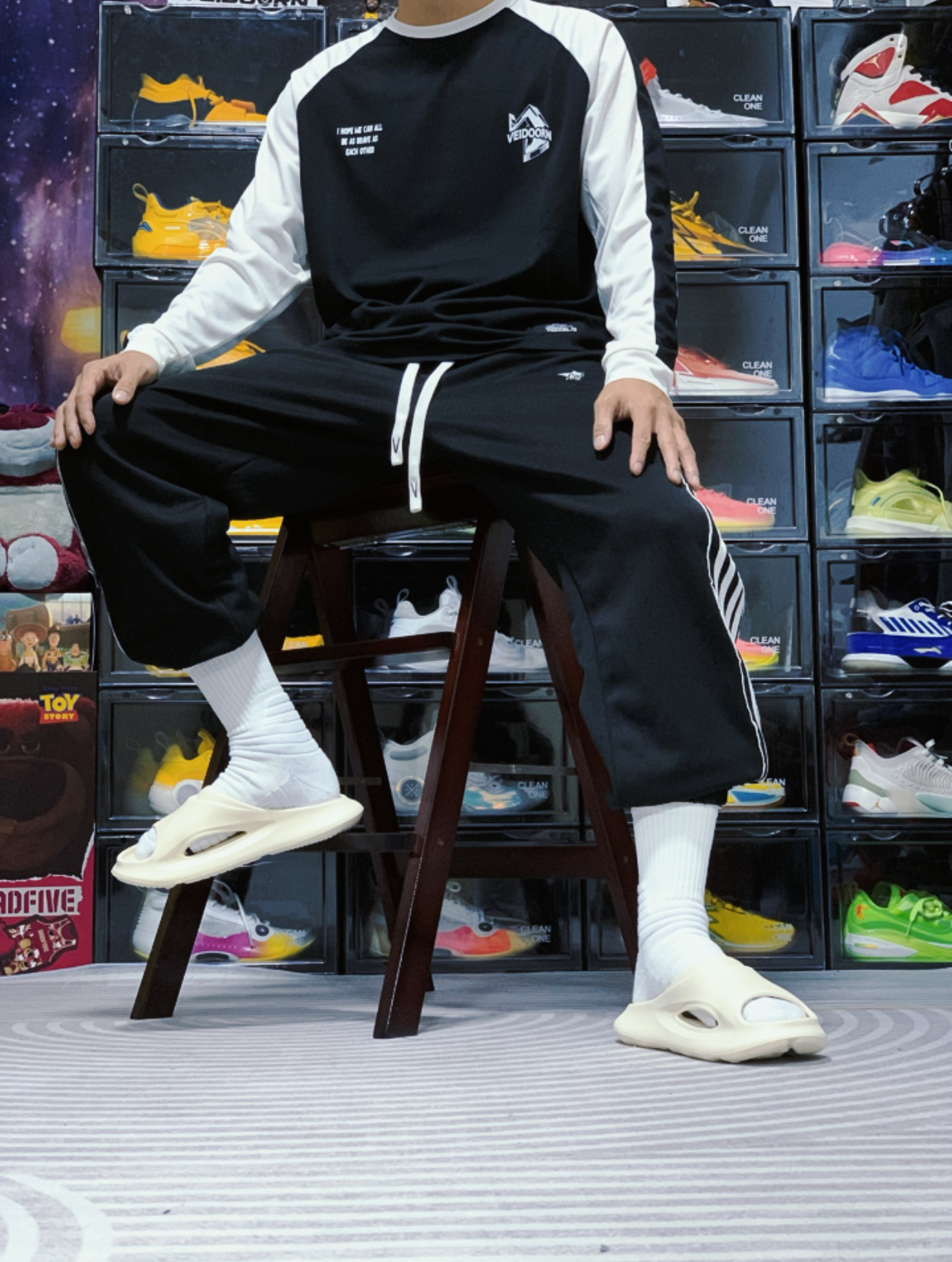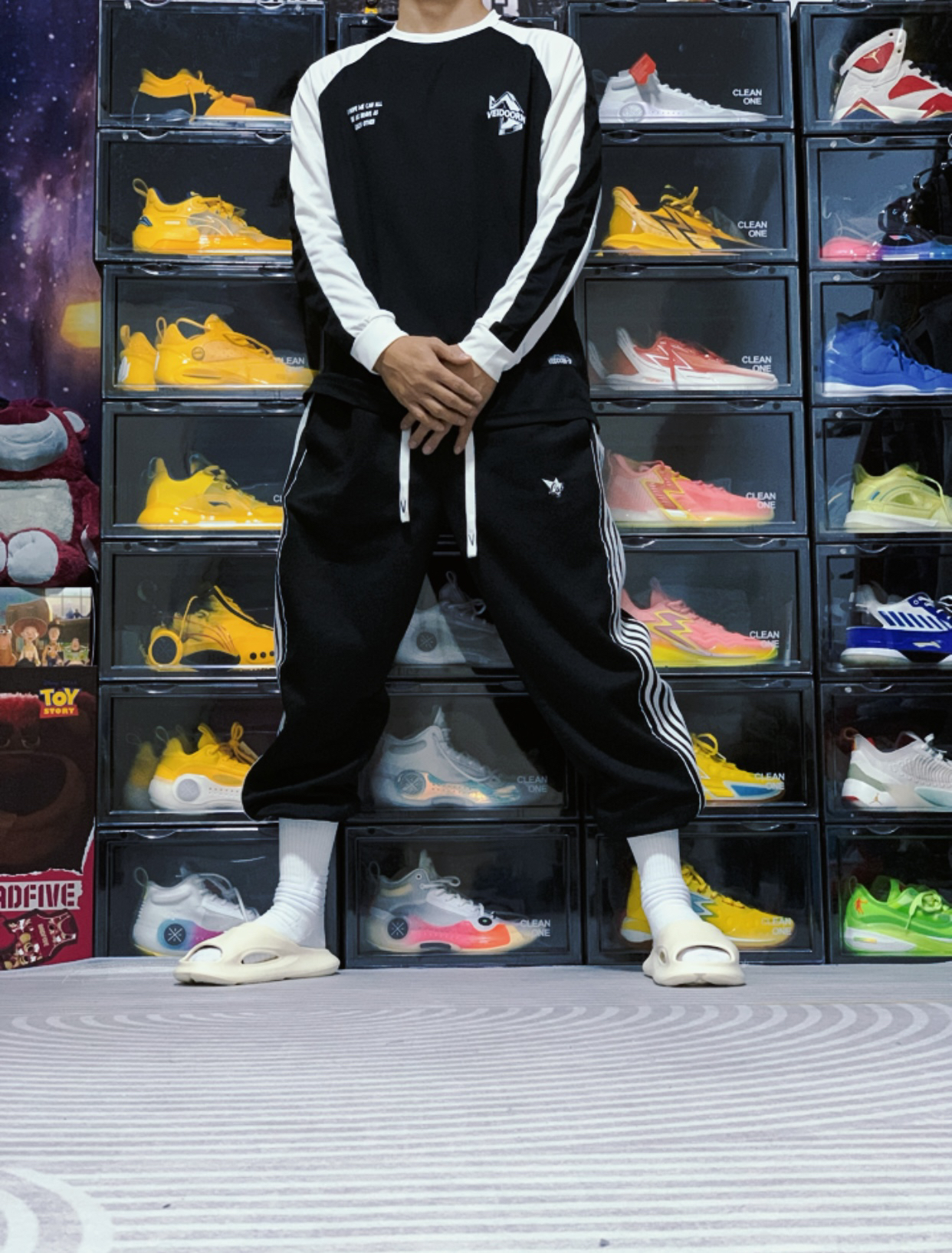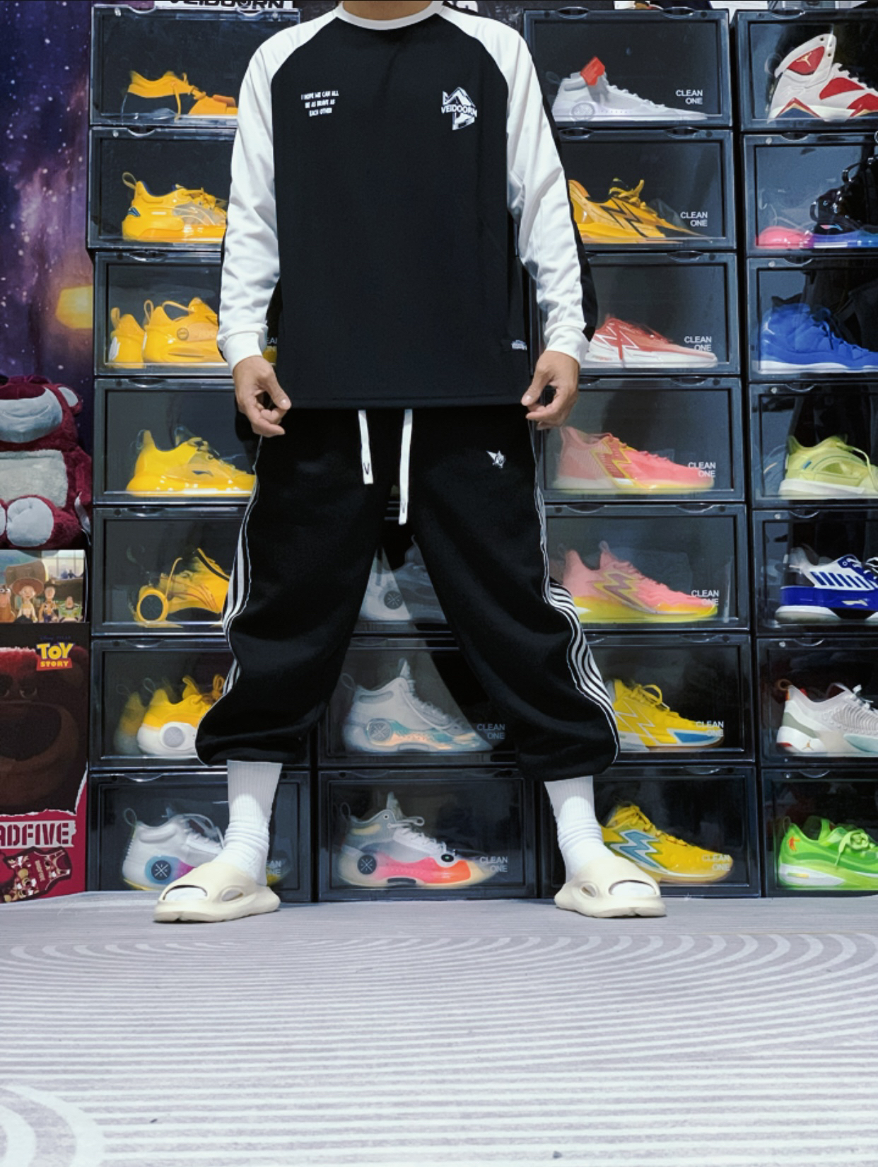 今天上身来自 维动 VEIDOORN 家的引向系列投篮服,这件投篮服采用黑白撞色插肩的设计,胸前的字母LOGO和背面的印花设计十分帅气。搭配同样是维动家的复古卫裤,妥妥的美式球员风!#美式篮球运动风穿搭指南 #维动投篮服 #投篮服推荐 #维动篮球投篮训练服 #打篮球穿搭