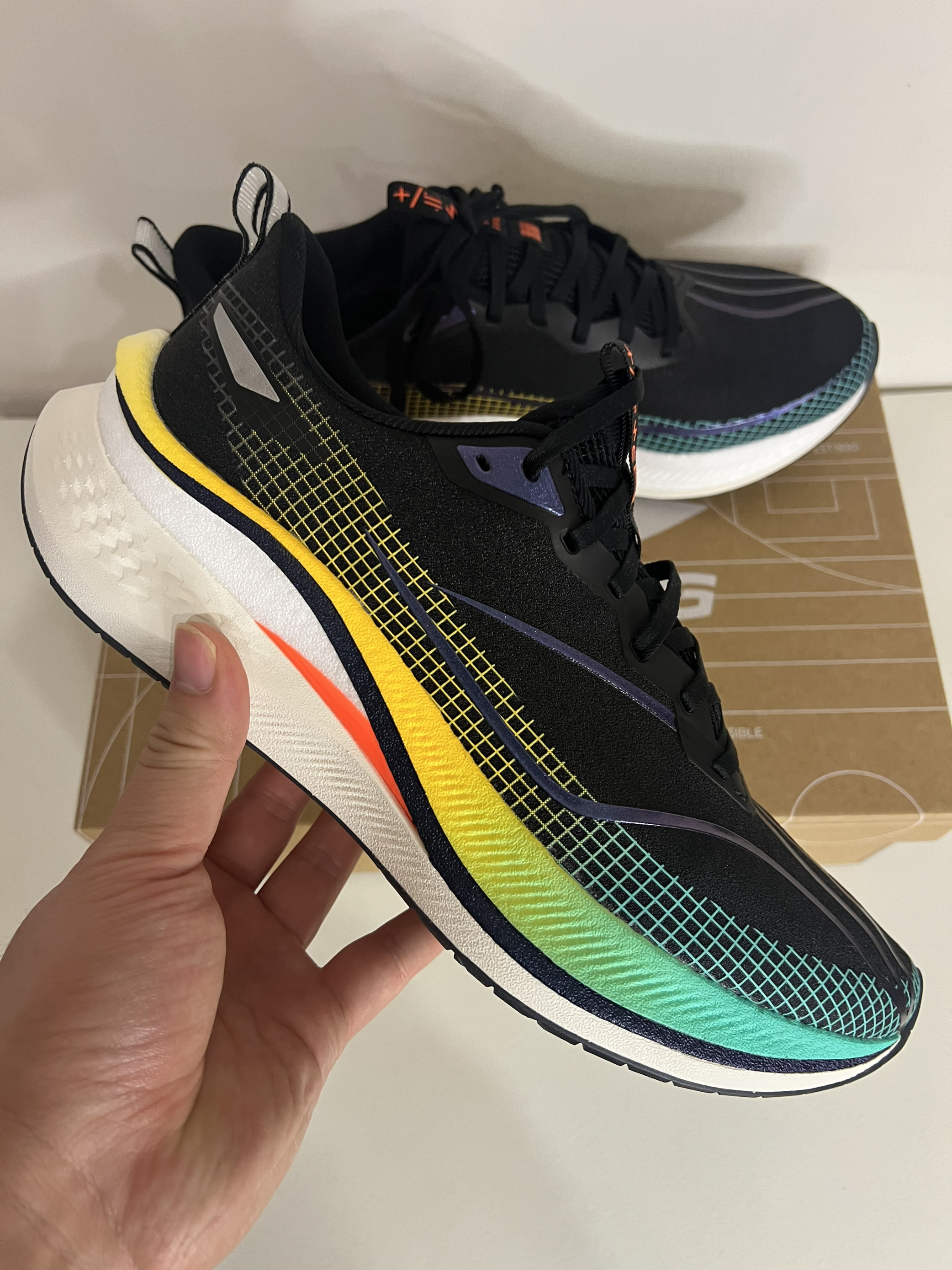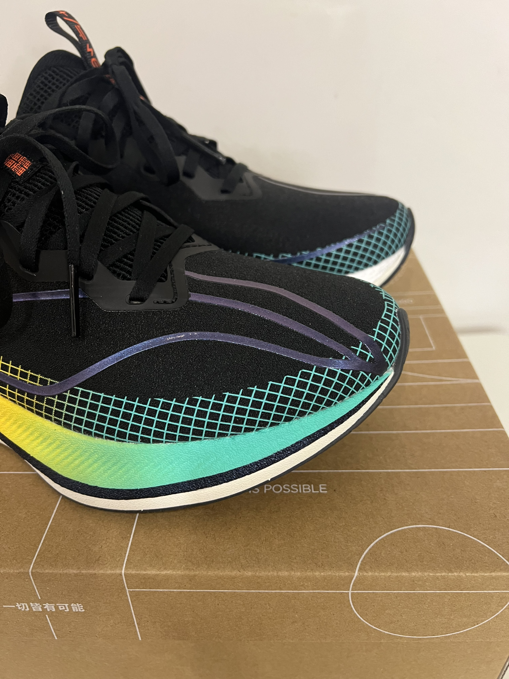👟鞋面采用mono纱材质 耐磨抗弯折的同时透气也不错 作为一双跑步鞋整体鞋子重量很轻 中底EVA加䨻科技缓震够用 上脚非常轻盈软弹 跑起步来 根本停不下来 🥳🥳配色方面采用黑色打底 绿色与黄色的过度 由鞋头延申至鞋尾 搭配镂空李宁logo 未来感很强 沉稳中不失一丝活力 我平常穿他最多的就是去健身房 搭配黑色卫裤真的是太对味了 🥰🥰 ----------------- --------- 👑5...