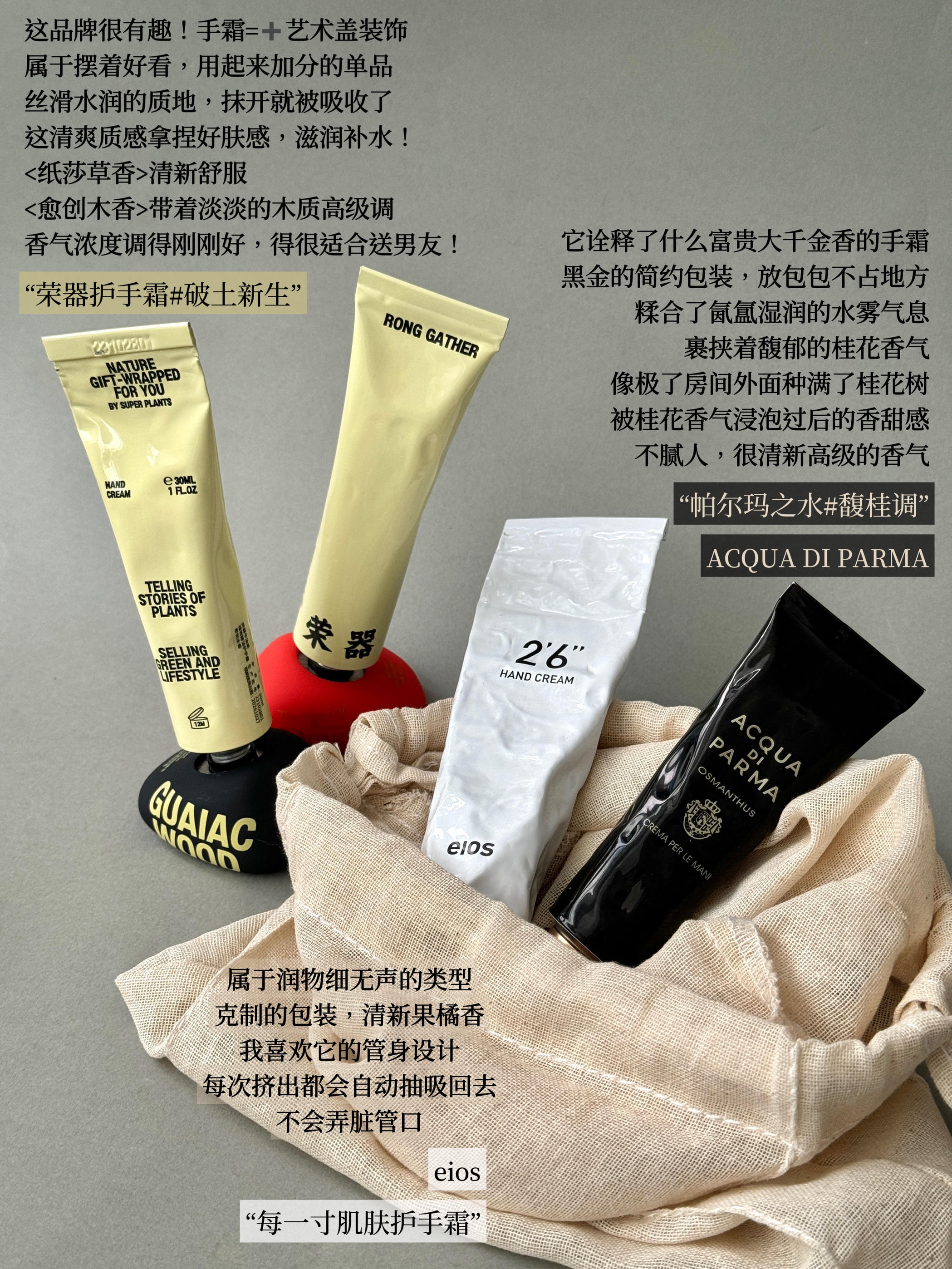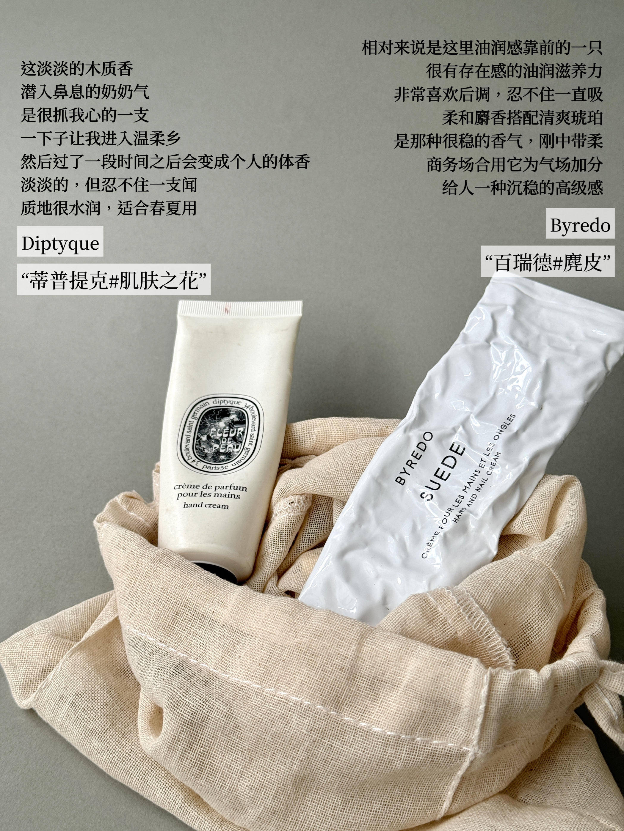 护手霜大户人家又上线啦! 秋冬出门,包包里少不了一支护手霜 今天,我想和大家分享这几款香氛护手霜 它们不仅拿捏滋润度 还是妥妥的氛围感伪体香好物 简直就是提升日常氛围的隐形香水! #香氛护手霜[话题]##小众护手霜[话题]# #护手霜推荐[话题]# #精致女孩必备[话题]# #伪体香的秘密[话题]# #好用的护手霜[话题]#