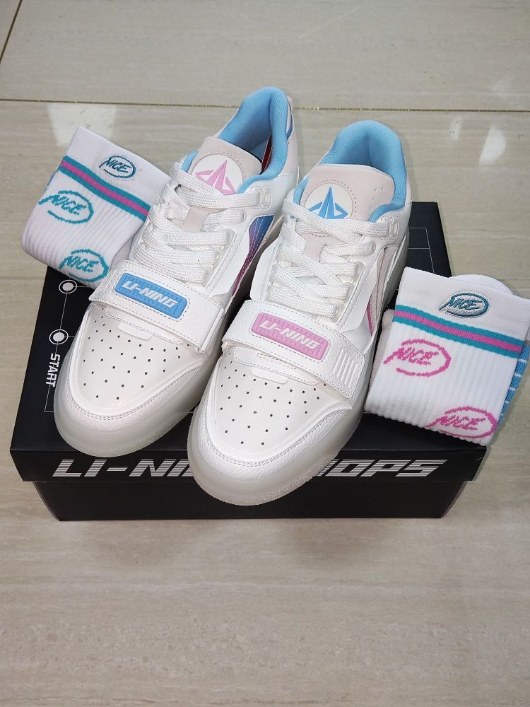鞋子整体以白灰搭配为主,绿色和蓝色点缀 整体的色调很干净个性 另外这次的鞋带设计我很喜欢😘 白绿搭配很吸晴,而且大底也是三色的拼接 鞋面采用的是皮革材质,质感依旧很好👍 平常穿着脏了也很好打理~ 鞋子虽然一开始上脚脚感偏硬 但后面踩开后很舒适,暴走一天也可以