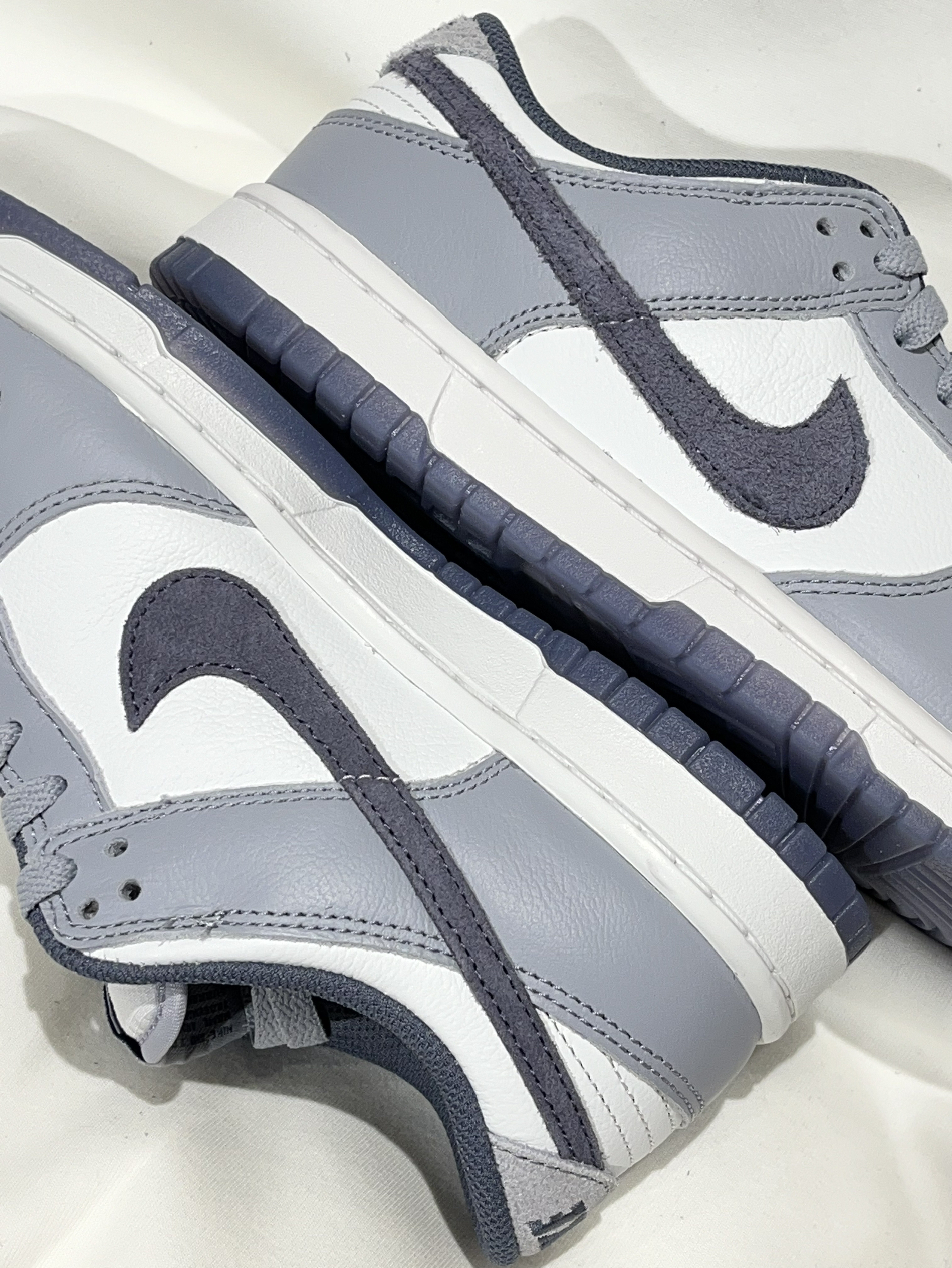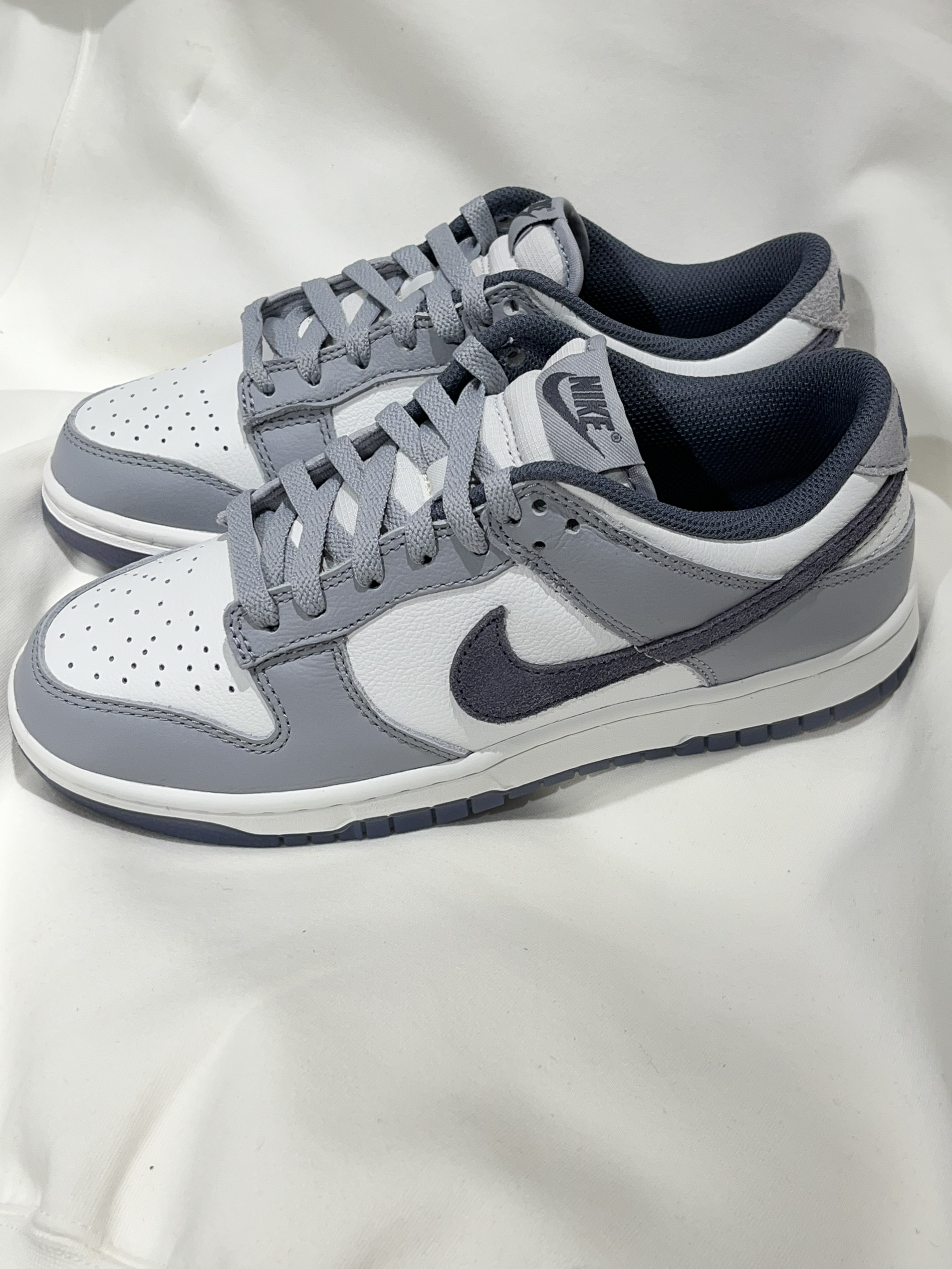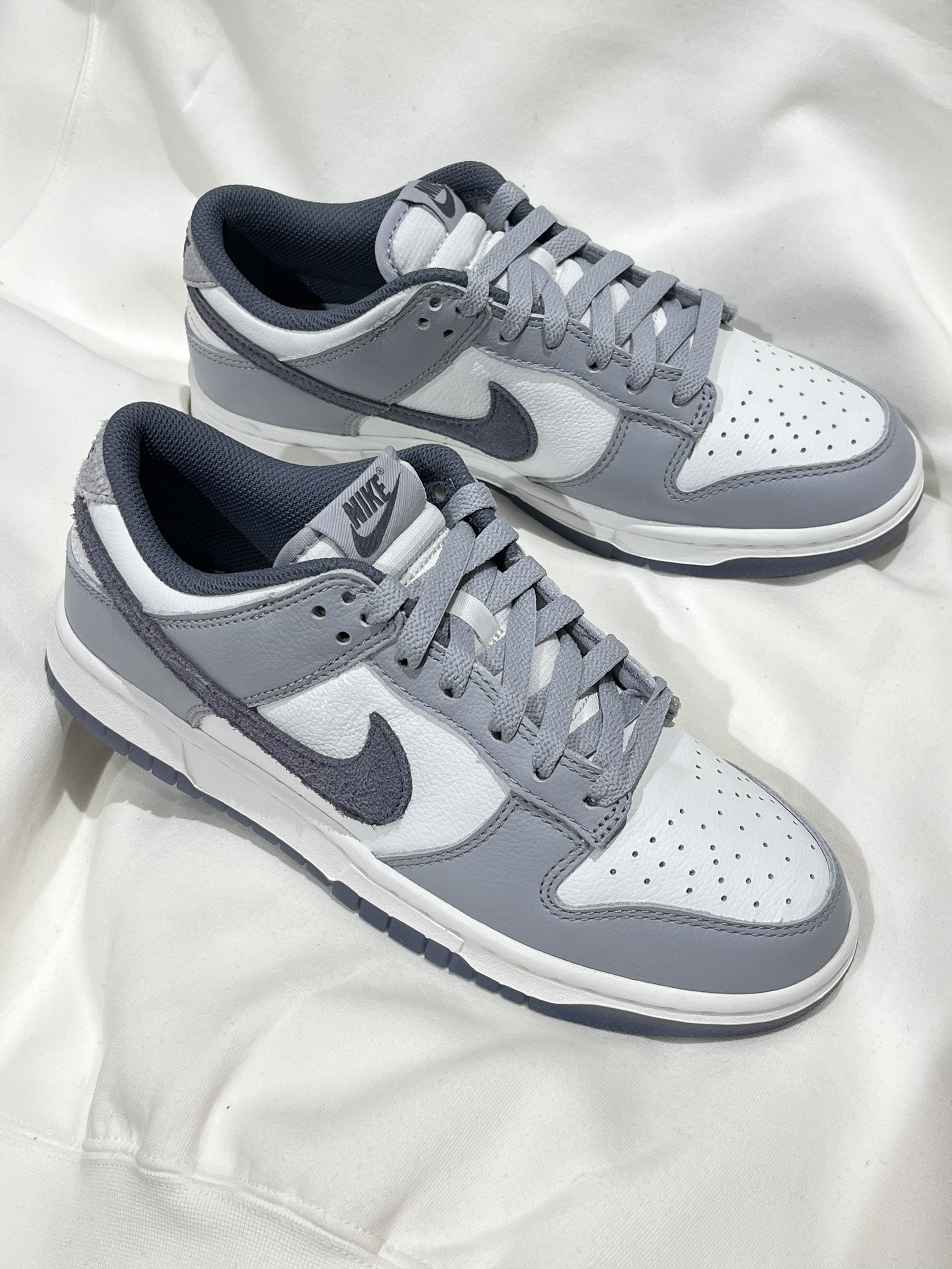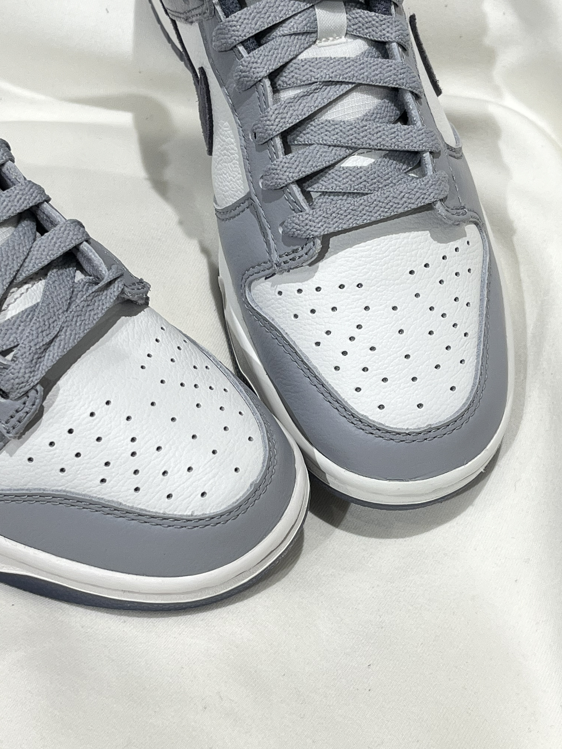这双dunk虽然是男款,但是幸好最小号是 38.5 正好是我的码数,开森😘 鞋面是荔枝纹皮面的,质感真的很nice 👍 这个灰白配色真的是一眼就爱😍上了呢 有了TA一年四季不愁穿搭🫧
