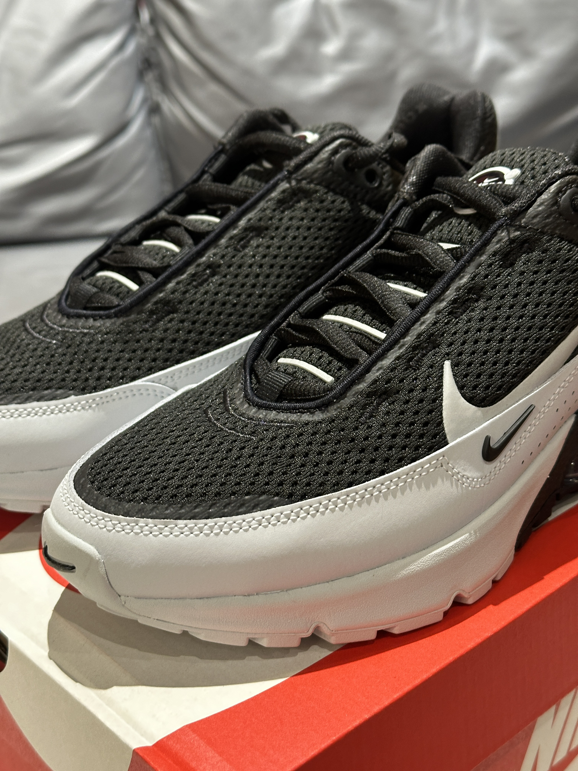 👟nike air max pulse 黑灰 黑白经典配色,鞋身采用大面积透气织物,后跟有明显的外露式air max气垫,穿着脚感也还可以