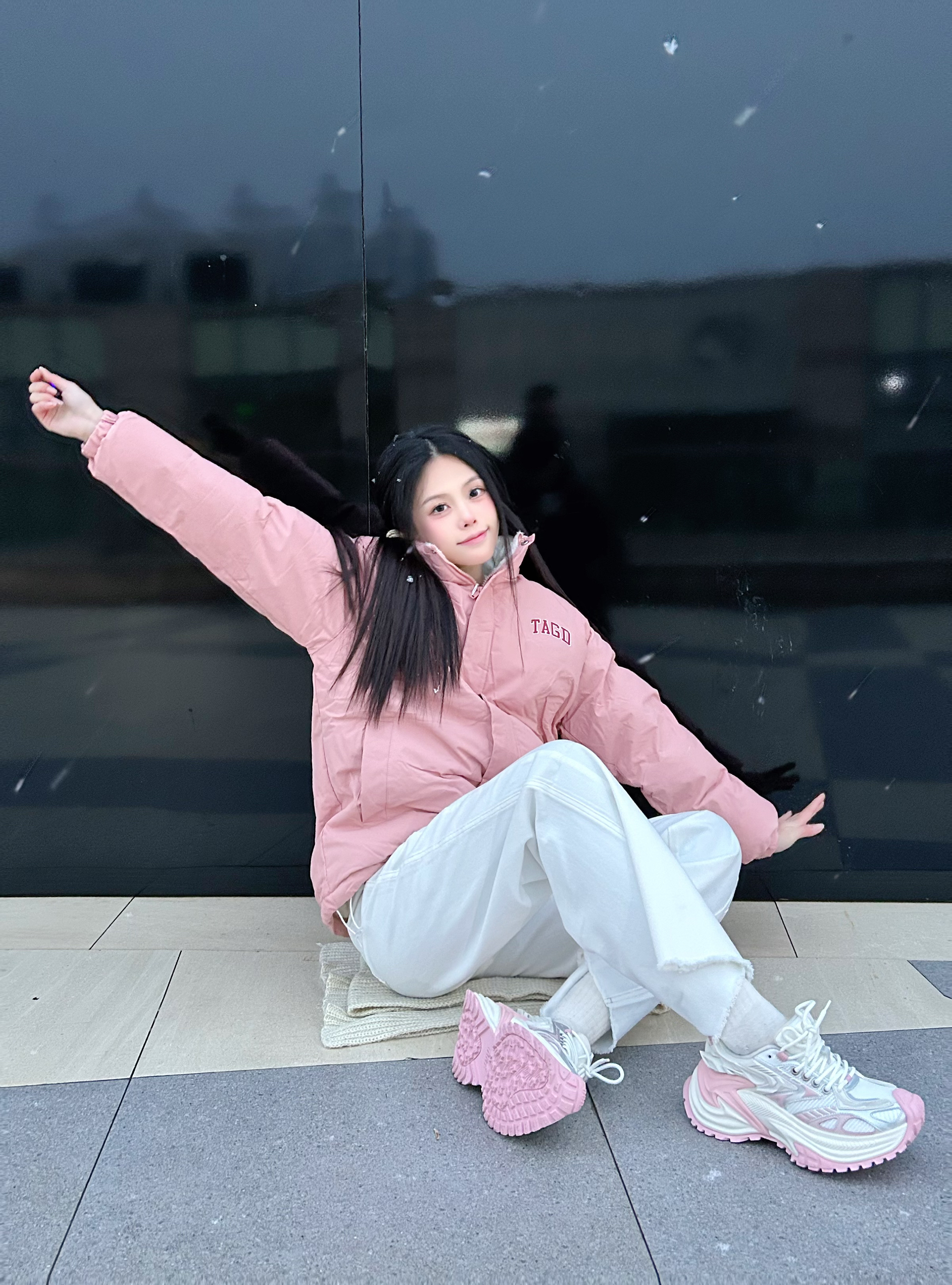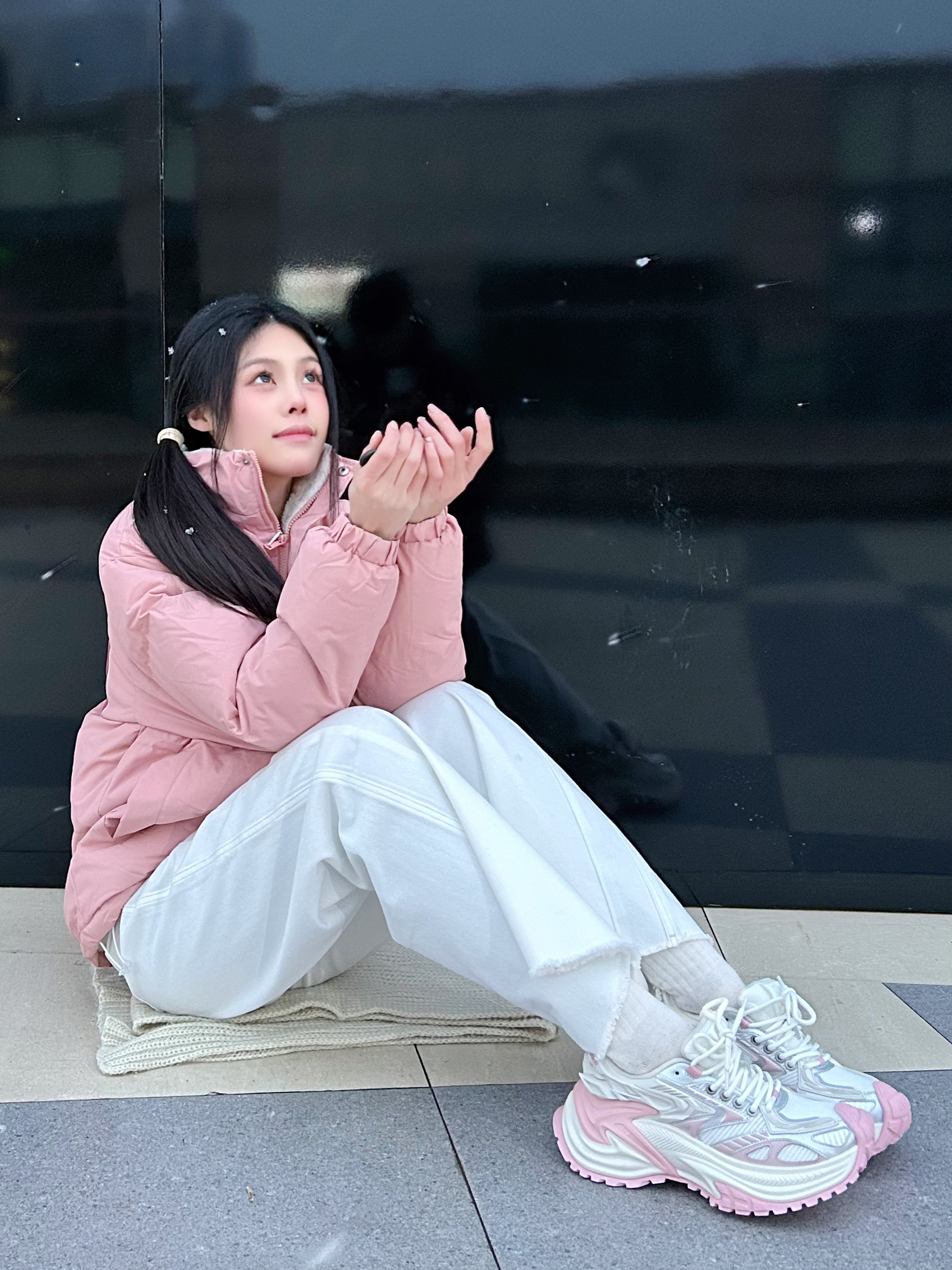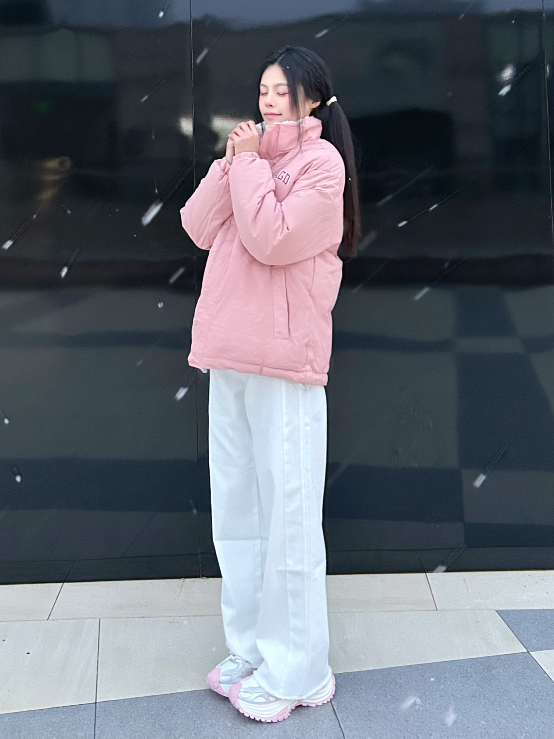 出去玩刚好下雪噜~虽然冷哈哈的,但是下雪就是会让人开心~ 今天是粉色系冬日穿搭哦~粉白搭配起来,又元气又亮眼! 本人166cm,95斤哦~ 棉服是 TAGD 棉服L码,两位数的的棉服,性价比蛮不错嘟~ 裤子是 森马 白色牛仔裤M码,垂感做的蛮好嘟,就是不加绒,冬天要穿的话,里面一定要穿打底裤哦!穿的M码哦~ 鞋子是 OGR 响尾蛇系列,超有设计感的跑步鞋,白粉色调做的蛮好看嘟~