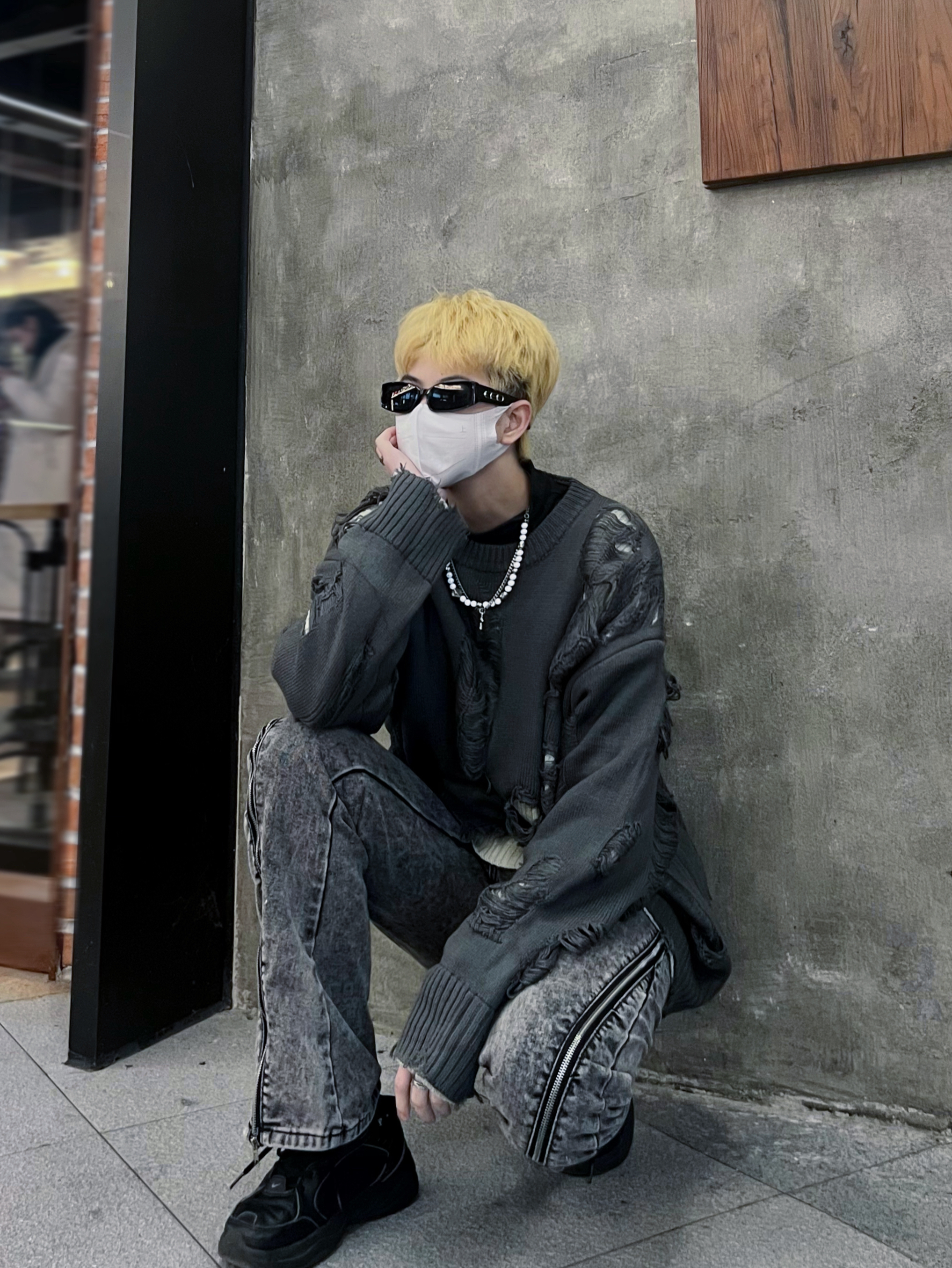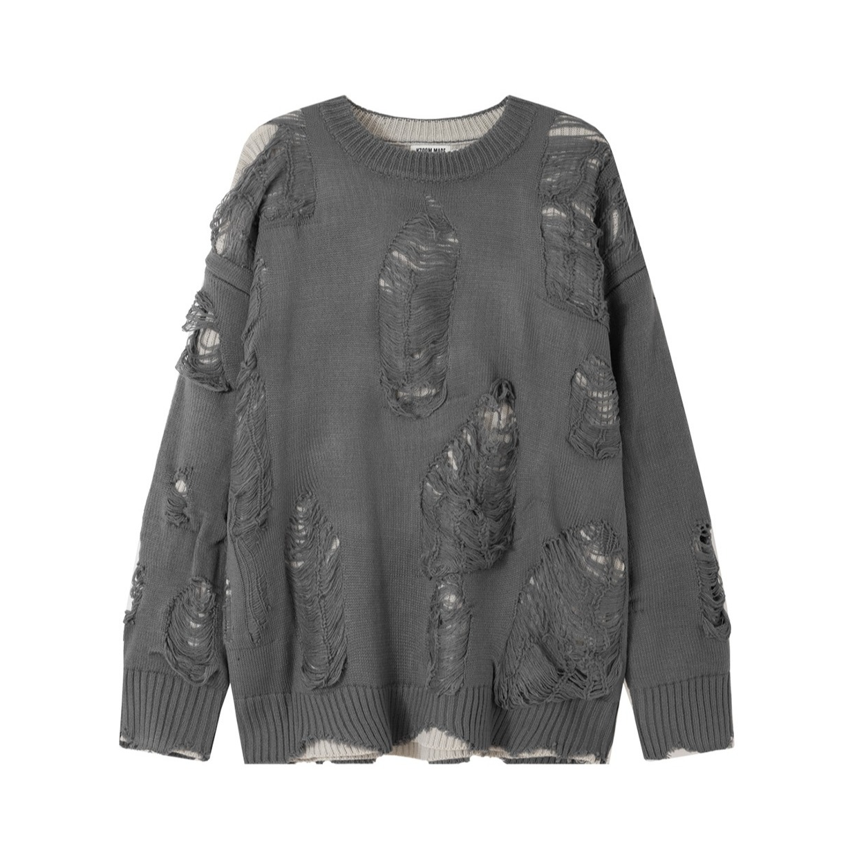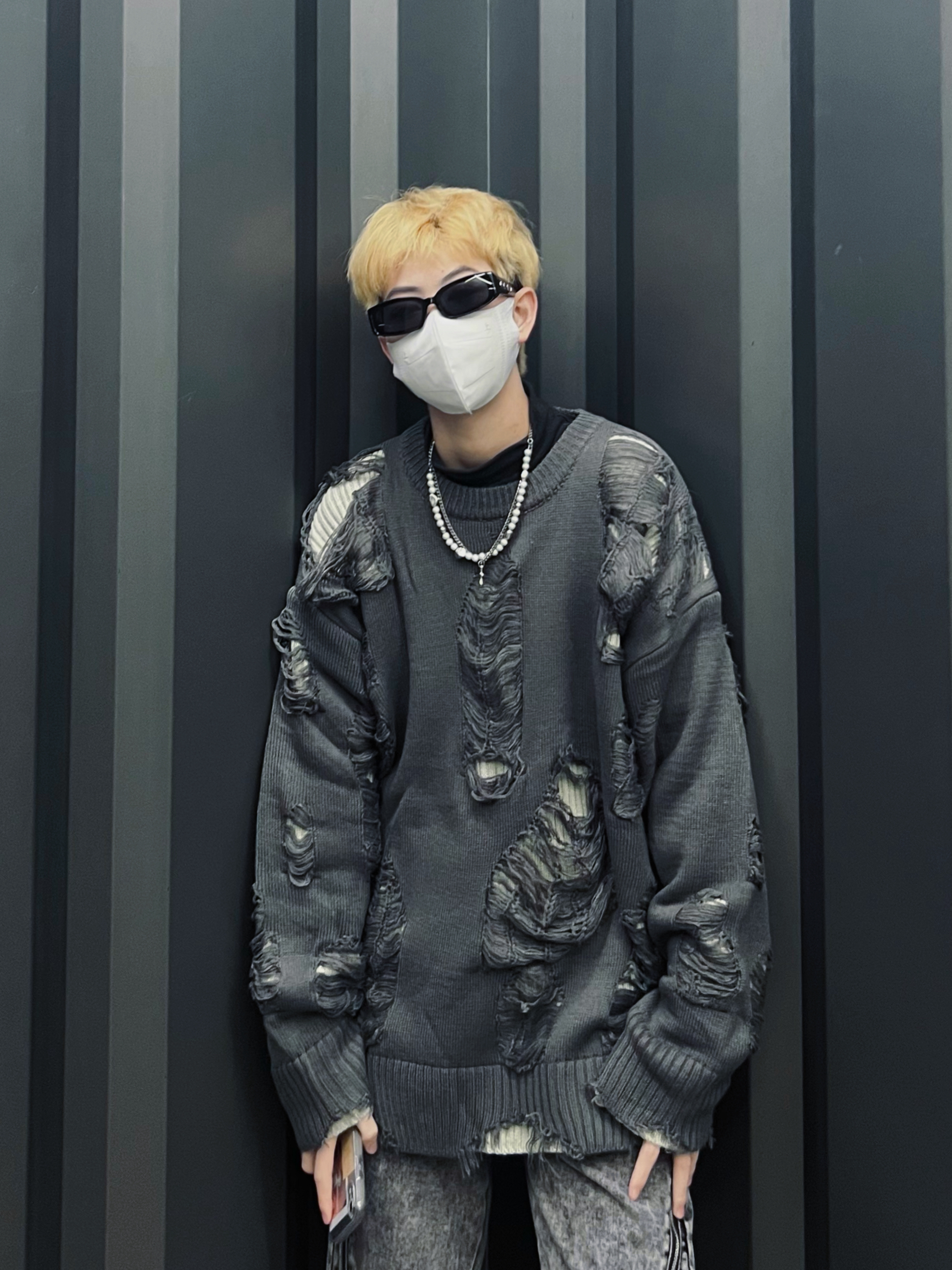 冬天就是要穿毛衣! 还找不到单穿好看的毛衣吗? 看看这件破洞的“乞丐”毛衣~ 灰色系穿搭也太好看了!!高级又好看 不管是单穿还是内搭 都好看!