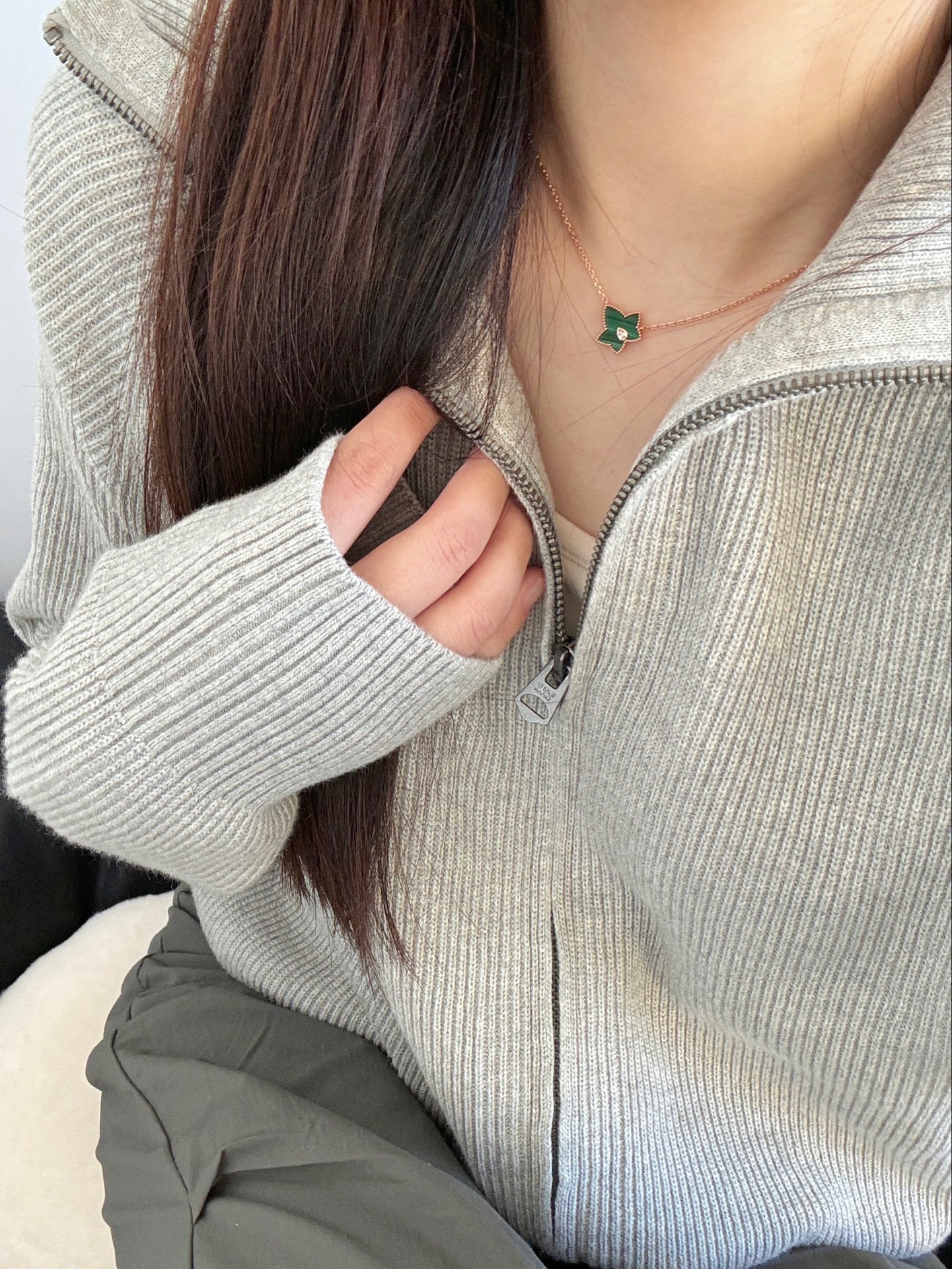 灰色系显得整个人都很温柔呢 所以配饰方面我就选了一个比较亮眼的项链 是lola rose的常青藤项链哦 绿色的项链会比较显白 搭配灰色系衣服也很百搭 日常出门这样搭配就很好看呢 喜欢这种简约的搭配~ #新年来点好饰 #送ta新年第一份礼物 #藏在新年礼物中的情人祝福 #春节送礼的N种选择 #新年项链送闺蜜