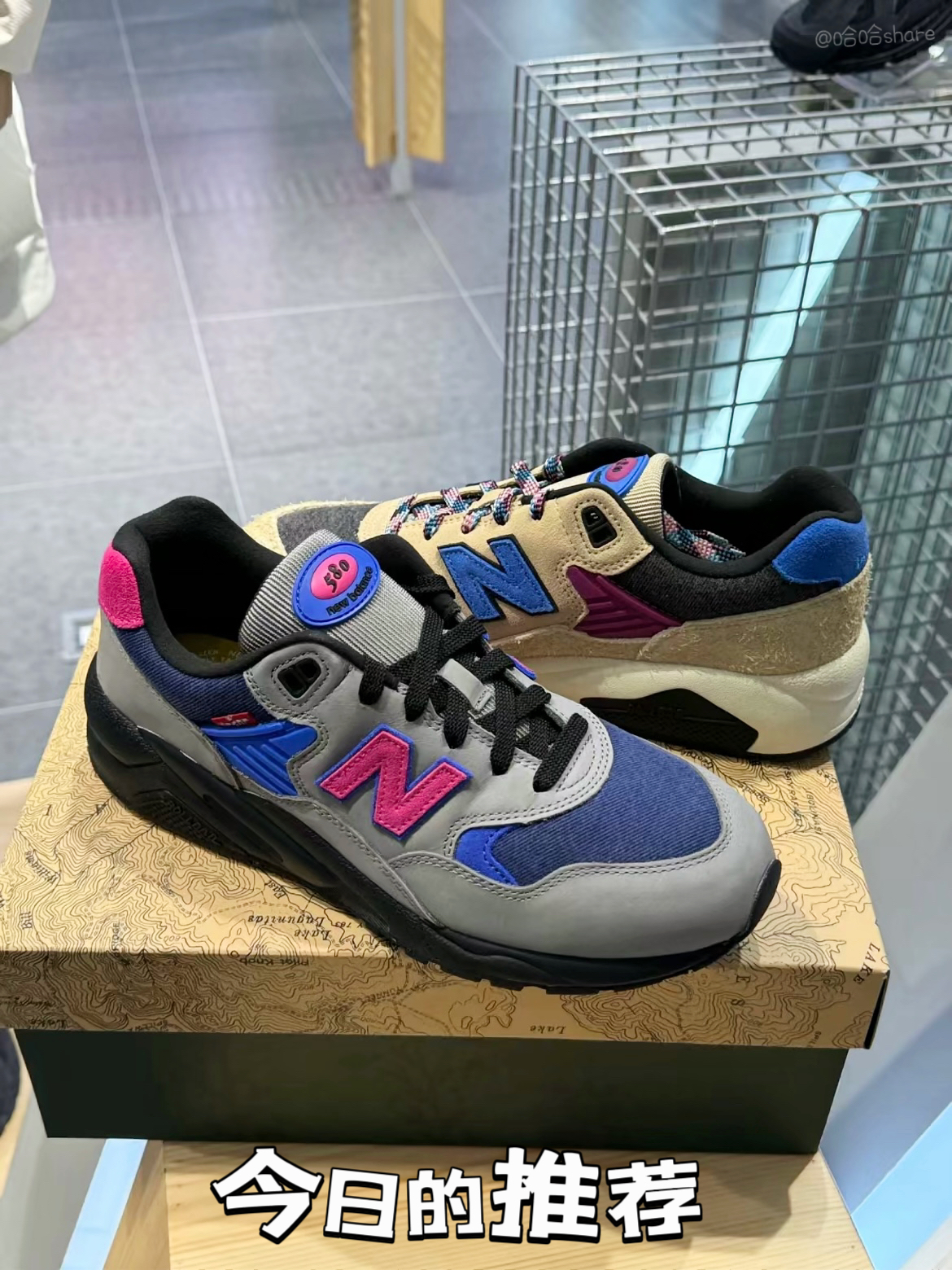 联名款一共出了卡其蓝➕灰蓝色 两个配色 鞋面用料一双是平面牛皮一双是反毛皮这两个用料,有点鸳鸯搭配的感觉☑️ 鞋面的网布设计有点欣赏不来,这样的网布透气性很差同时有点缺少美感✖️ 这款联名是在580鞋型的基础上加入了Leivs元素,搭配出来的效果还是很具有潮流性 鞋子脚感中规中矩日常通勤穿搭完全可以,因为透气性不是太给力不太适合夏季穿搭,同样秋冬季节穿它也不会冻脚💭 这样让人又爱又恨的联名款你怎样...