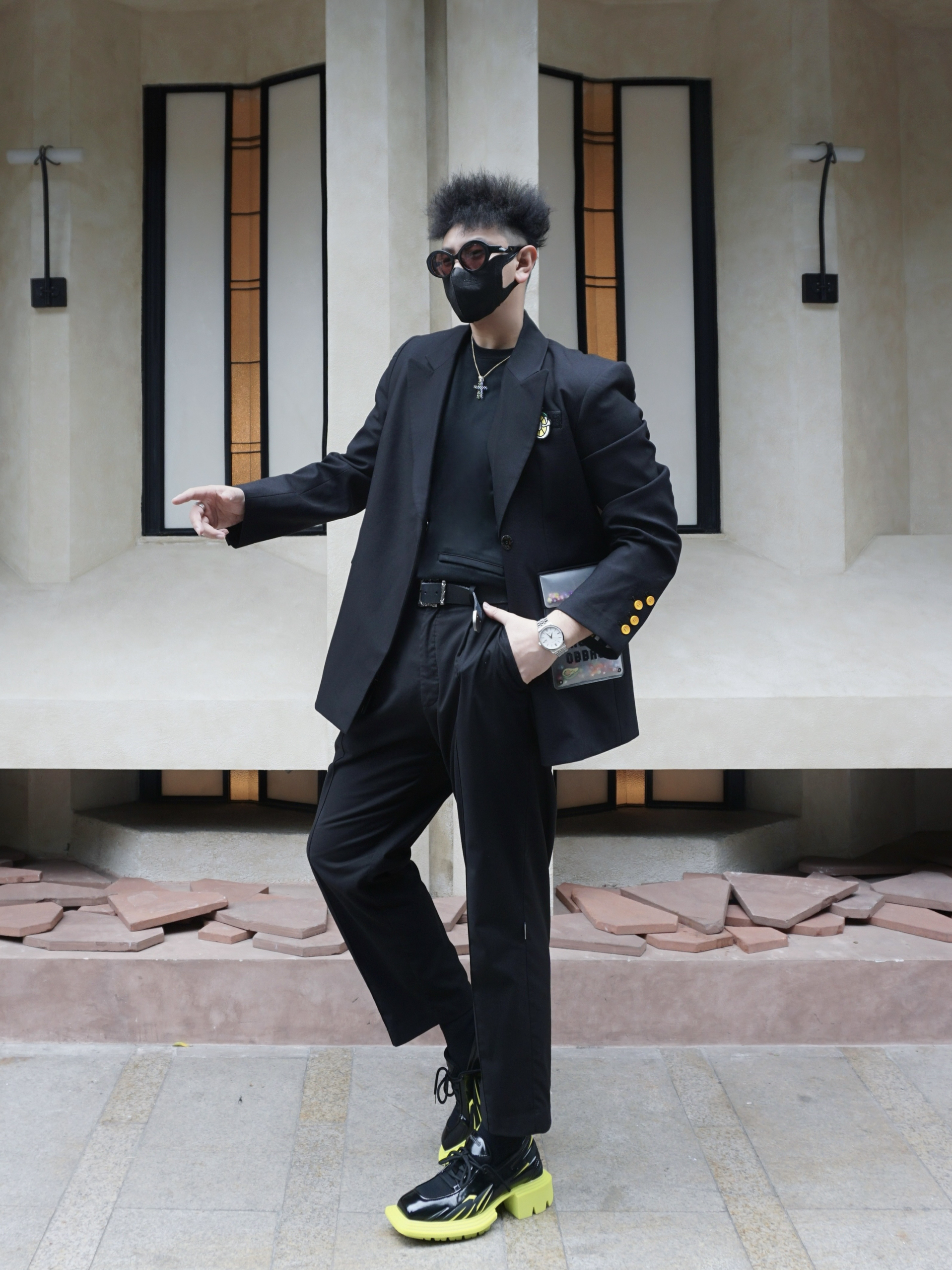 啊什么❕新年出门被问一路是哪个明星⚫️❕ 一身黑绅士男友🤵拿捏氛围感和高级度🌪️~ 选对单品✔️才是新年Outfit的关键,谁懂❕: - 担心黑西服太过单调🥱当然要选这种趣味口袋➕贴布的玩味设计,m3❔ 尤其胸口细节贴布和透明口袋的小细节✨,百搭之余随意搭配都是可爱Vibe的顶男帅哥~ Btw还是明星同款💡怪不得出门被问一路是哪个男明星出街,嘻嘻🤭~ 内搭扎裤腰是穿出大长腿的小心机💡,踩一双黑荧光...