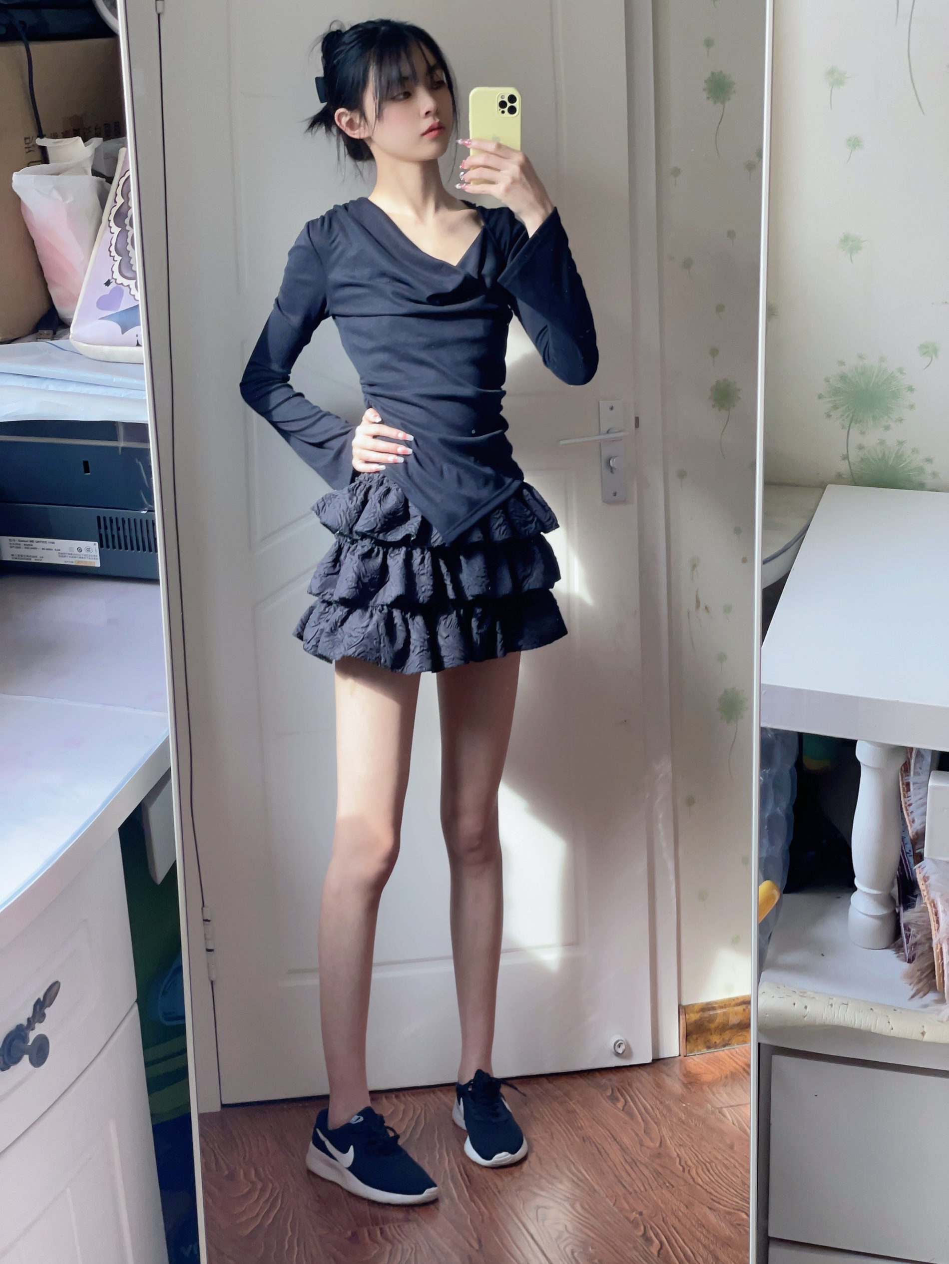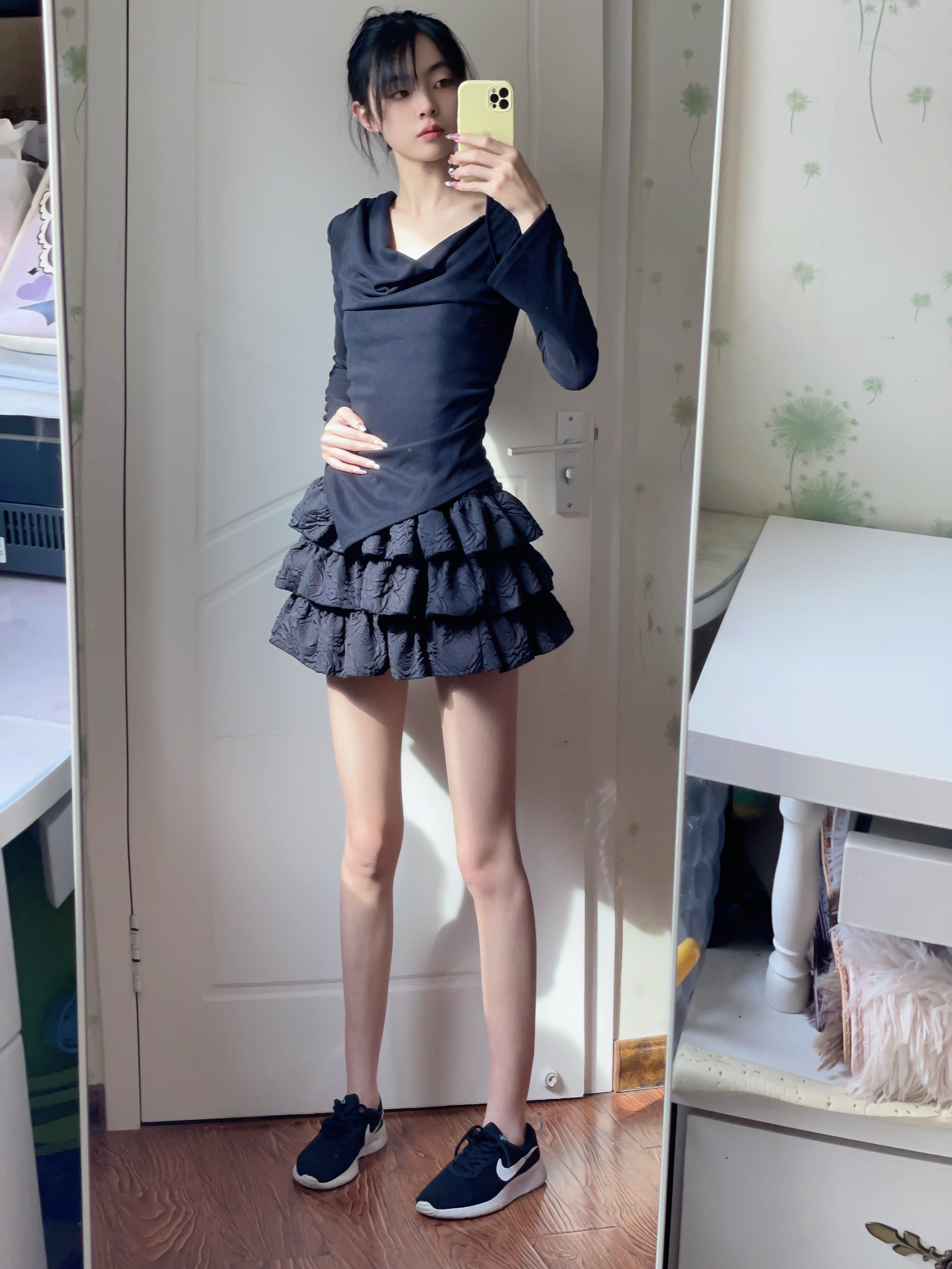 Nike 黑白奥利奥 运动鞋 黑白经典搭配,永不过时 今天穿了一身黑,搭配这双运动鞋 蛋糕裙真的很显腿长 鞋子上脚很舒适轻盈
