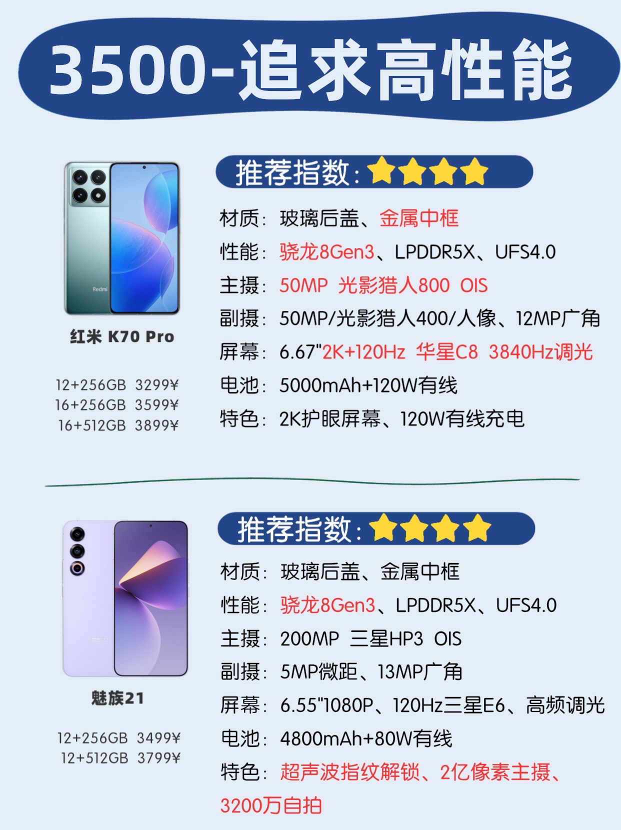 第三代骁龙8移动平台的手机从3000~6000元遍布,该如何选择呢❓这里我用一句话来概括全品牌的骁龙8Gen3手机,和大家分析大家该如何选择哈❗️ - 首先不建议大家在2024年这个节点还买8GB运存手机📱,建议大家12GB起步,8GB真的不够用… - ✅:3500价位特别在意质价比的朋友无脑冲真我GT5Pro,那叫一个☝️真香,越级打旗舰的存在。 ✅:如果你是女生只在意颜值可以看看魅族21,如果...